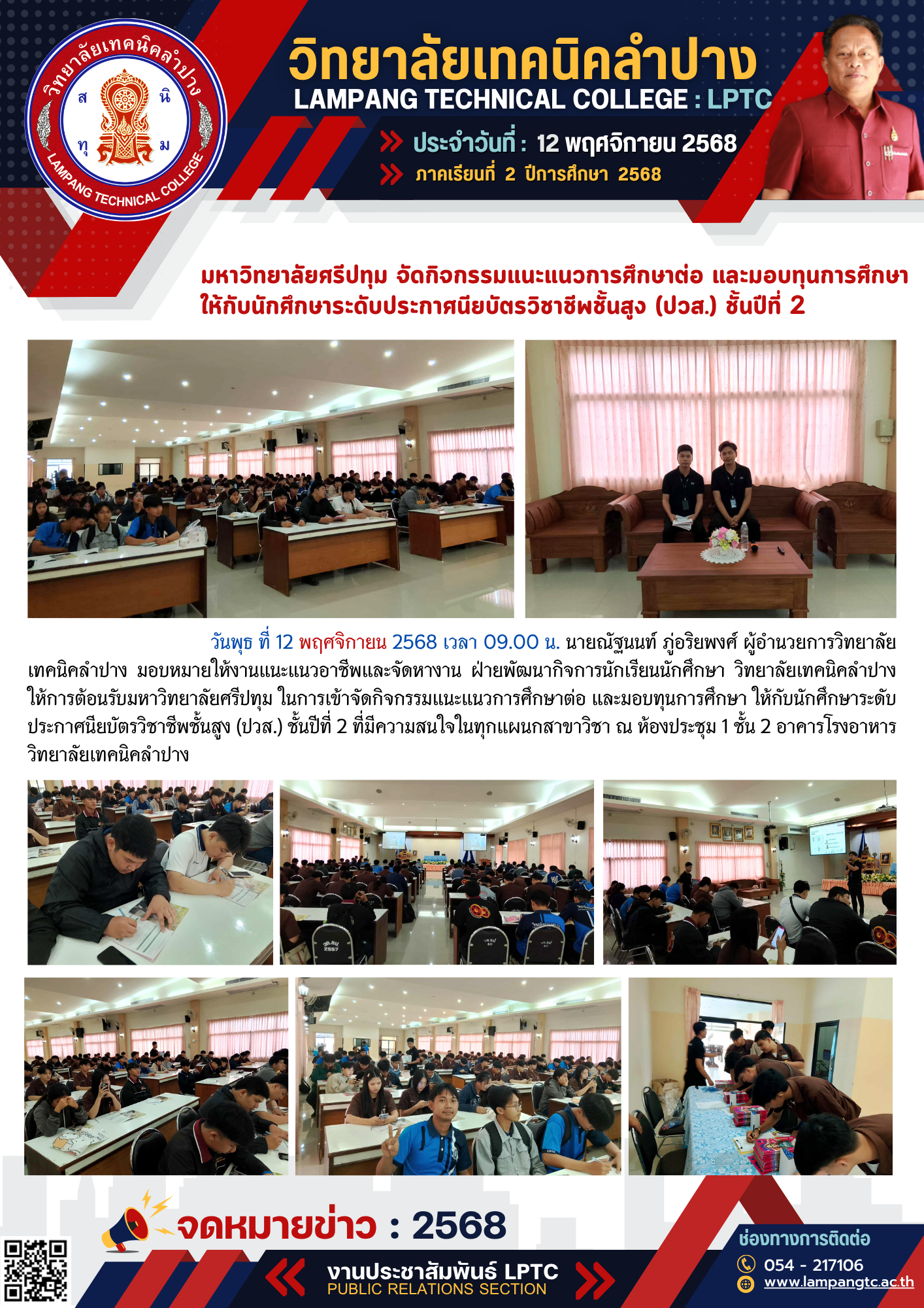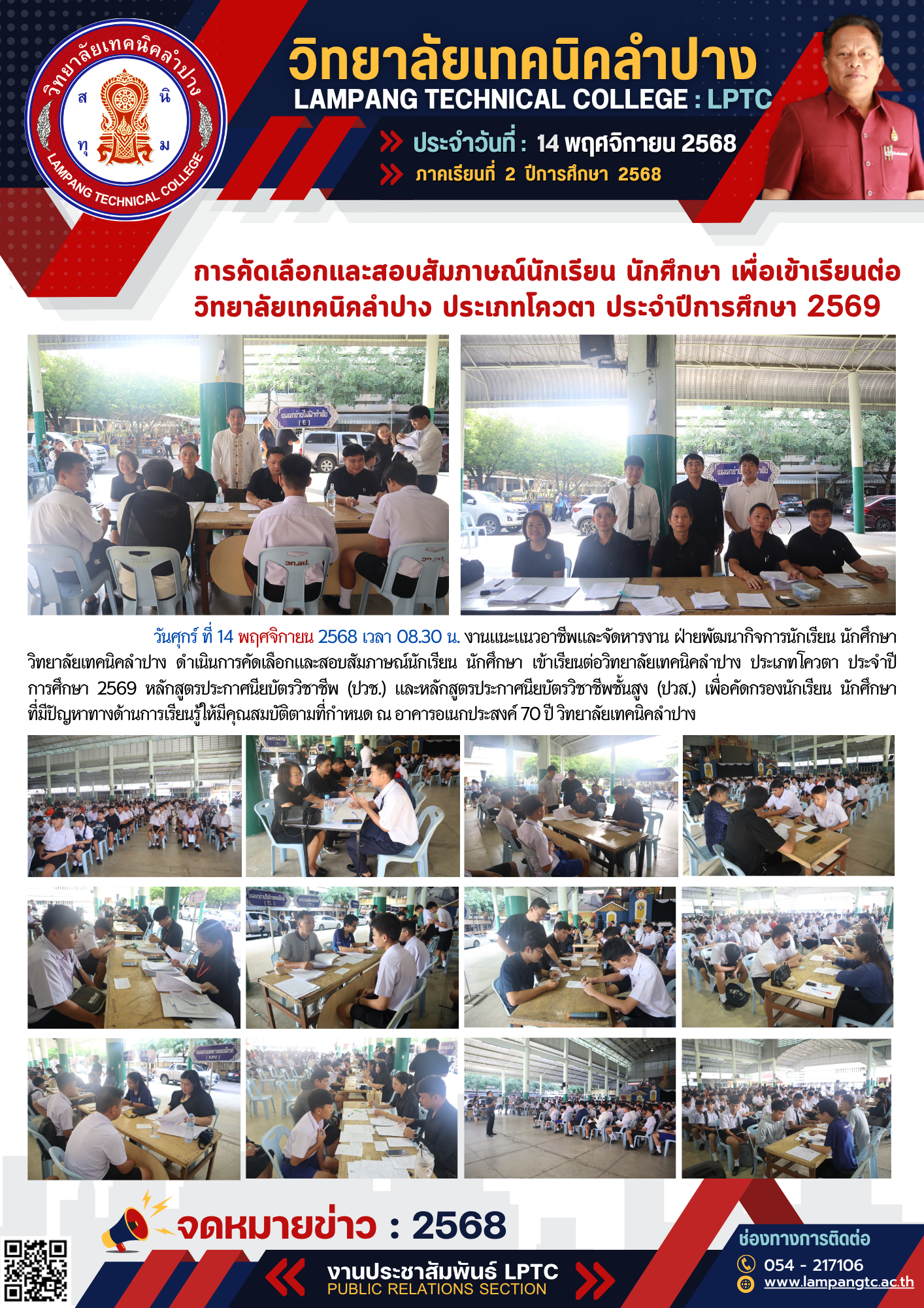 การคัดเลือกและสอบสัมภาษณ์นักเรียน นักศึกษา เพื่อเข้าเรียนต่อวิทยาลัยเทคนิคลำปาง ประเภทโควตา ประจำปีการศึกษา 2569
