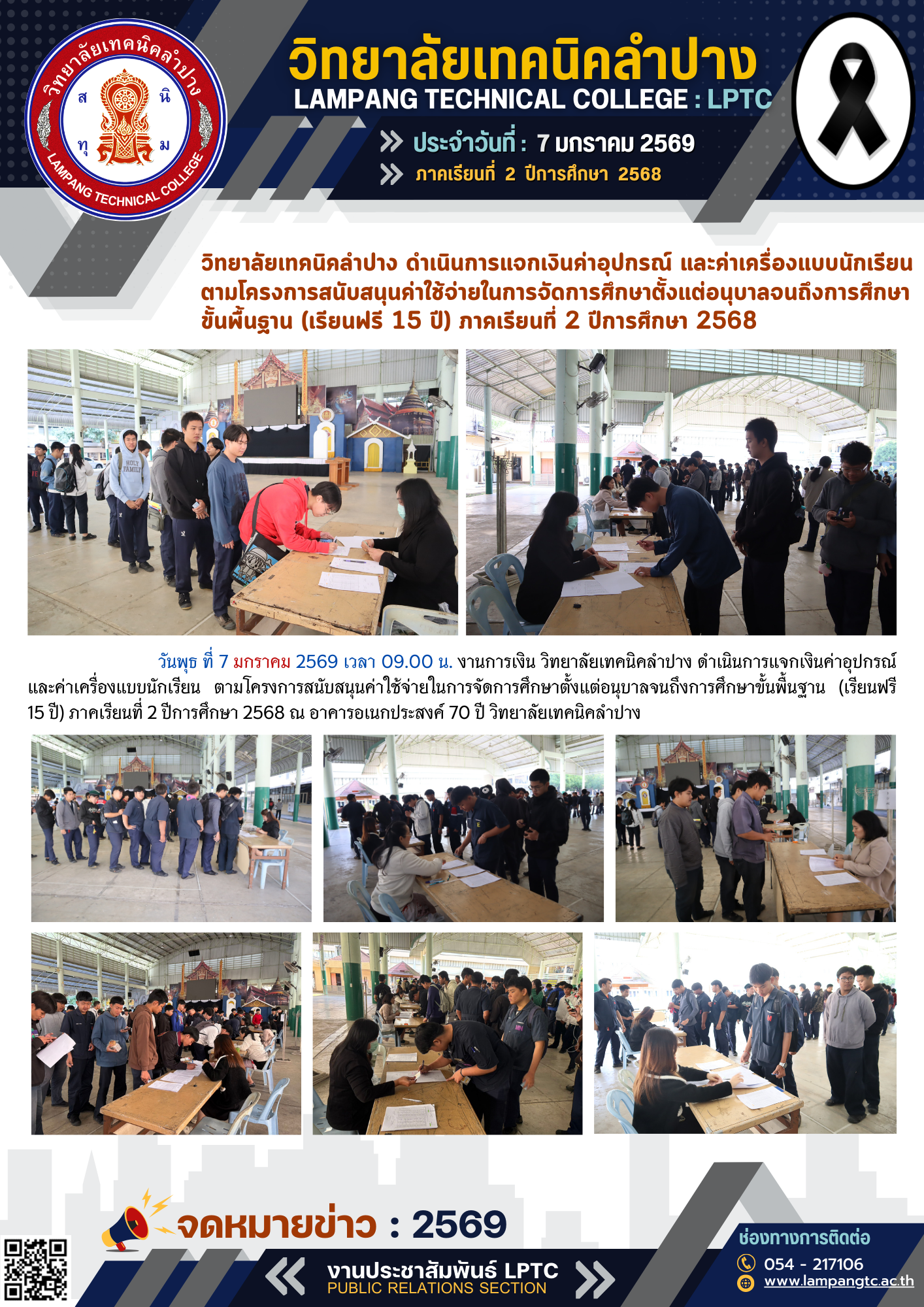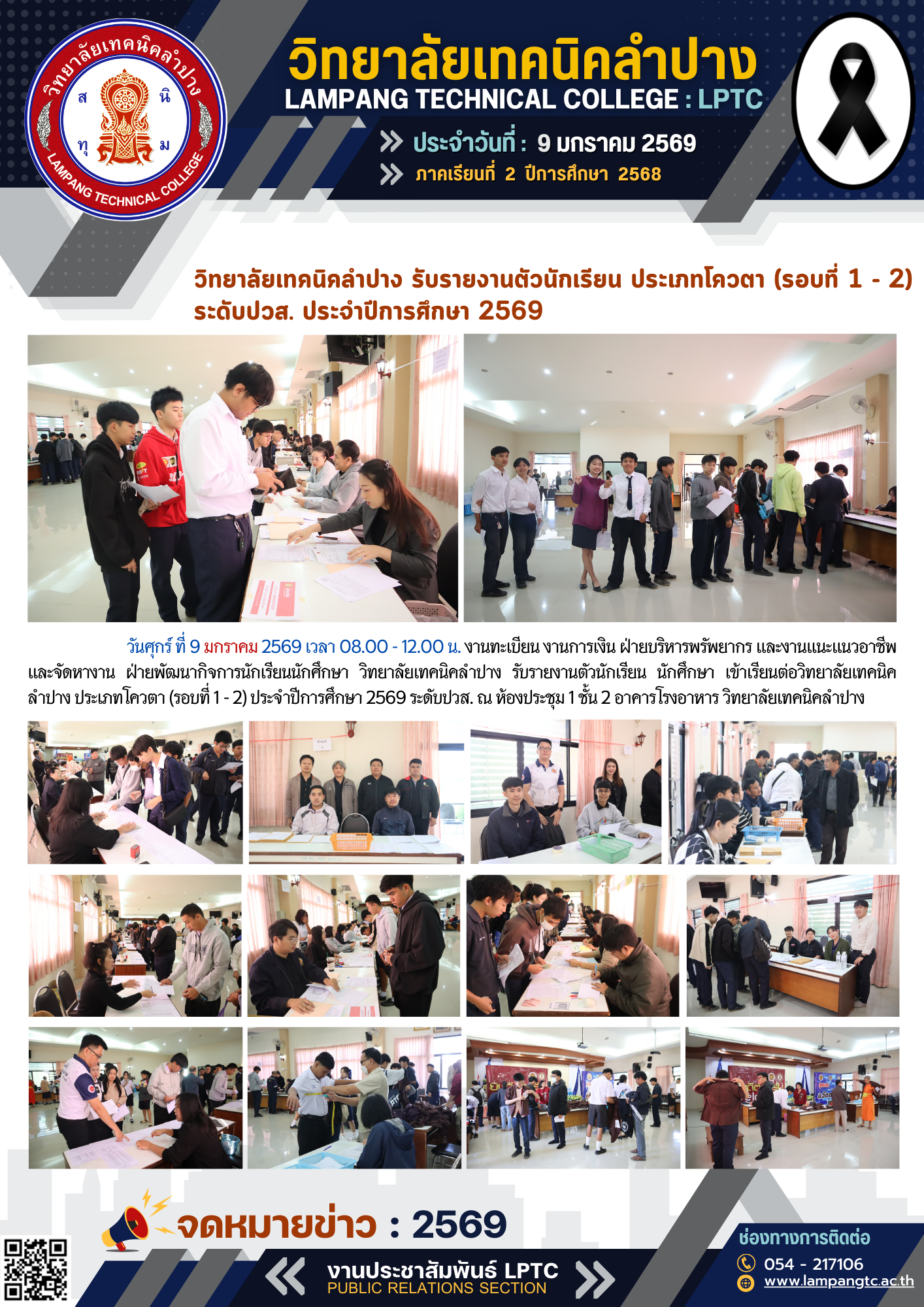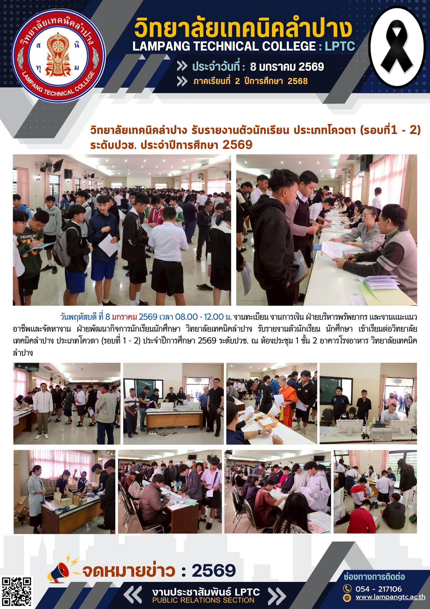 วิทยาลัยเทคนิคลำปาง รับรายงานตัวนักเรียน ประเภทโควตา (รอบที่ 1 – 2) ระดับปวส. ประจำปีการศึกษา 2569