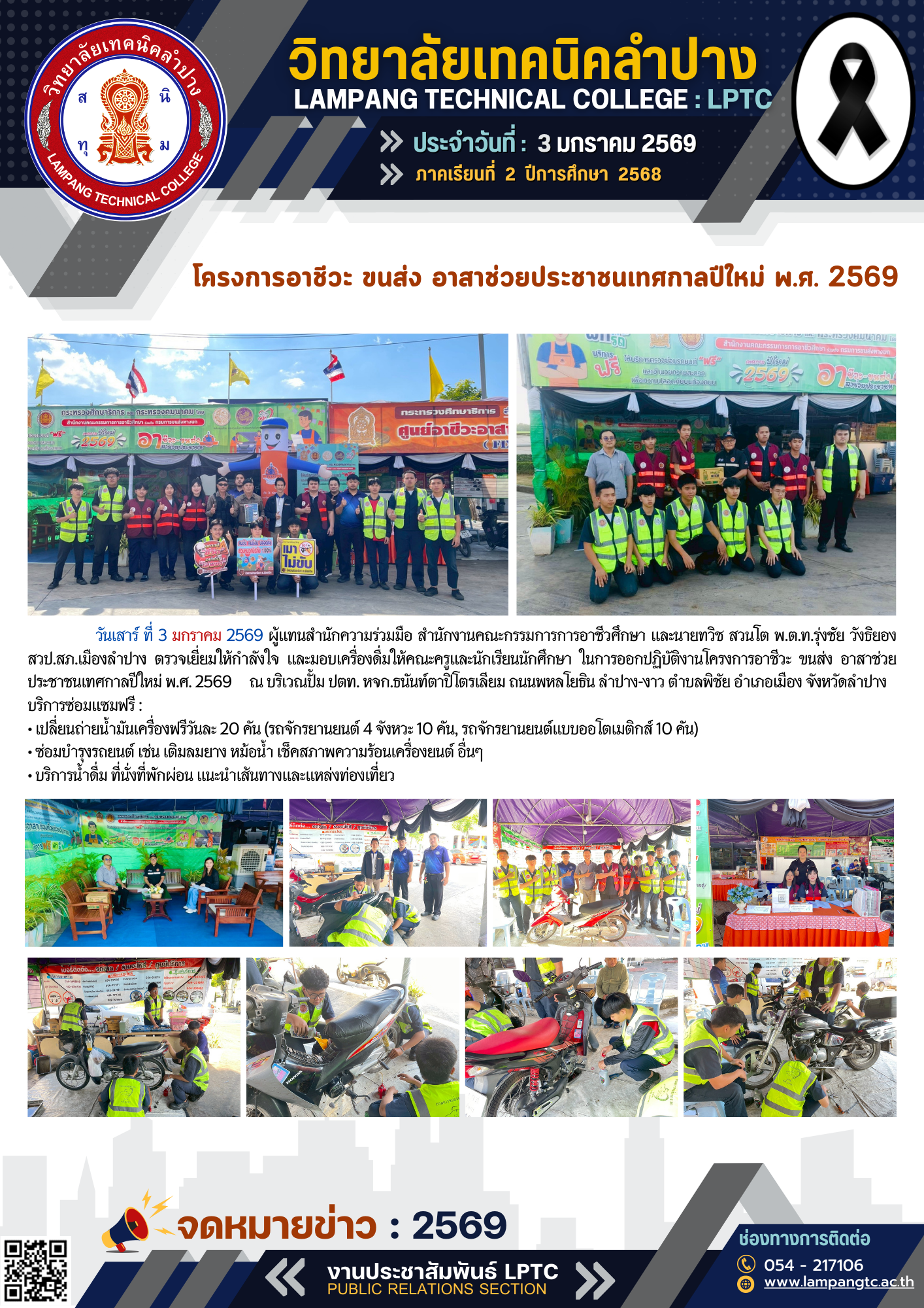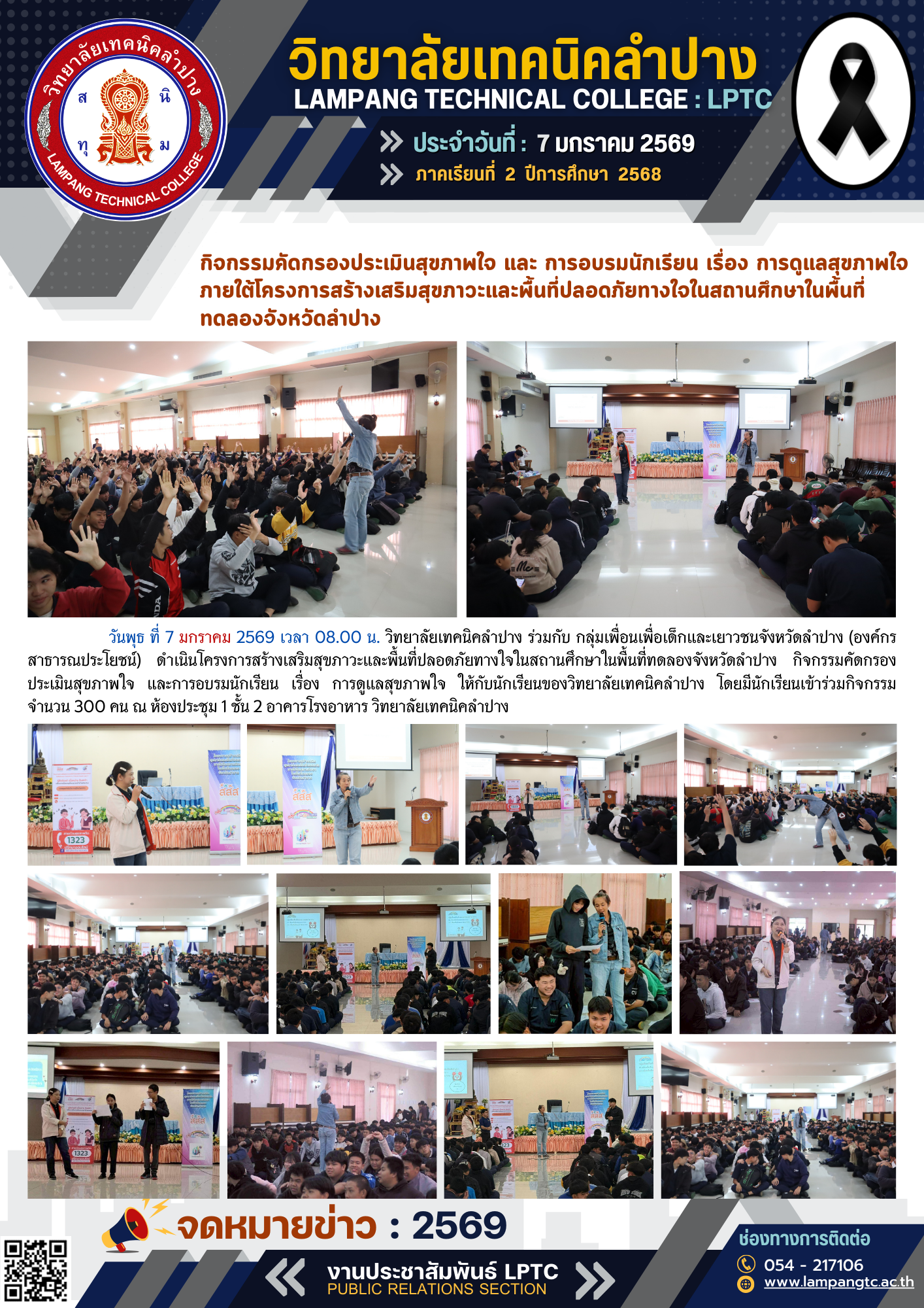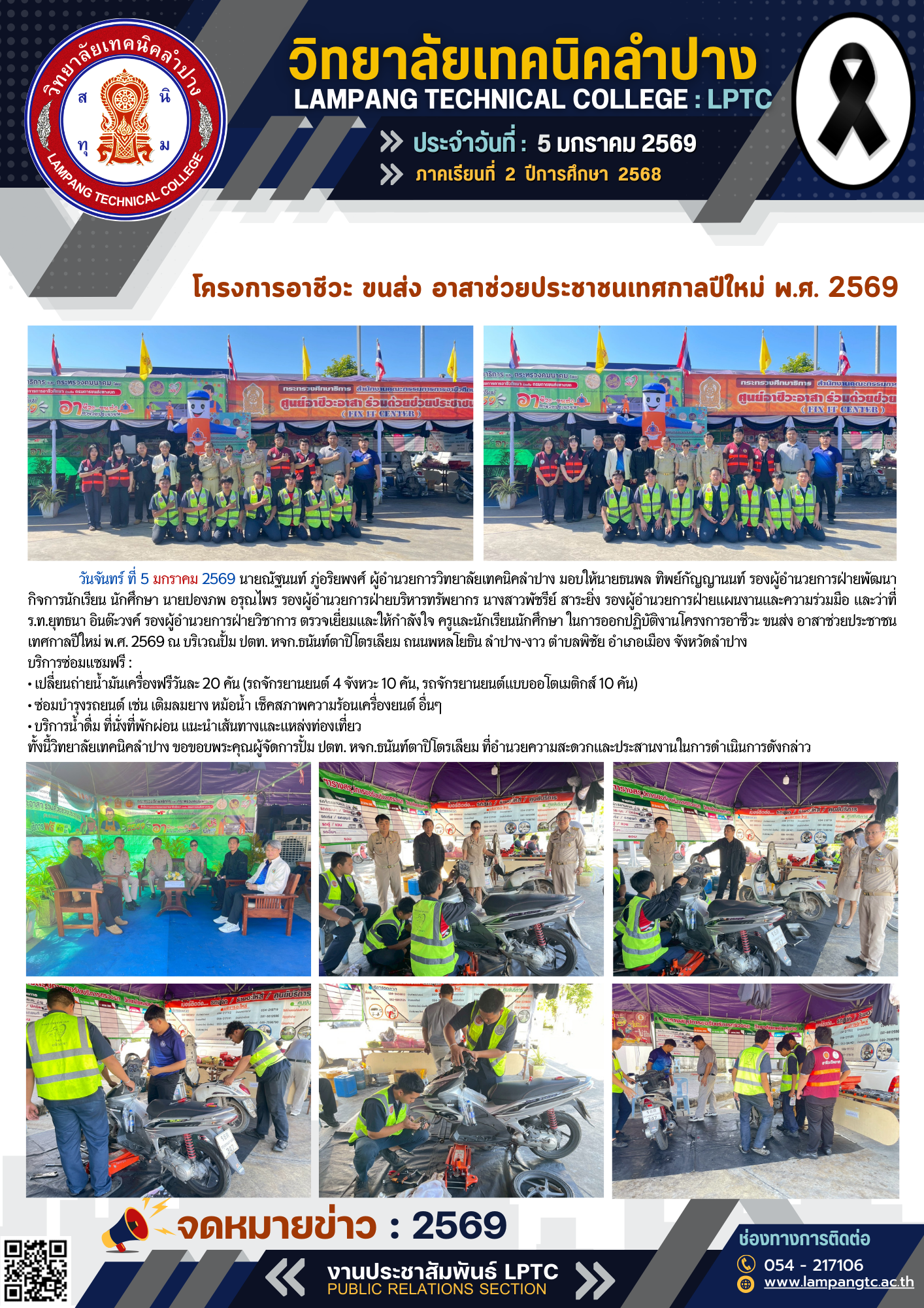 วิทยาลัยเทคนิคลำปาง รับรายงานตัวนักเรียน ประเภทโควตา (รอบที่ 1 – 2) ระดับปวส. ประจำปีการศึกษา 2569