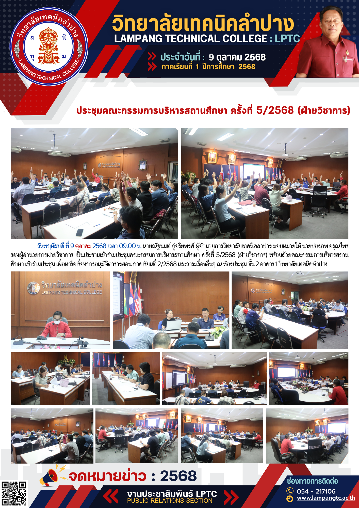 ประชุมเตรียมความพร้อมการจัดงานประชุมวิชาการองค์การนักวิชาชีพในอนาคตแห่งประเทศไทย (อวท.) ระดับอาชีวศึกษาจังหวัดลำปาง ประจำปีการศึกษา 2568