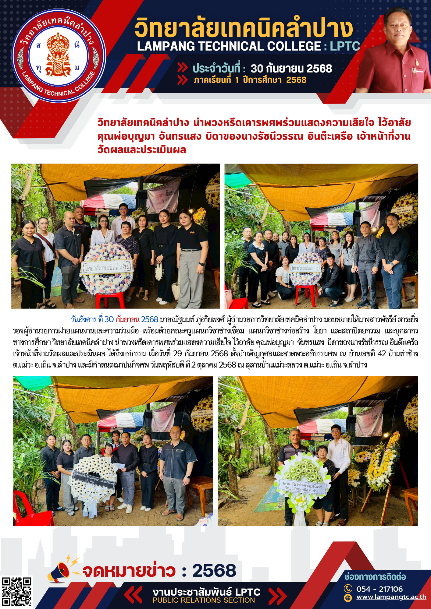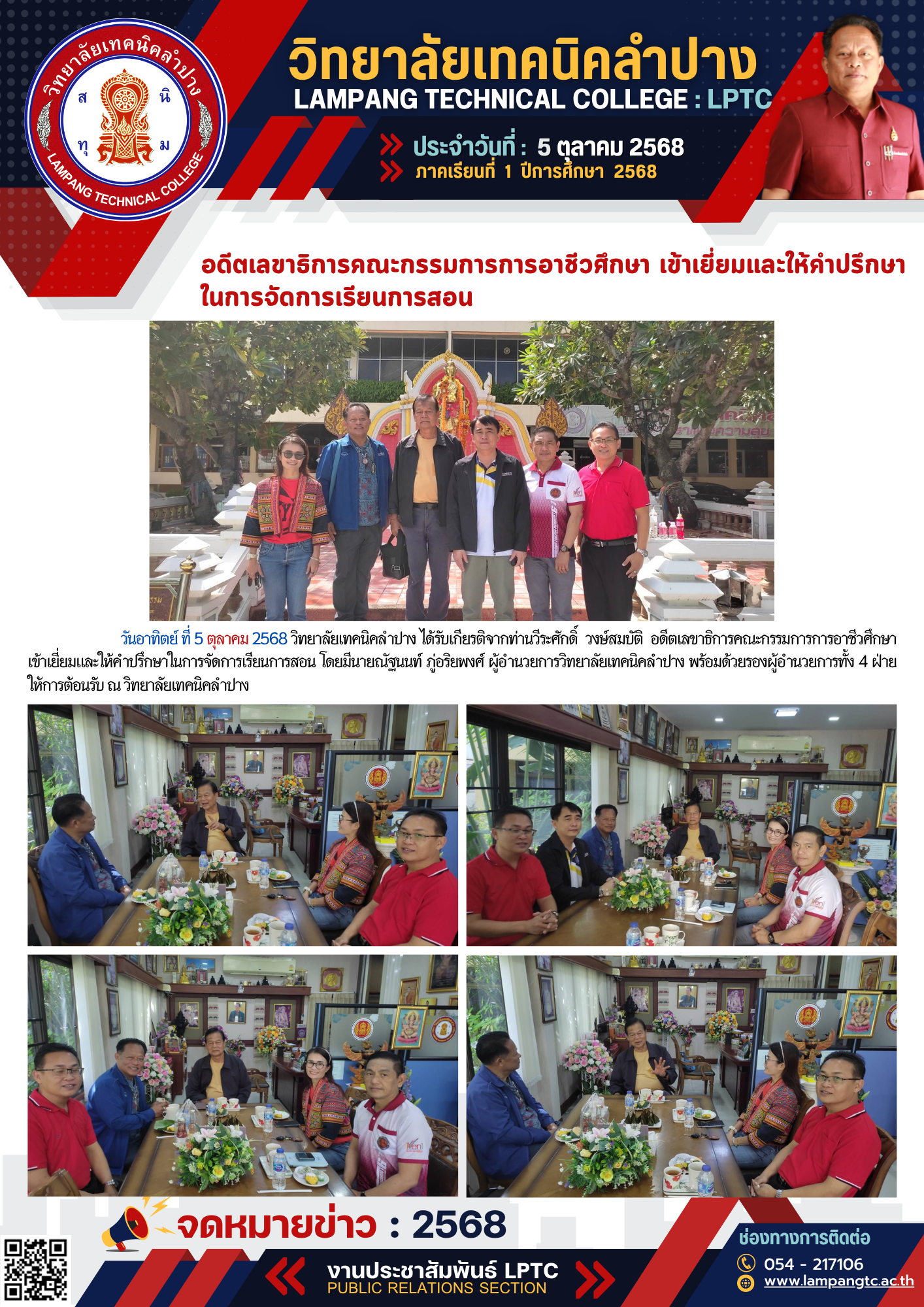 อดีตเลขาธิการคณะกรรมการการอาชีวศึกษา เข้าเยี่ยมและให้คำปรึกษาในการจัดการเรียนการสอน