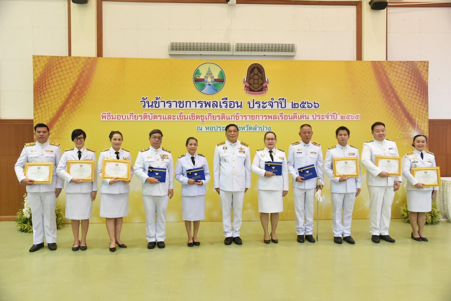 วันศุกร์ที่ 31 มีนาคม 2566 เวลา 09.00 น. นายณัฐนนท์ ภู่อริยพงศ์ ผู้อำนวยการวิทยาลัยเทคนิคลำปาง มอบหมายให้ ว่าที่ร้อยตรีสามารถ พุแพง รองผู้อำนวยการ ฝ่ายพัฒนากิจการนักเรียนนักศึกษาวิทยาลัยเทคนิคลำปาง พร้อมด้วย นายณรงค์ฤทธิ์ ขันวาตา และ ว่าที่ร้อยตรีกิตติ วะราหล ครูแผนกวิชาก่อสร้างโยธา เข้าร่วมพิธีมอบเกียรติบัตรและเข็มเชิดชูเกียรติแก่ข้าราชการพลเรือนดีเด่น ประจำปี พ.ศ.2565โดยมี นายชัชวาลย์ ฉายะบุตร ผู้ว่าราชการจังหวัดลำปาง เป็นประธานในพิธีมอบเกียรติบัตรและเข็มเชิดชูเกียรติฯ พร้อมอ่านสารของนายกรัฐมนตรี เนื่องในวันข้าราชการพลเรือน ประจำปี 2566 เพื่อเป็นขวัญและกำลังใจในการปฏิบัติหน้าที่ของข้าราชการที่ดีต่อไป ณ อาคารหอประชุมจังหวัดลำปาง
