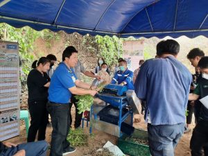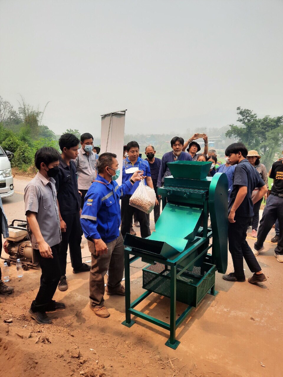 วันศุกร์ที่ 7 เมษายน 2566 งานวิจัยพัฒนานวัตกรรมและสิ่งประดิษฐ์วิทยาลัยเทคนิคลำปาง โดย นายชุติเดช พรมแก้วงาม เจ้าหน้าที่งานวิจัยฯ พร้อมด้วย นายชิษณุพงษ์ ประดาวงศ์ ,นายวีระยุทธ เตจินะ ,นายณัฐวุฒิ วิธี ครูที่ปรึกษาผลงานสิ่งประดิษฐ์ พร้อมด้วยนักศึกษา แผนกวิชาช่างยนต์ จำนวน 6 คน ได้นำผลงาน เครื่องปลิดฝักถั่วลิสง, เครื่องกะเทาะเปลือกถั่วลิสง และเครื่องร่อนแยกขนาดเมล็ดถั่วลิสง เข้าร่วมโครงการแปลงสาธิตการปฏิบัติทางการเกษตรที่ดีสำหรับถั่วลิสง โดยร่วมกับ สถาบันวิจัยเทคโนโลยีเกษตร มหาวิทยาลัยเทคโนโลยีราชมงคลล้านนา ณ แปลงถั่วลิสง วิสาหกิจชุมชนแปรรูปผลผลิตทางการเกษตร บ้านไผ่งาม ตำบลเมืองมาย อำเภอแจ้ห่ม จังหวัดลำปาง