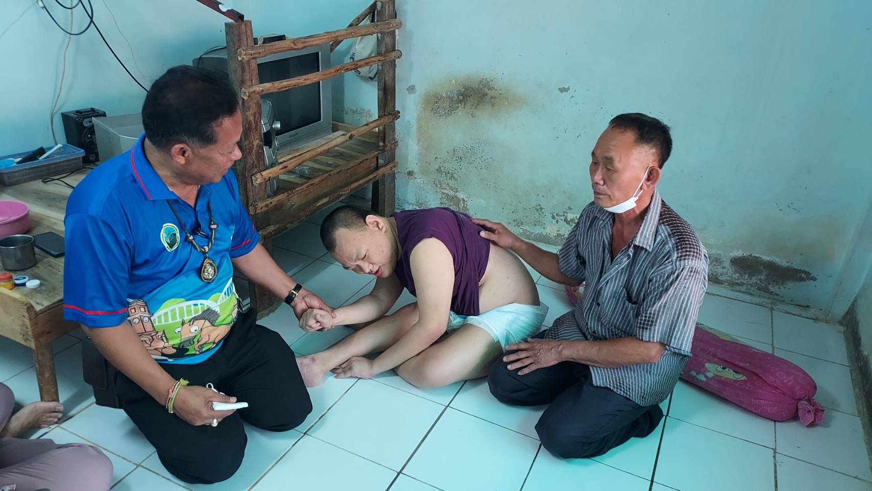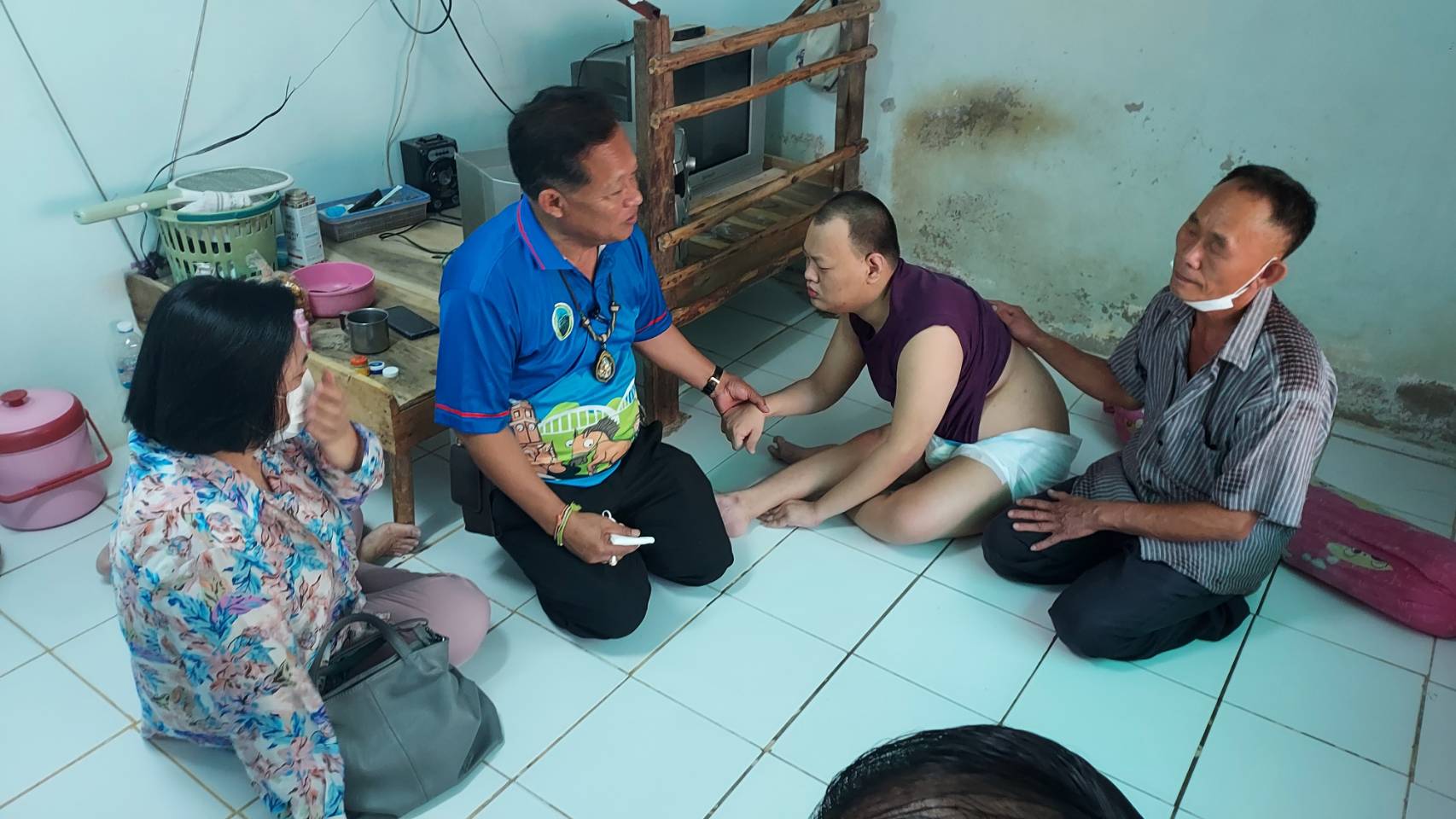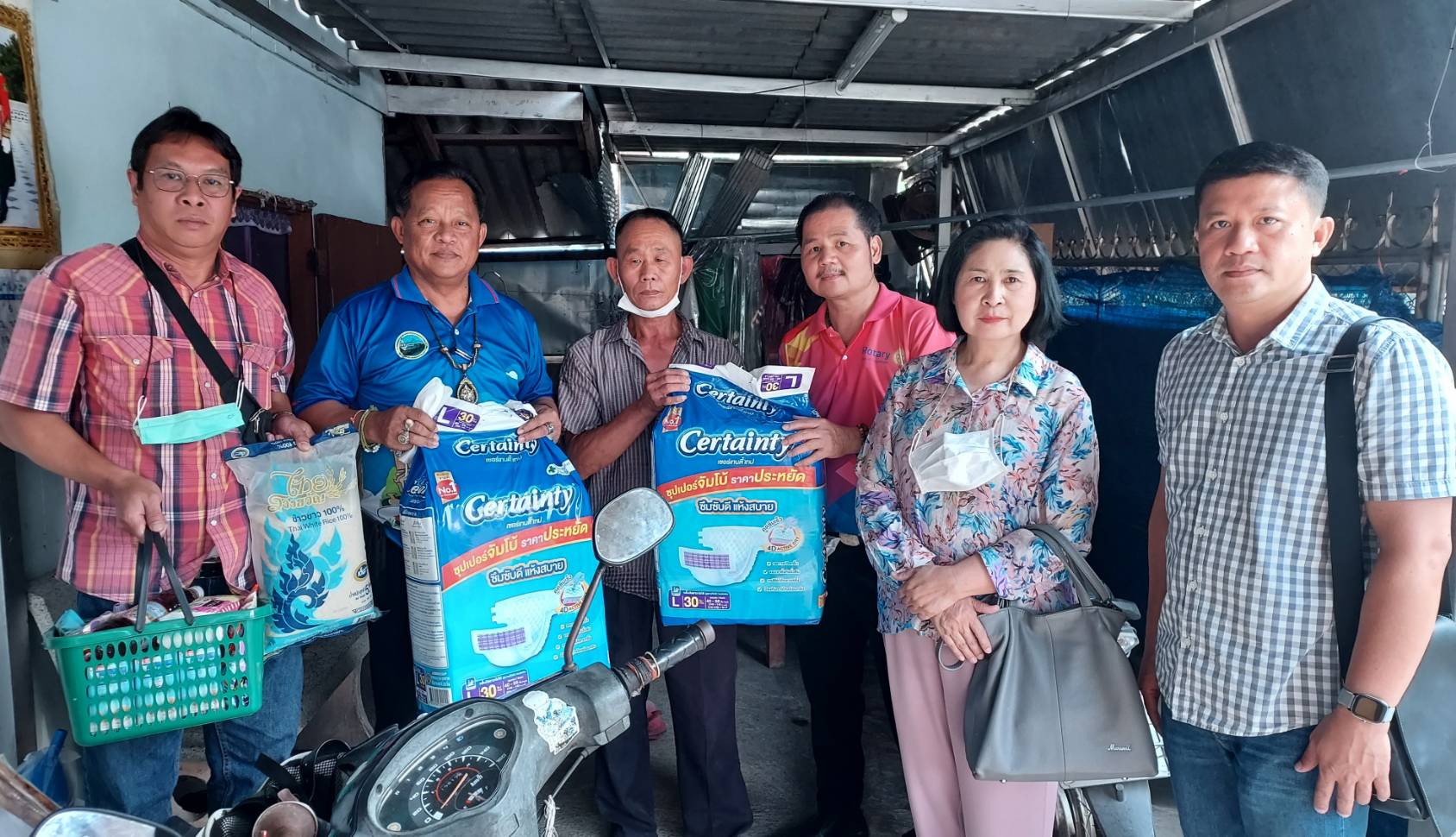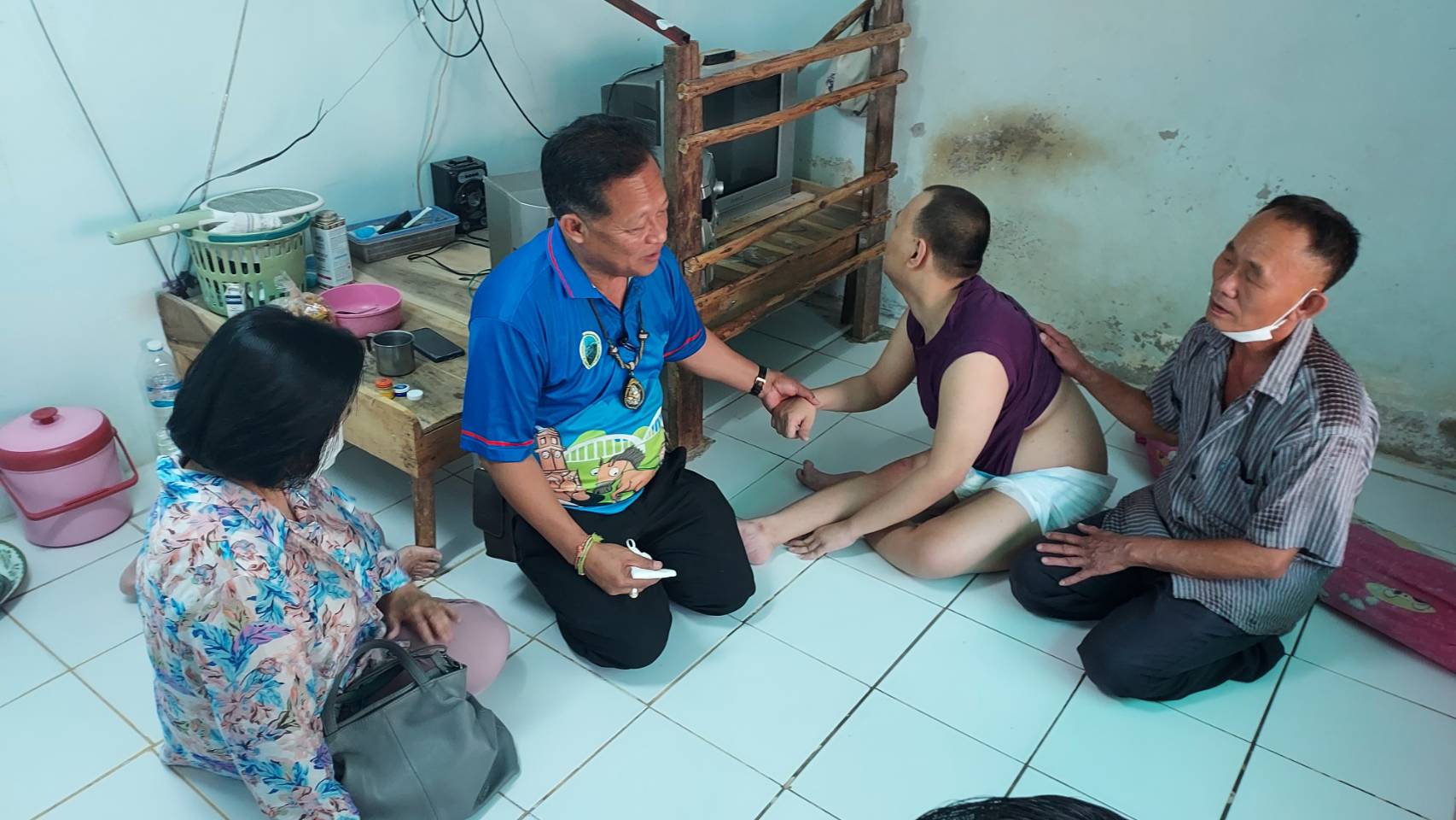 วันพฤหัสบดีที่ 11 เมษายน 2566 วิทยาลัยเทคนิคลำปางโดย นายณัฐนนท์ ภู่อริยพงศ์ ผู้อำนวยการวิทยาลัยเทคนิคลำปาง พร้อมด้วย นางโชติมา วัยวัฒน์ หัวหน้างานครูที่ปรึกษา และคณะครูวิทยาลัยเทคนิคลำปาง เข้าเยี่ยมให้กำลังใจ พร้อมมอบสิ่งของอุปโภค บริโภค ให้กับคุณพ่อที่เลี้ยงลูกพิการตั้งแต่กำเนิดโดยลำพัง ณ บ้านศรีหมวดเกล้า ตำบลชมพู อำเภอเมืองลำปาง จังหวัดลำปาง