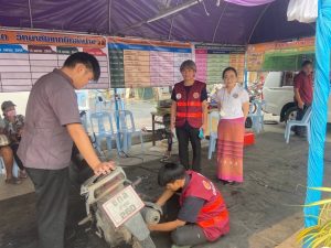 วันพุธที่ 12 เมษายน 2566 เวลา 10.00 น. นายณัฐนนท์ ภู่อริยพงศ์ ผู้อำนวยการวิทยาลัยเทคนิคลำปาง มอบหมายให้ นางสาวอรณี จริยา รองผู้อำนวยการฝ่ายวิชาการ เข้าตรวจเยี่ยมเเละให้กำลังใจ ครู นักเรียน นักศึกษา ในการปฏิบัติงาน โครงการศูนย์อาชีวะช่วยประชาชน (Fix it Center) เทศกาลสงกรานต์ พ.ศ. 2566 “ขับขี่ปลอดภัย ห่างไกลอุบัติเหตุ” โดยมี นายยรรยง แสนใจยา ครูประจำศูนย์ฯ ให้การต้อนรับ ซึ่งเป็นโครงการที่ช่วยดูแลบริการประชาชน ในการตรวจบำรุงรักษา และแก้ปัญหาของรถจักรยานยนต์ และรถยนต์ ของผู้สัญจรในช่วงเทศกาลสงกรานต์ โดยวิทยาลัยเทคนิคลำปางปฏิบัติงาน ในระหว่างวันที่ 11 – 17 เมษายน 2566 ภายในปั้มปตท. หจก.ธนันท์ตาปิโตรเลียม ถนนพหลโยธิน ลำปาง-งาว ตำบลพิชัย อำเภอเมือง จังหวัดลำปาง