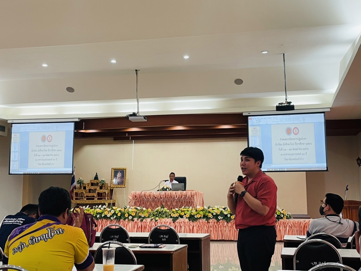 วันพฤหัสบดีที่ 27 เมษายน 2566 เวลา 13.30 น. งานกิจกรรมนักเรียนนักศึกษา และงานแนะเเนวอาชีพและจัดหางาน ฝ่ายพัฒนากิจการนักเรียนนักศึกษา วิทยาลัยเทคนิคลำปาง โดยนายณัฐนนท์ ภู่อริยพงศ์ ผู้อำนวยการวิทยาลัยเทคนิคลำปาง มอบหมายให้ ว่าที่ร้อยตรี สามารถ พุแพง รองผู้อำนวยการฝ่ายพัฒนากิจการนักเรียนนักศึกษา เป็นประธานในการประชุมหารือเตรียมความพร้อม การเข้าค่ายพัฒนาคุณธรรม จริยธรรม นักเรียนระดับ ปวช.1 ปีการศึกษา 2566 ซึ่งจะจัดขึ้นระหว่างวันที่ 6-8 พฤษภาคม 2566 ณ ค่ายฝึกการรบพิเศษประตูผา จังหวัดลำปาง และการปฐมนิเทศนักเรียนนักศึกษาใหม่ ระดับ ปวช.1และ ระดับ ปวส.1 ปีการศึกษา 2566 จะจัดขึ้นระหว่างวันที่ 11-12 พฤษภาคม 2566 ณ อาคารอเนกประสงค์ 70 ปี วิทยาลัยเทคนิคลำปาง โดยมีคณะผู้บริหาร คณะครู หัวหน้างาน และบุคลากรทางการศึกษาที่เกี่ยวข้องเข้าร่วมประชุม ณ ห้องประชุม ชั้น 2 อาคารโรงอาหาร วิทยาลัยเทคนิคลำปาง