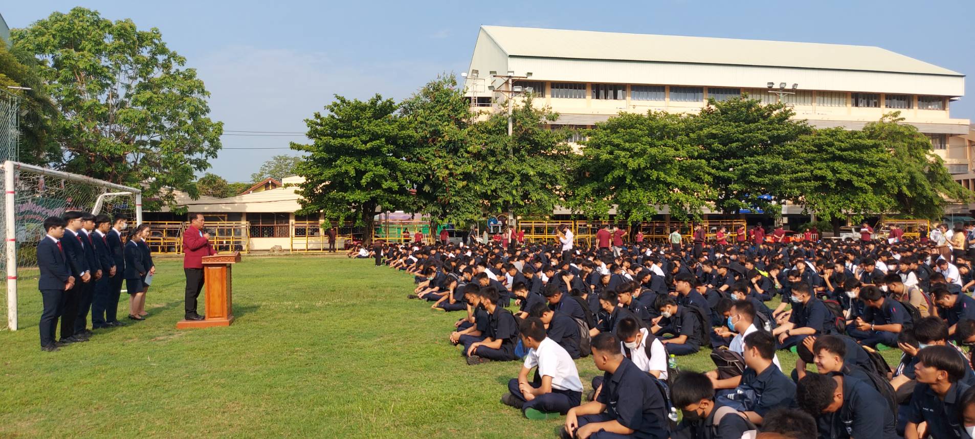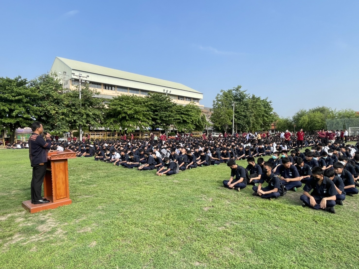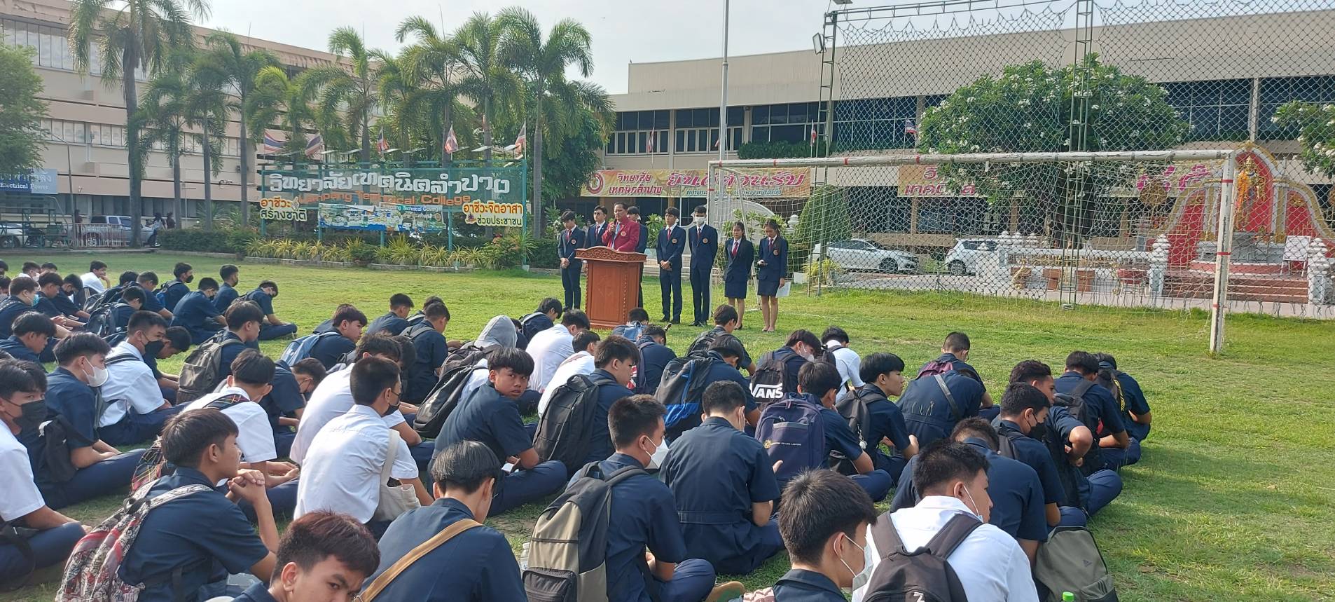 วันพุธที่ 24 พฤษภาคม 2566 เวลา 08.10.น นายณัฐนนท์ ภู่อริยพงศ์ ผู้อำนวยการวิทยาลัยเทคนิคลำปาง พร้อมด้วย ว่าที่ร้อยตรีสามารถ พุแพง รองผู้อำนวยการฝ่ายพัฒนากิจการนักเรียนนักศึกษา และหัวหน้างานที่เกี่ยวข้อง กล่าวต้อนรับนักเรียนนักศึกษาและให้โอวาท เนื่องในโอกาสเปิดภาคเรียนที่ 1 ปีการศึกษา 2566 พร้อมทั้งพูดคุย ชี้แจงทำความเข้าใจ เกี่ยวกับข้อมูลในการเรียน และการทำกิจกรรมต่างๆ แนวทางปฏิบัติตนตามมาตรฐานรักษาความปลอดภัยจากอุบัติเหตุ ทั้งภายในและภายนอกสถานศึกษา รวมถึงเรื่องการทะเลาะวิวาท และเน้นย้ำให้นักเรียน นักศึกษา ห่างไกลจากยาเสพติดทุกชนิด ณ บริเวณ สนามฟุตบอลวิทยาลัยเทคนิคลำปาง