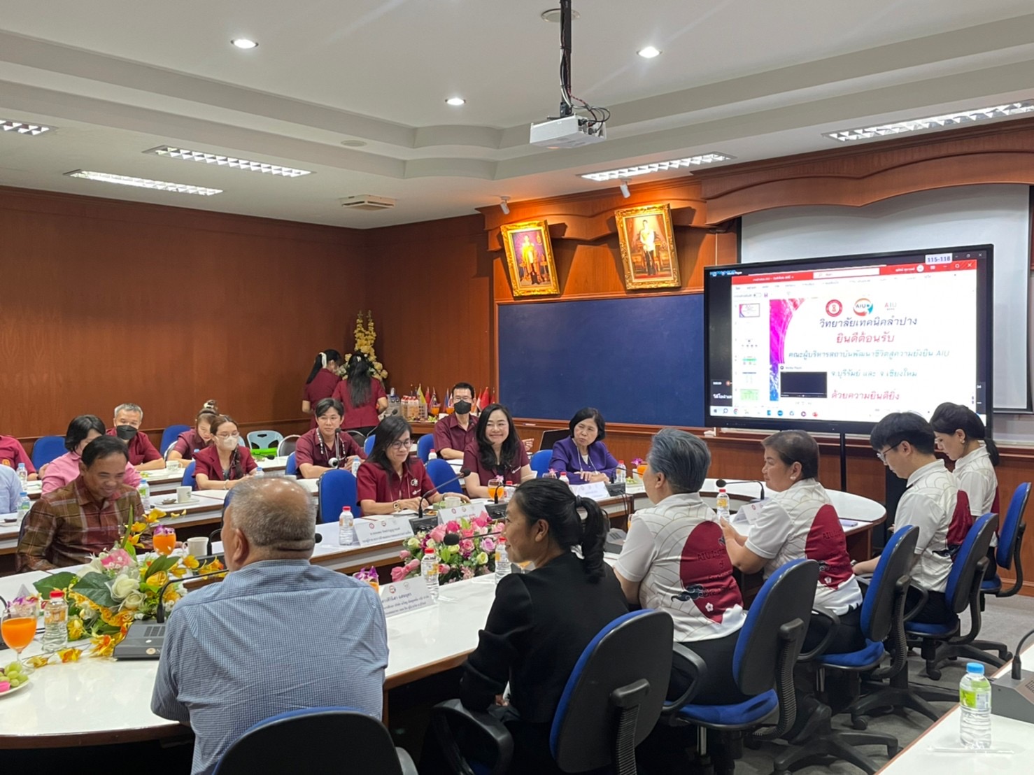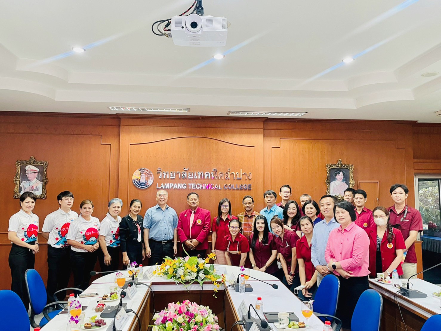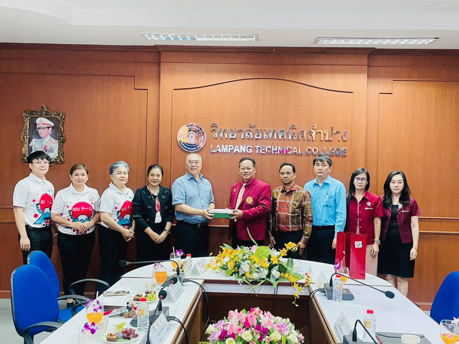 วันพุธที่ 7 มิถุนายน 2566 เวลา 13.30 น. นายณัฐนนท์ ภู่อริยพงศ์ ผู้อำนวยการวิทยาลัยเทคนิคลำปาง พร้อมด้วยคณะผู้บริหาร 4 ฝ่าย หัวหน้าแผนกวิชา จำนวน 9 แผนกวิชา หัวหน้างานอาชีวศึกษาระบบทวิภาคี หัวหน้างานแนะแนวอาชีพและการจัดหางาน ทีมงานอาชีวศึกษาระบบทวิภาคี และทีมงานแนะแนวอาชีพและการจัดหางาน เข้าร่วมในการต้อนรับ คณะผู้บริหารสถาบันพัฒนาชีวิตสู่ความยั่งยืน AIU ในการเข้าพบผู้อำนวยการวิทยาลัยเทคนิคลำปาง เพื่อเยี่ยมชมวิทยาลัย และการทำความร่วมมือในด้านอื่น ๆ เป็นประโยชน์ต่อนักเรียน นักศึกษา และวิทยาลัยเทคนิคลำปาง โดยมีนายจงสวัสดิ์ เลิศธนสาร ประธานกรรมการบริหารบริษัทในเครือ เอไอยู เอ็ดดูเคชั่น กรุ๊ป จำกัด และผู้ก่อตั้งสถาบันพัฒนาชีวิตสู่ความยั่งยืน AIU พร้อมด้วยคณะผู้บริหารสถาบันพัฒนาชีวิตสู่ความยั่งยืน AIU ณ ห้องประชุมชั้น 2 อาคาร 1 วิทยาลัยเทคนิคลำปาง