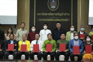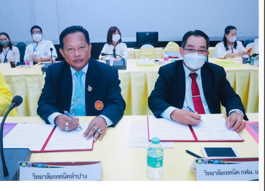 วันพุธที่ 14 มิถุนายน 2566 นายณัฐนนท์ ภู่อริยพงศ์ ผู้อำนวยการวิทยาลัยเทคนิคลำปาง เข้าร่วมพิธีลงนามบันทึกข้อตกลงความร่วมมือทางวิชาการภายใต้ “โครงการพัฒนาและสนับสนุนพื้นที่วิจัยเชิงยุทธศาสตร์ เพื่อขจัดความยากจนและสร้างโอกาสทางสังคมพื้นที่จังหวัดลำปาง และโครงการกระบวนการมีส่วนร่วมยกระดับสินค้าเกษตรมูลค่าสูงด้วยเทคโนโลยีที่เหมาะสม” เพื่อสร้างโอกาสและคุณค่าร่วมทางสังคมของคนจนเป้าหมายพื้นที่วิจัยจังหวัดลำปาง โดยการสนับสนุนงบอุดหนุนการวิจัย จากสำนักงานสภานโยบายการอุดมศึกษา วิทยาศาสตร์ วิจัยและนวัตกรรมแห่งชาติ (สอ.วช.) โดย หน่วยบริหารและจัดการทุนวิจัยด้านการพัฒนาระดับพื้นที่ (บพท.) ระหว่างตัวแทนหน่วยงาน 22 หน่วยงาน โดยมี นายชัชวาลย์ ฉายะบุตร ผู้ว่าราชการจังหวัดลำปาง เป็นประธานพิธีลงนามบันทึกข้อตกลงความร่วมมือฯ ณ ห้องโอฬารรมย์ อาคารโอฬาร โรจน์หิรัญ มหาวิทยาลัยราชภัฏลำปาง