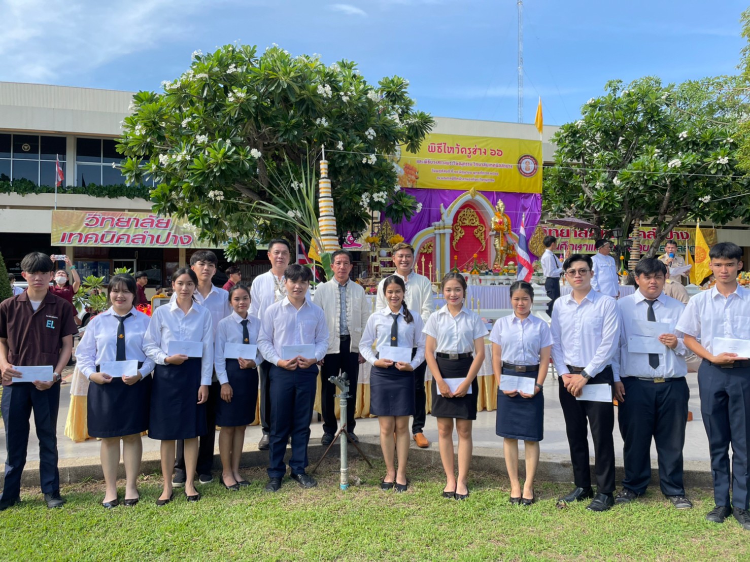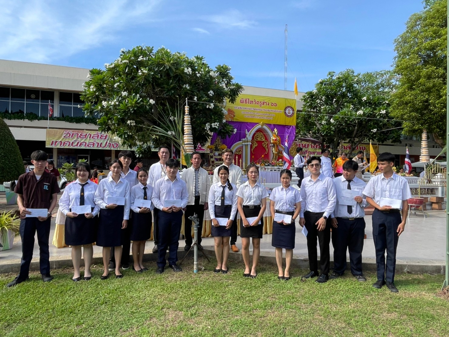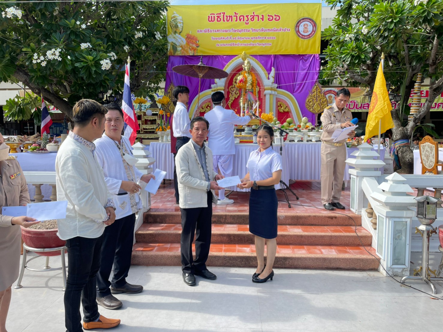 วันพฤหัสบดีที่ 15 มิถุนายน 2566 เวลา 08:45 น. นายกฤษฎา แสงแก้ว นายกเทศมนตรีตำบลนาแก้ว นายจักรินทร์ อ๊อดปัญญา เจ้าของกิจการลำปางรีโนเวท และ นายสุริยา เกตตะพันธุ์ เจ้าของกิจการ วาเลนไทน์ เฮาส์ จากสมาคมศิษย์เก่าเทคนิคลำปาง ได้มอบทุนการศึกษา จำนวน 24,000 บาท (สองหมื่นสี่พันบาทถ้วน) ให้กับนักเรียน นักศึกษาของวิทยาลัยเทคนิคลำปาง เพื่อเป็นทุนการศึกษาให้กับนักเรียน นักศึกษา ที่มีผลการเรียนดี ความประพฤติดี แต่ขาดแคลนทุนทรัพย์ และ นาย จารุวิทย์ ธรรมจักร นักศึกษา ระดับชั้นปวส.2 แผนกอิเล็กทรอนิกส์ วิทยาลัยเทคนิคลำปาง ผู้ประสพเหตุเพลิงไหม้บ้าน ณ ลานพระวิษณุกรรม วิทยาลัยเทคนิคลำปาง