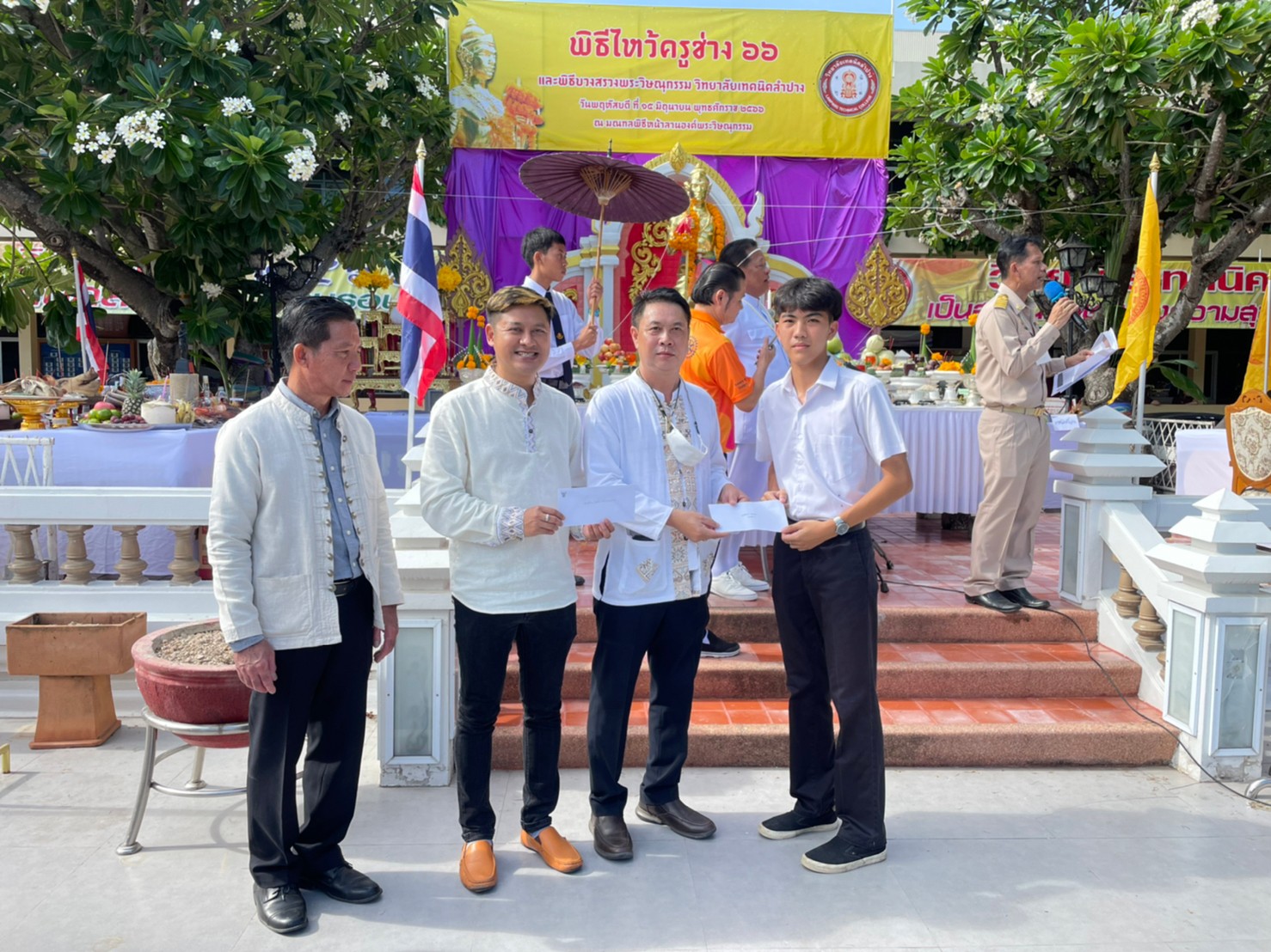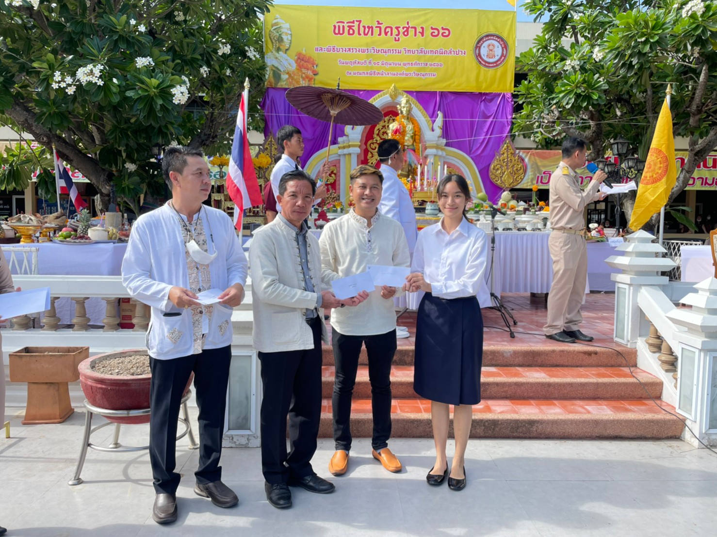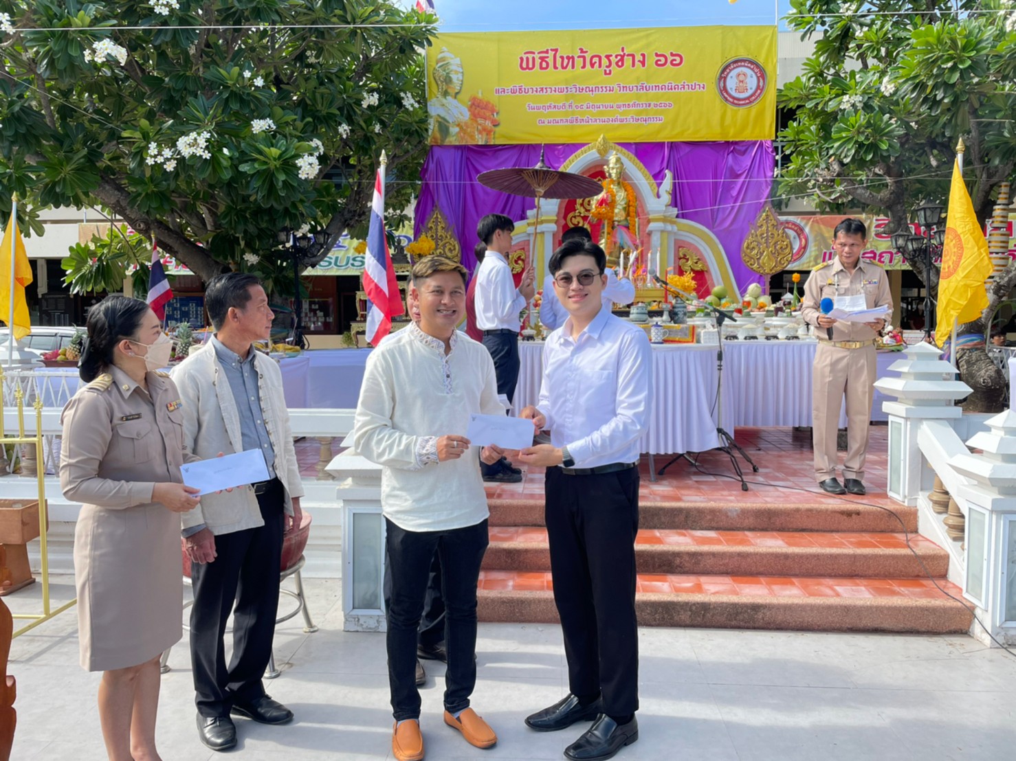 วันพฤหัสบดีที่ 15 มิถุนายน 2566 เวลา 08:45 น. นายกฤษฎา แสงแก้ว นายกเทศมนตรีตำบลนาแก้ว นายจักรินทร์ อ๊อดปัญญา เจ้าของกิจการลำปางรีโนเวท และ นายสุริยา เกตตะพันธุ์ เจ้าของกิจการ วาเลนไทน์ เฮาส์ จากสมาคมศิษย์เก่าเทคนิคลำปาง ได้มอบทุนการศึกษา จำนวน 24,000 บาท (สองหมื่นสี่พันบาทถ้วน) ให้กับนักเรียน นักศึกษาของวิทยาลัยเทคนิคลำปาง เพื่อเป็นทุนการศึกษาให้กับนักเรียน นักศึกษา ที่มีผลการเรียนดี ความประพฤติดี แต่ขาดแคลนทุนทรัพย์ และ นาย จารุวิทย์ ธรรมจักร นักศึกษา ระดับชั้นปวส.2 แผนกอิเล็กทรอนิกส์ วิทยาลัยเทคนิคลำปาง ผู้ประสพเหตุเพลิงไหม้บ้าน ณ ลานพระวิษณุกรรม วิทยาลัยเทคนิคลำปาง