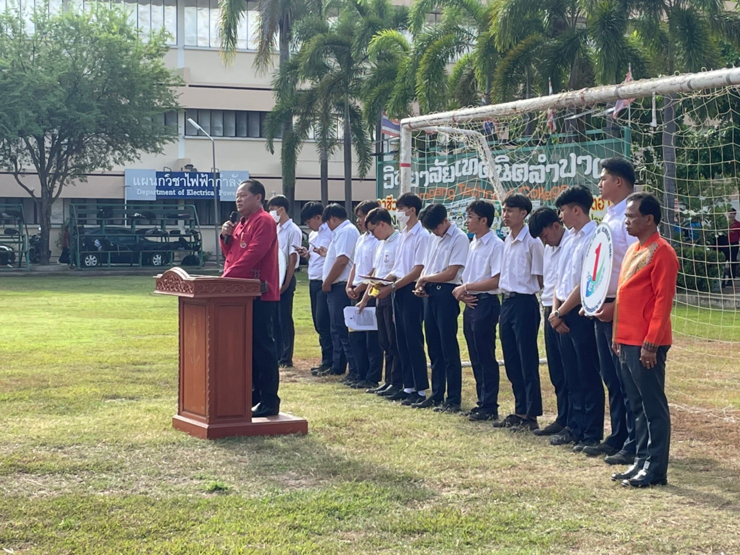 วันพุธที่ 21 มิถุนายน 2566เวลา 07.45 น. นายณัฐนนท์ ภู่อริยพงศ์ ผู้อำนวยการวิทยาลัยเทคนิคลำปาง นำคณะครู อาจารย์ เจ้าหน้าที่ ชมรม To be number one นักเรียนนักศึกษา วิทยาลัยเทคนิคลำปาง แสดงพลังต่อต้านยาเสพติดเนื่องในวันต่อต้านยาเสพติดโลก วันที่ 26 มิถุนายน 2566 ภายใต้กรอบแนวคิดและคำขวัญ “รวมพลังไทย หยุดภัยยาเสพติด” โดยมี ว่าที่ร้อยตรีสามารถ พุแพง รองผู้อำนวยการฝ่ายพัฒนากิจการนักเรียนนักศึกษา เป็นผู้อ่านสาร รัฐมนตรีว่าการกระทรวงศึกษาธิการและนายณัฐนนท์ ภู่อริยพงศ์ ผู้อำนวยการวิทยาลัยเทคนิคลำปาง กล่าวให้โอวาทแก่นักเรียนนักศึกษา ณ ลานพระวิษณุกรรม วิทยาลัยเทคนิคลำปาง