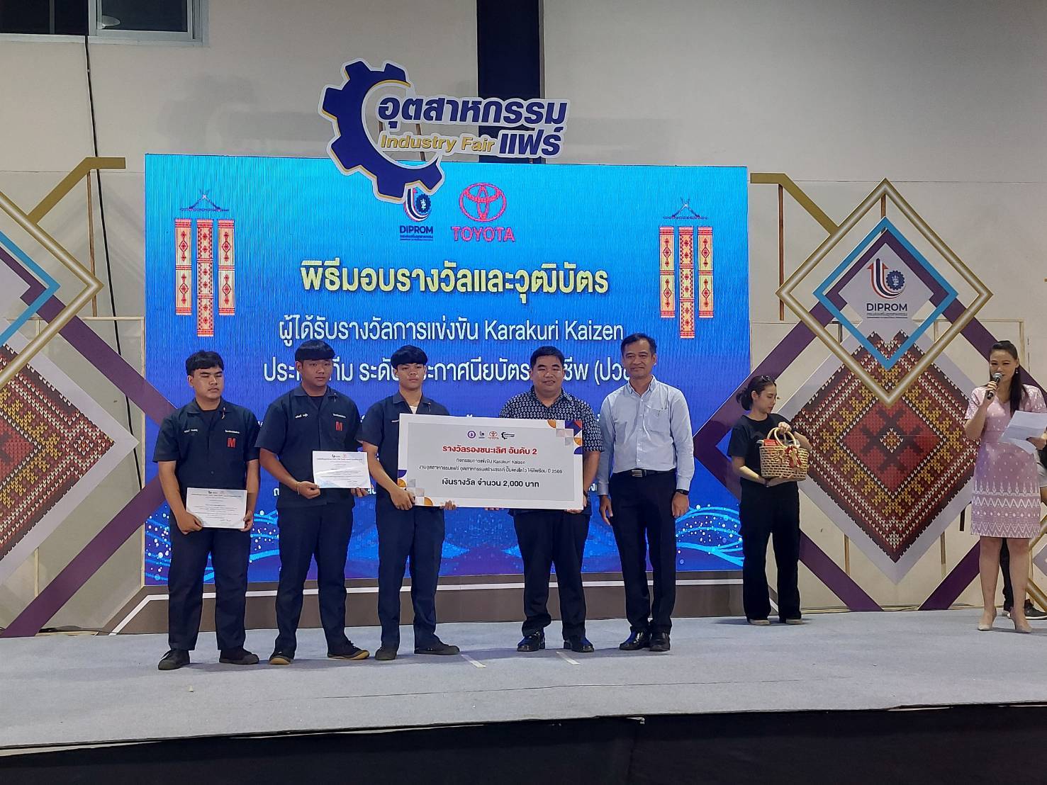 ระหว่างวันที่ 24 – 25 มิถุนายน 2566 นายณัฐนนท์ ภู่อริยพงศ์ ผู้อำนวยการวิทยาลัยเทคนิคลำปาง พร้อมด้วย นางสาวอรณี จริยา รองผู้อำนวยการฝ่ายวิชาการ เข้าเยี่ยมชมและให้กำลังใจ นักเรียน นักศึกษา แผนกวิชาช่างยนต์ แผนกวิชาช่างกลโรงงาน แผนกวิชาช่างเมคคาทรอนิกส์ และ แผนกวิชาช่างอิเล็กทรอนิกส์ ที่เข้าร่วมการแข่งขัน Toyota karakuri kaizen ในงานอุตสาหกรรมแฟร์ ซึ่งผลการแข่งขัน รางวัล ชนะเลิศ ได้แก่ทีม Machine Boy จากแผนกวิชาช่างกลโรงาน,รางวัลรองชนะเลิศ อันดับ2 ได้แก่ทีมMachine Shop จากแผนกวิชาช่างกลโรงาน และรางวัลรองชนะเลิศ อันดับ 3 ทีมช่างยนต์3/5 จากแผนกวิชาช่างยนต์ ณ ศูนย์ประชุมและแสดงสินค้าอุตสาหกรรมภาคเหนือ จังหวัดลำปาง