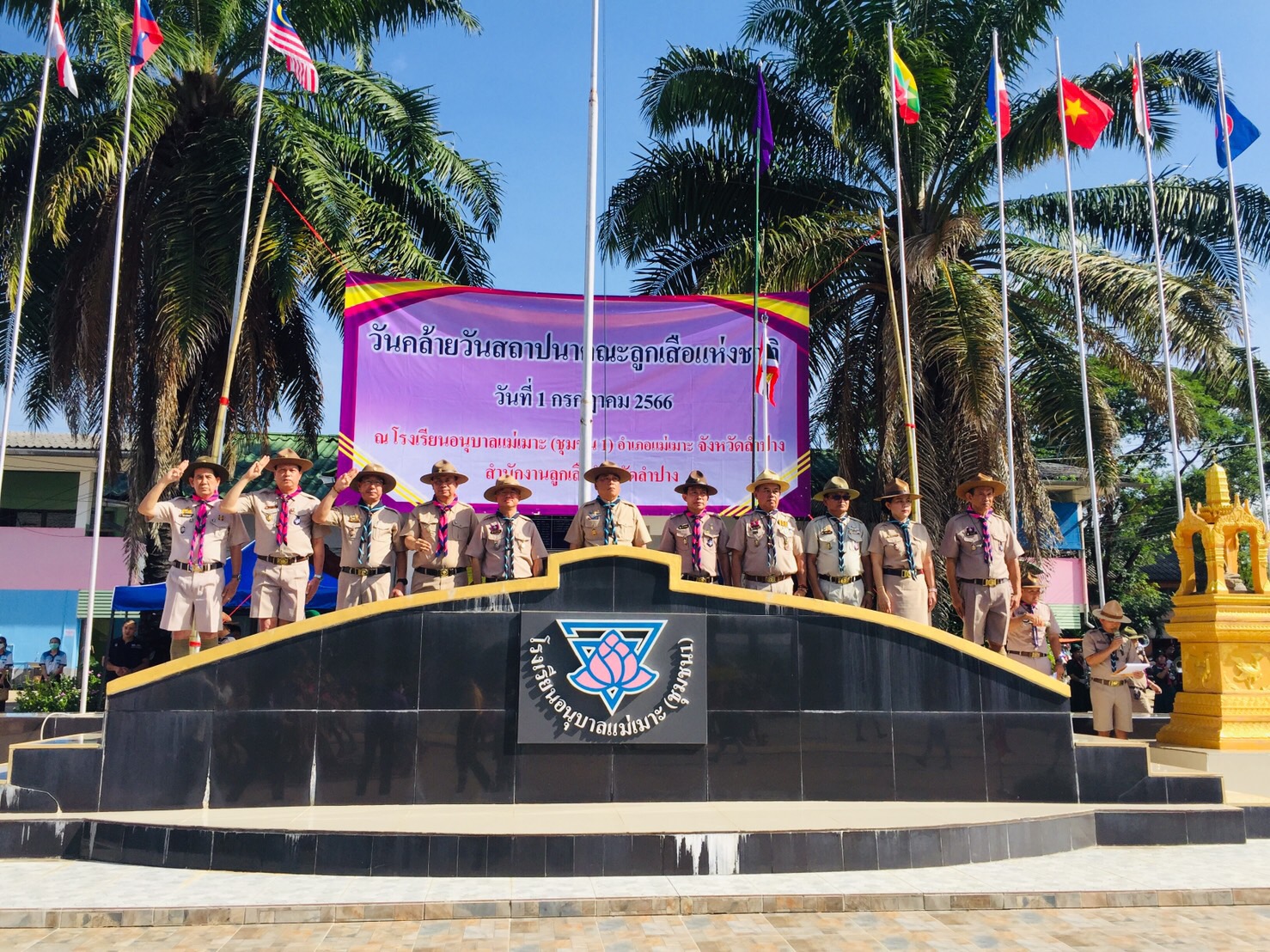 ระหว่างวันที่ 29 มิถุนายน – 1 กรกฎาคม 2566 นายณัฐนนท์ ภู่อริยพงศ์ ผู้อำนวยการสำนักงานอาชีวศึกษาจังหวัดลำปาง พร้อมด้วยว่าที่ร้อยตรีสามารถ พุแพงเลขานุการ สำนักงานอาชีวศึกษาจังหวัดลำปาง เข้าร่วมงานชุมนุมลูกเสือจิตอาสาพระราชทานครั้งที่ 2จังหวัดลำปาง ”ลูกเสือจิตอาสาพระราชทาน มุ่งทำความดีด้วยหัวใจ”พร้อมทั้งเข้าร่วมประกอบพิธีทบทวนคําปฏิญาณและสวนสนาม เนื่องในวันคล้ายวันสถาปนาคณะลูกเสือแห่งชาติ 1 กรกฏาคม คณะลูกเสือแห่งชาติ ประจำปี 2566 โดยมีนายชัชวาลย์ ฉายะบุตร ผู้ว่าราชการจังหวัดลำปาง เป็นประธานพิธีฯ เพื่อเป็นการน้อมรำลึกในพระมหากรุณาธิคุณของพระบาทสมเด็จพระมงกุฎเกล้าเจ้าอยู่หัว ผู้พระราชทานกำเนิดลูกเสือไทย และเป็นการแสดงความจงรักภักดีแด่องค์พระบาทสมเด็จพระเจ้าอยู่หัวพระประมุขของคณะลูกเสือแห่งชาติ ณ โรงเรียนอนุบาลแม่เมาะ (ชุมชน1) อ.แม่เมาะ จ.ลำปาง