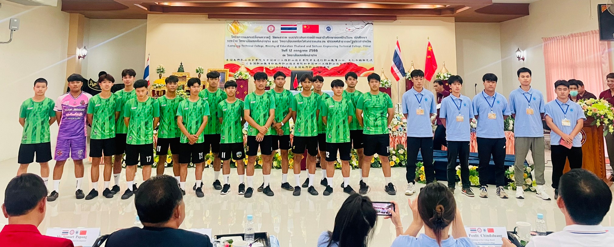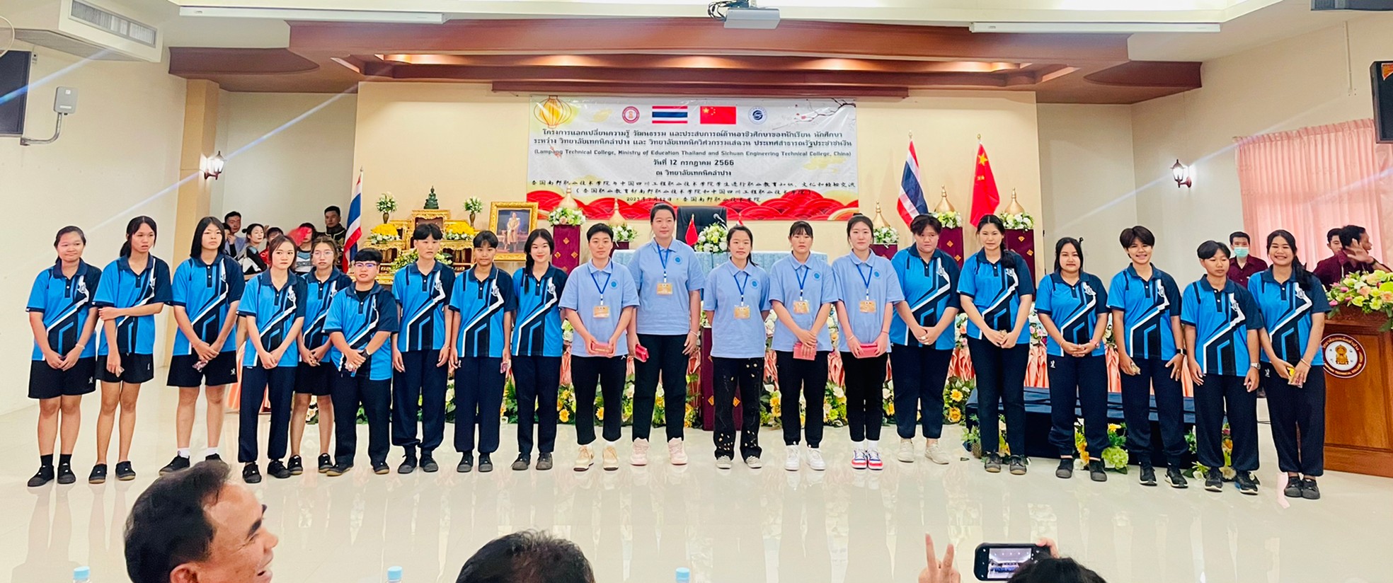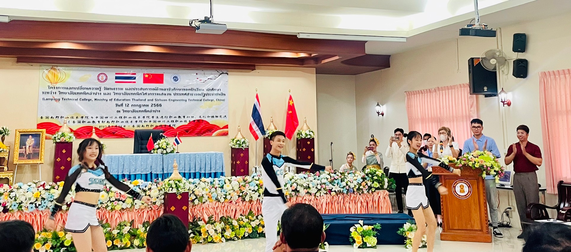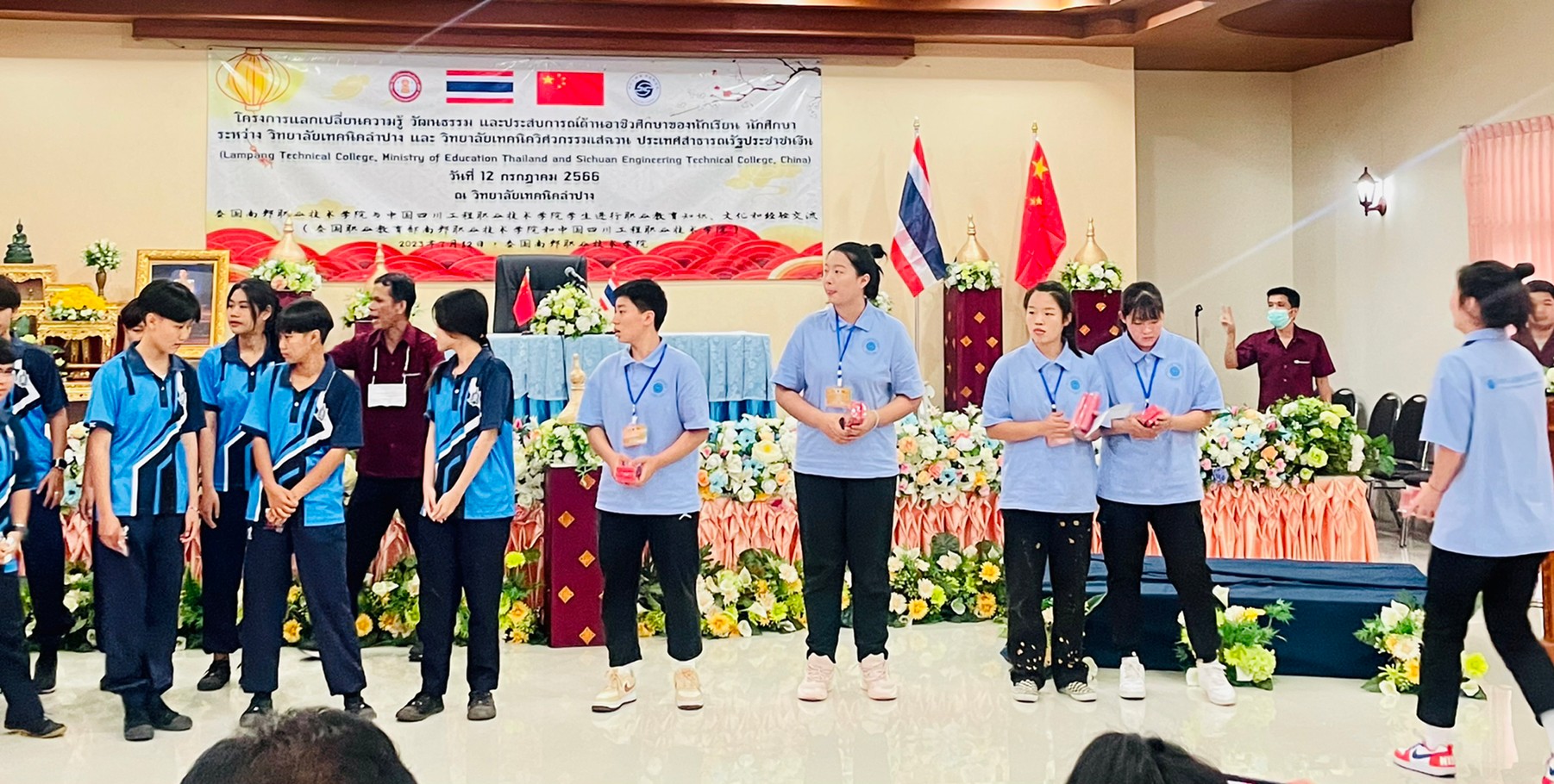 วันพุธที่ 12 กรกฎาคม 2566 เวลา 13.00 น. นายณัฐนนท์ ภู่อริยพงศ์ ผู้อำนวยการวิทยาลัยเทคนิคลำปาง พร้อมด้วยคณะผู้บริหาร คณะครูบุคลากรทางการศึกษา และนักเรียนนักศึกษาวิทยาลัยเทคนิคลำปาง ให้การต้อนรับคณะผู้บริหาร คณะครู และนักเรียน นักศึกษา จาก Sichuan Engineering Technical College ประเทศจีน โดยการนำของนายพลฤทธิ์ จินดาหลวง ประธานกรรมการวิทยาลัยเทคนิคเชียงใหม่และคณะ ภายใต้โครงการความร่วมมือฯแลกเปลี่ยนความรู้ วัฒนธรรม และประสบการณ์ด้านอาชีวศึกษาของนักเรียน นักศึกษา ระหว่าง วิทยาลัยเทคนิคลำปาง และ วิทยาลัยเทคนิควิศวกรรมเสฉวน ประเทศสาธารณรัฐประชาชนจีน (Lampang Technical College, Ministry of Education Thailand and Sichuan Engineering Technical College, China) ณ วิทยาลัยเทคนิคลำปาง