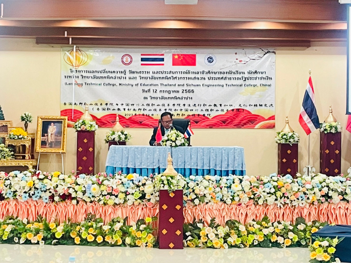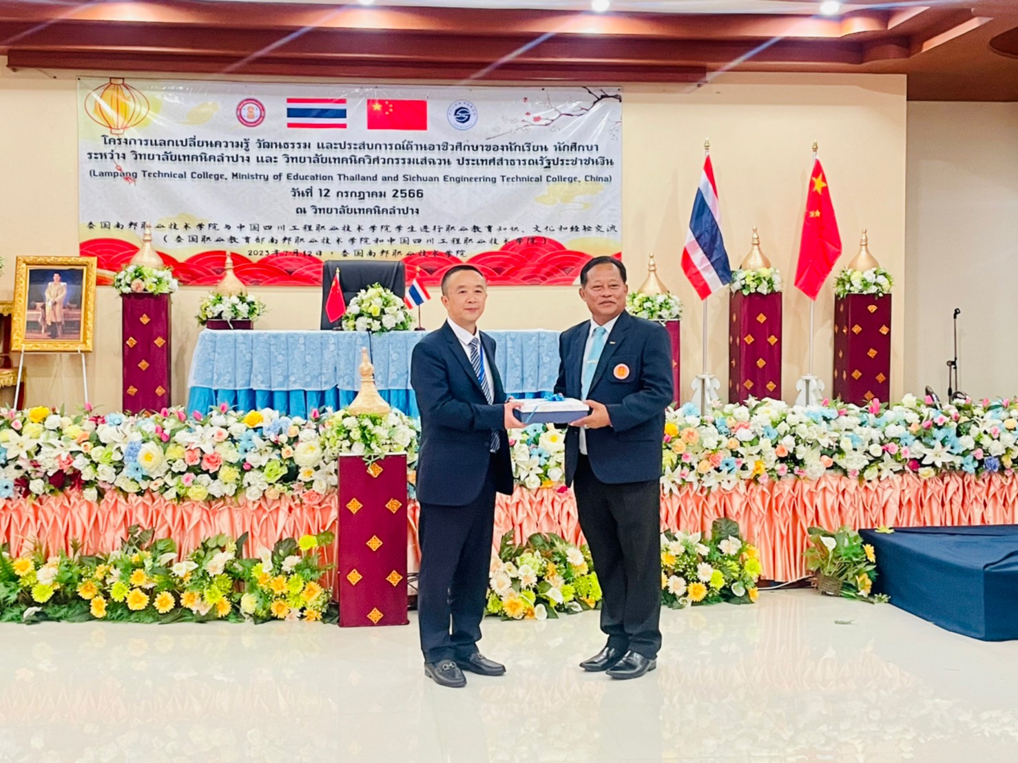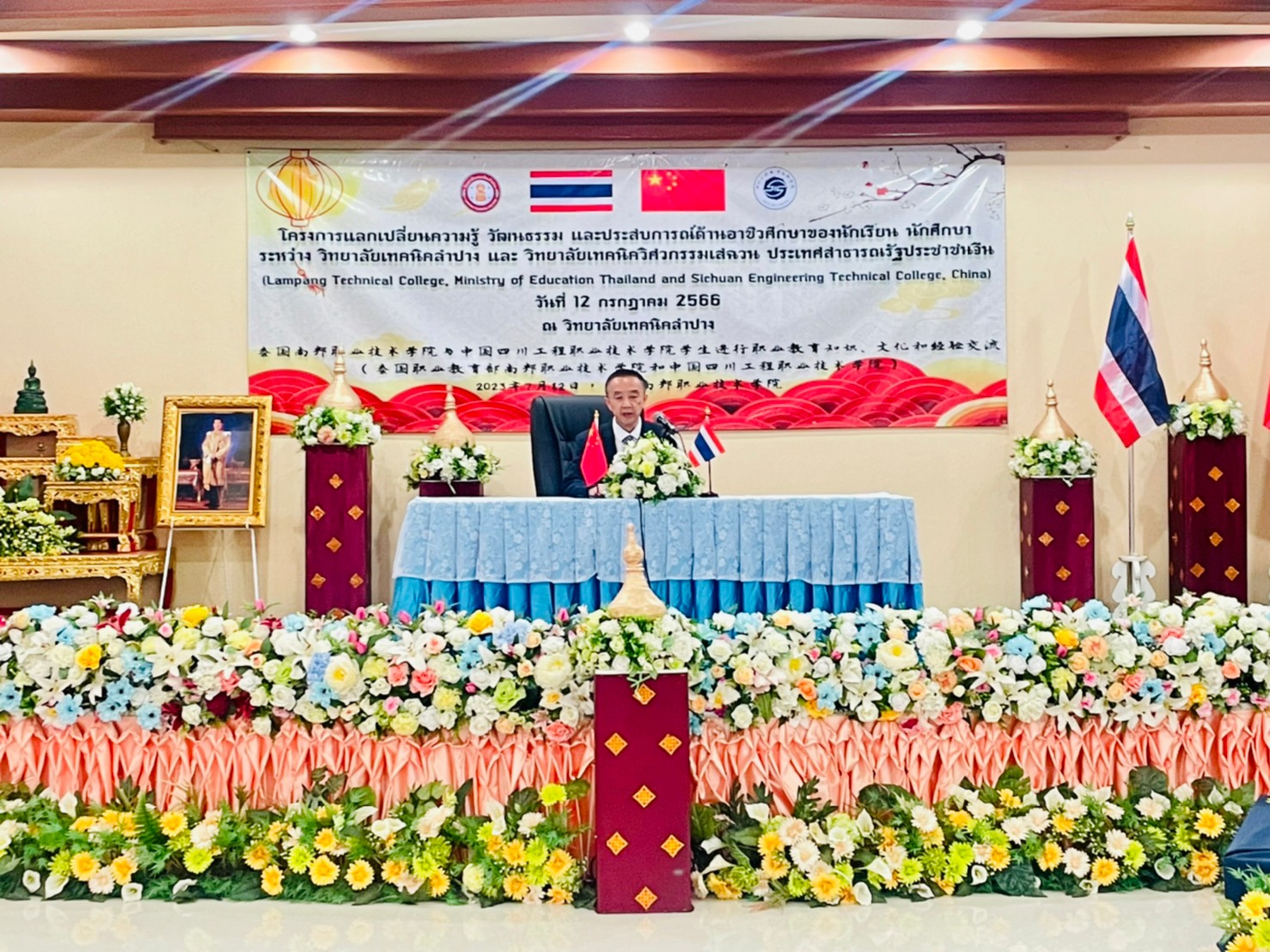 วันพุธที่ 12 กรกฎาคม 2566 เวลา 13.00 น. นายณัฐนนท์ ภู่อริยพงศ์ ผู้อำนวยการวิทยาลัยเทคนิคลำปาง พร้อมด้วยคณะผู้บริหาร คณะครูบุคลากรทางการศึกษา และนักเรียนนักศึกษาวิทยาลัยเทคนิคลำปาง ให้การต้อนรับคณะผู้บริหาร คณะครู และนักเรียน นักศึกษา จาก Sichuan Engineering Technical College ประเทศจีน โดยการนำของนายพลฤทธิ์ จินดาหลวง ประธานกรรมการวิทยาลัยเทคนิคเชียงใหม่และคณะ ภายใต้โครงการความร่วมมือฯแลกเปลี่ยนความรู้ วัฒนธรรม และประสบการณ์ด้านอาชีวศึกษาของนักเรียน นักศึกษา ระหว่าง วิทยาลัยเทคนิคลำปาง และ วิทยาลัยเทคนิควิศวกรรมเสฉวน ประเทศสาธารณรัฐประชาชนจีน (Lampang Technical College, Ministry of Education Thailand and Sichuan Engineering Technical College, China) ณ วิทยาลัยเทคนิคลำปาง