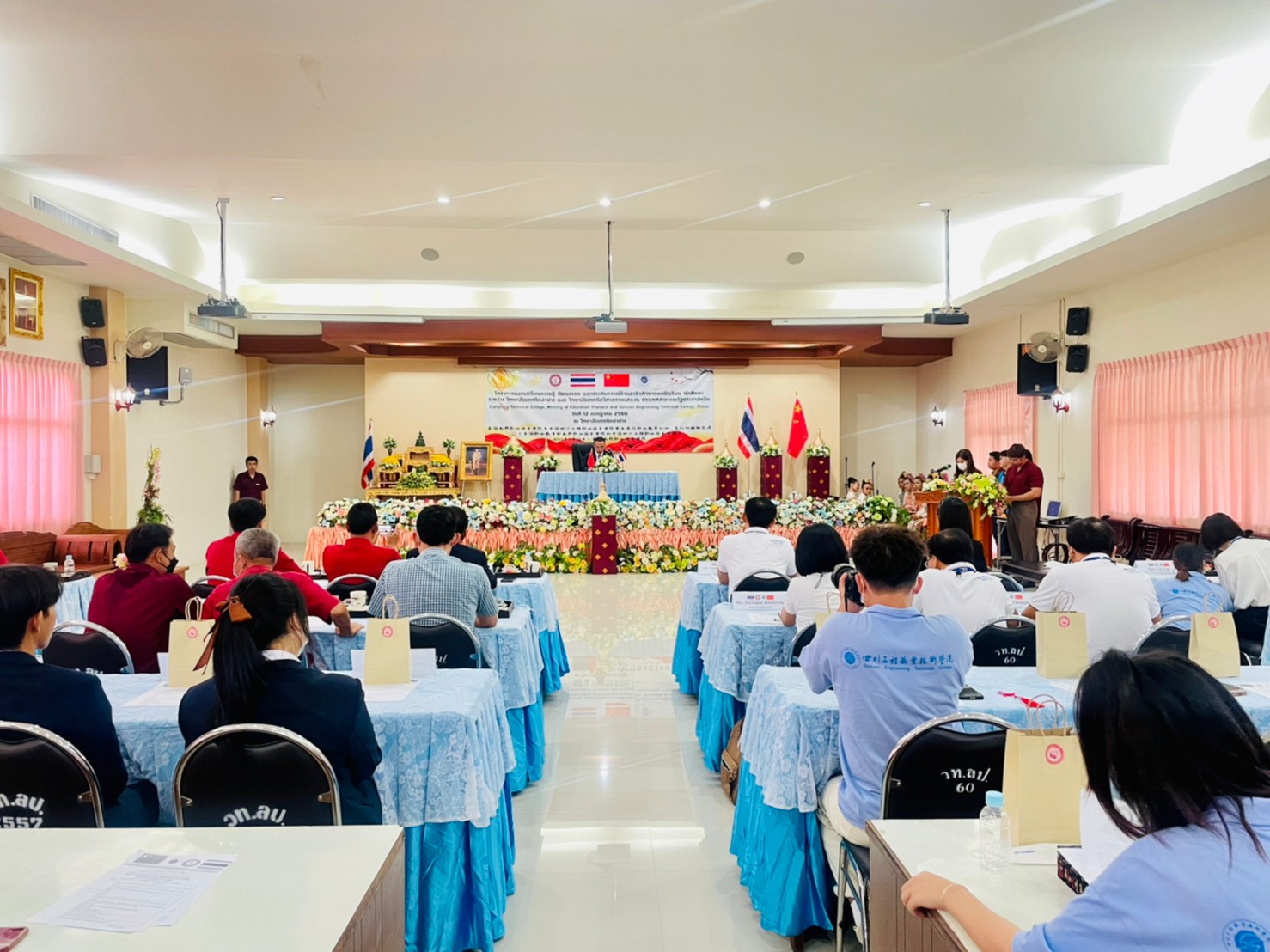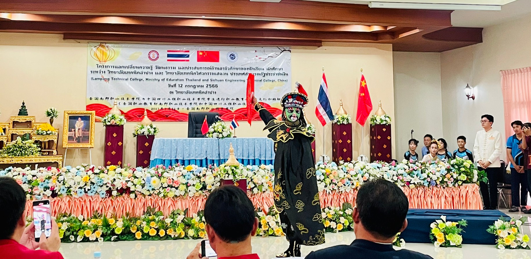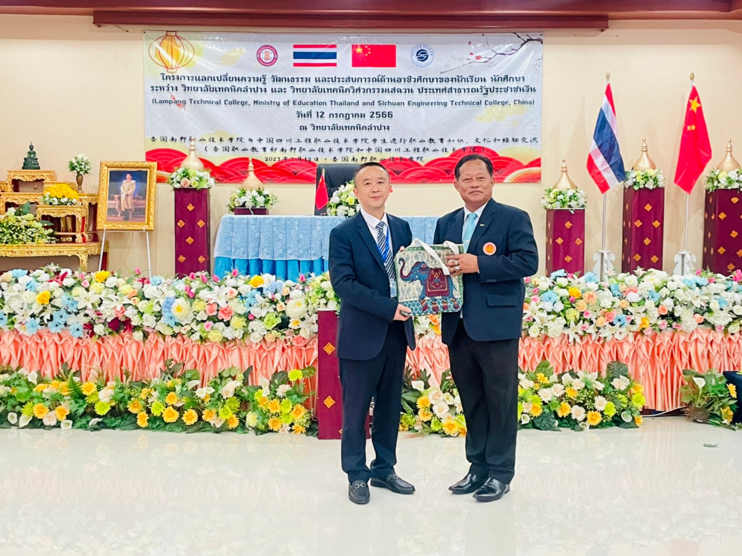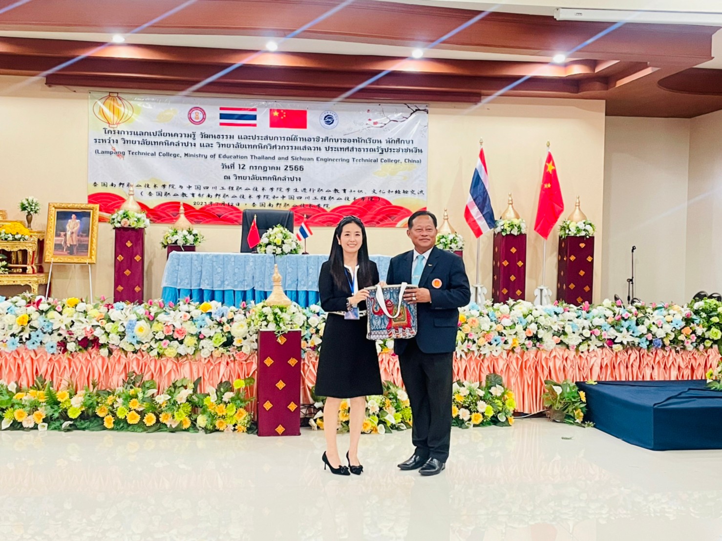 วันพุธที่ 12 กรกฎาคม 2566 เวลา 13.00 น. นายณัฐนนท์ ภู่อริยพงศ์ ผู้อำนวยการวิทยาลัยเทคนิคลำปาง พร้อมด้วยคณะผู้บริหาร คณะครูบุคลากรทางการศึกษา และนักเรียนนักศึกษาวิทยาลัยเทคนิคลำปาง ให้การต้อนรับคณะผู้บริหาร คณะครู และนักเรียน นักศึกษา จาก Sichuan Engineering Technical College ประเทศจีน โดยการนำของนายพลฤทธิ์ จินดาหลวง ประธานกรรมการวิทยาลัยเทคนิคเชียงใหม่และคณะ ภายใต้โครงการความร่วมมือฯแลกเปลี่ยนความรู้ วัฒนธรรม และประสบการณ์ด้านอาชีวศึกษาของนักเรียน นักศึกษา ระหว่าง วิทยาลัยเทคนิคลำปาง และ วิทยาลัยเทคนิควิศวกรรมเสฉวน ประเทศสาธารณรัฐประชาชนจีน (Lampang Technical College, Ministry of Education Thailand and Sichuan Engineering Technical College, China) ณ วิทยาลัยเทคนิคลำปาง