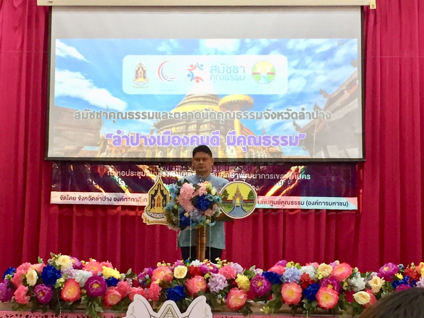 วันศุกร์ที่ 14 กรกฎาคม 2566 เวลา 09.30 น. นายณัฐนนท์ ภู่อริยพงศ์ ผู้อำนวยการวิทยาลัยเทคนิคลำปาง มอบหมายให้ ว่าที่ร้อยตรีสามารถ พุแพง รองผู้อำนวยการฝ่ายพัฒนากิจการนักเรียนนักศึกษา เข้าร่วมงานสมัชชาคุณธรรมและตลาดนัดคุณธรรมจังหวัดลำปาง ปี 2566 โดยนายชัชวาลย์ ฉายะบุตร ผู้ว่าราชการจังหวัดลำปาง มอบหมายให้ นายชนาธิป เสมแย้ม รองผู้ว่าราชการจังหวัดลำปาง เป็นประธานกล่าวเปิดงานฯ พร้อมประกาศเจตนารมณ์รวมพลังขับเคลื่อนสังคมคุณธรรมจังหวัดลำปาง โดยมี นางสาวทัศนีย์ ดอนเนตร์ วัฒนธรรมจังหวัดลำปาง กล่าวรายงานฯ ณ หอประชุมโรงเรียนเตรียมอุดมศึกษาพัฒนาการเขลางค์นคร จังหวัดลำปาง