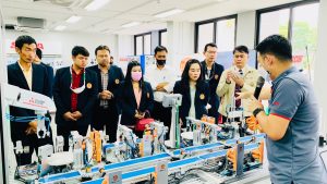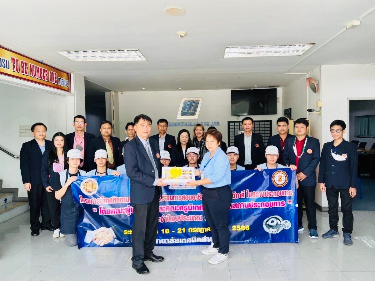 ระหว่างวันที่ 18 – 21 กรกฎาคม 2566 นายณัฐนนท์ ภู่อริยพงศ์ มอบหมายให้ นางสาวอรณี จริยา รองผู้อำนวยการฝ่ายวิชาการ และนายธนพล ทิพย์กัญญานนท์ รองผู้อำนวยการฝ่ายแผนงานและความร่วมมือ พร้อมด้วย หัวหน้างานทวิภาคี ทีมงานอาชีวศึกษาระบบทวิภาคี และคณะครูนิเทศก์ นักเรียน นักศึกษา ฝึกอาชีพในสถานประกอบการ จำนวน 5 แผนกวิชา ได้แก่ แผนกวิชาช่างยนต์ แผนกวิชาช่างกลโรงงาน แผนกวิชาช่างเชื่อมโลหะ แผนกวิชาช่างไฟฟ้ากำลัง และแผนกวิชาอิเล็กทรอนิกส์ เข้านิเทศติดตามผลการจัดการเรียนการสอนอาชีวศึกษาระบบทวิภาคี ในสถานประกอบการ จำนวน 7 แห่ง เพื่อให้คณะผู้บริหาร ทีมงานอาชีวศึกษาระบบทวิภาคี และคณะครูนิเทศก์ เข้าประชุมหารือ กับคณะผู้บริหาร คณะครูผู้ควบคุมการฝึกในสถานประกอบการ ถึงปัญหา วิธีการแก้ไขปัญหา การดูแลและช่วยเหลือผู้เรียนที่อยู่ระหว่างการฝึกในสถานประกอบการ ร่วมหารือ ในการแก้ปัญหาร่วมกับสถานประกอบการ ในการดูแล ช่วยเหลือนักศึกษา ที่มีปัญหาระหว่างการฝึกอาชีพในสถานประกอบการ และการทำเข้าศึกษาดูงานในสถานประกอบการ เพื่อหารือความร่วมมือ MOU เพื่อขยายสถานประกอบการ ให้เพียงพอต่อความต้องการของนักศึกษา ฝึกอาชีพในสถานประกอบการ โดยสอบถามถึงจำนวนที่จะรับนักศึกษา เข้าฝึกอาชีพในสถานประกอบการสวัสดิการต่าง ๆ ในขณะที่เข้าฝึกอาชีพในสถานประกอบการ เพื่อจะได้นำไปประชาสัมพันธ์ ให้แก่ นักศึกษา และผู้ปกครอง ที่มีความสนใจ จะมาฝึกอาชีพกับสถานประกอบการ ดังกล่าว การหารือเรื่องแผนการฝึกอาชีพ และการทำแผนการฝึกอาชีพ ร่วมกับสถานประกอบการ พร้อมเข้าเยี่ยมชมสถานประกอบการ และขบวนการผลิตในสถานประกอบการ ณ บริษัท มิตซูบิชิ อิเล็คทริคคอนซูมเมอร์ โปรดักส์ (ประเทศไทย) จำกัด บริษัท วาลโบร (ประเทศไทย) จำกัด (มูลนิธิเฟืองพัฒนา) บริษัท ซัมมิท แหลมฉบัง โอโต้ บอดี้ เวิร์ค จำกัด จังหวัดชลบุรี บริษัท EV PRO TECH จำกัด จังหวัดสมุทรปราการ บริษัท MG เจริญกรุง-สาทร ออโต้เซลส์ จำกัด บริษัท เอ็นจ์-เพาเวอร์เซอร์วิสเซล จำกัด บริษัท เยนเนอรัลอินสทรูเม้นท์ จำกัด จังหวัดกรุงเทพมหานคร