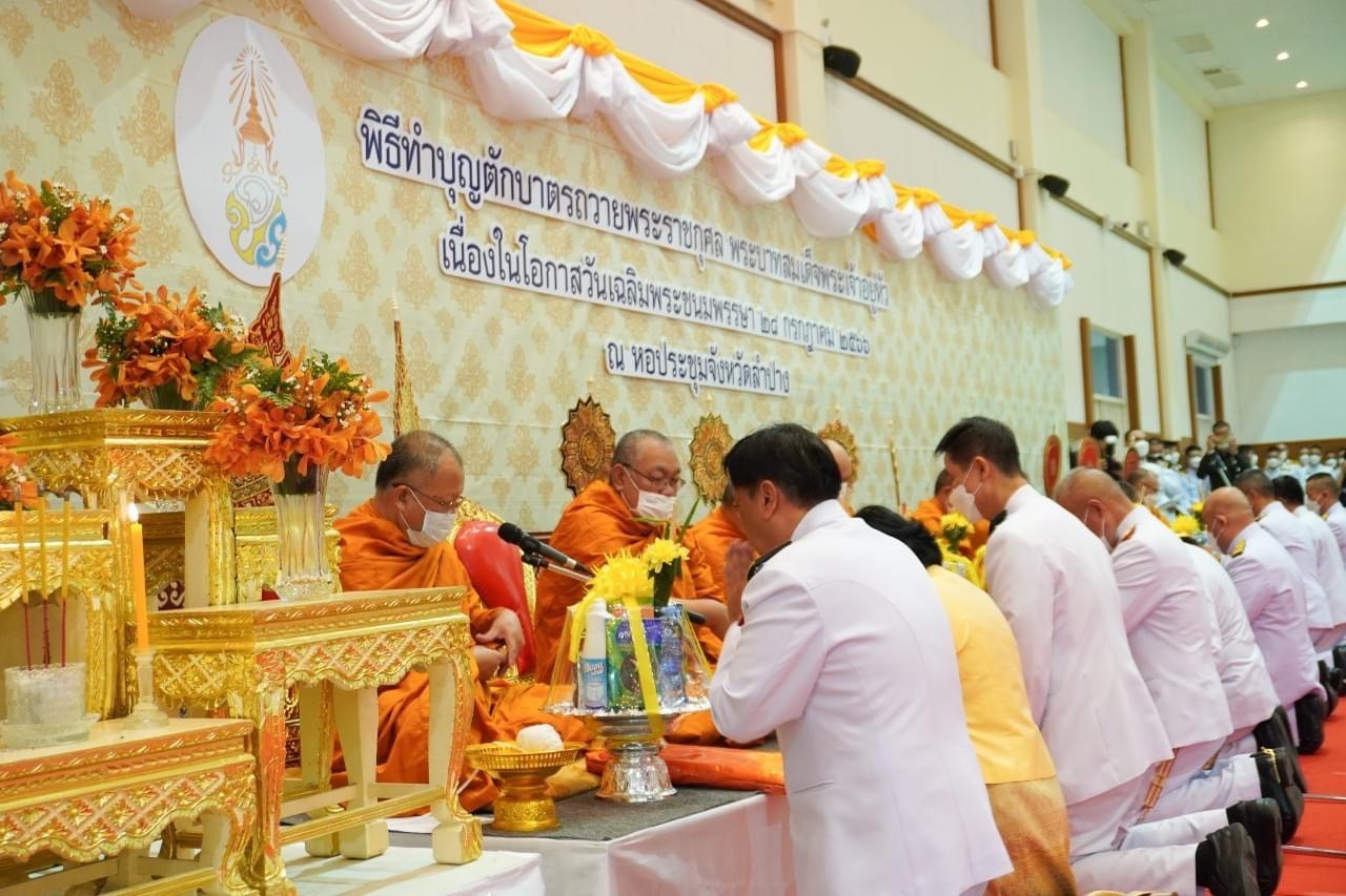 โดยมี นายชัชวาลย์ ฉายะบุตร ผู้ว่าราชการจังหวัดลำปางเป็นประธานในพิธีทำบุญตักบาตรฯเพื่อแสดงออกถึงความจงรักภักดีและน้อมสำนึกในพระมหากรุณาธิคุณอย่างหาที่สุดมิได้ ณ อาคารหอประชุมจังหวัดลำปาง