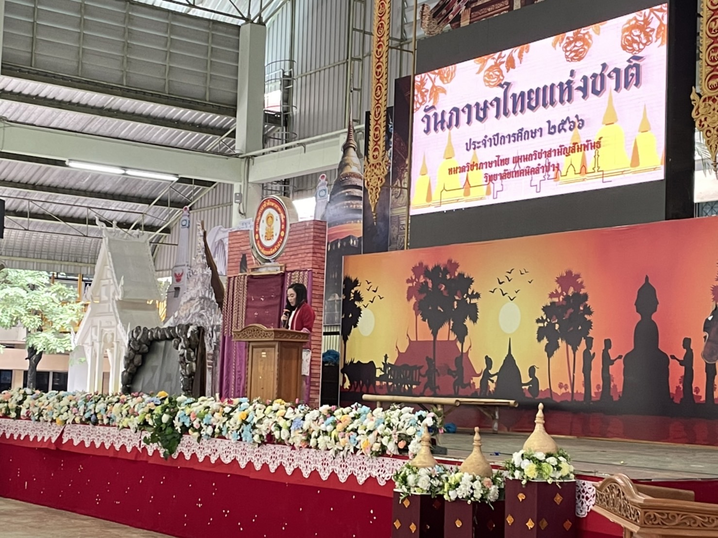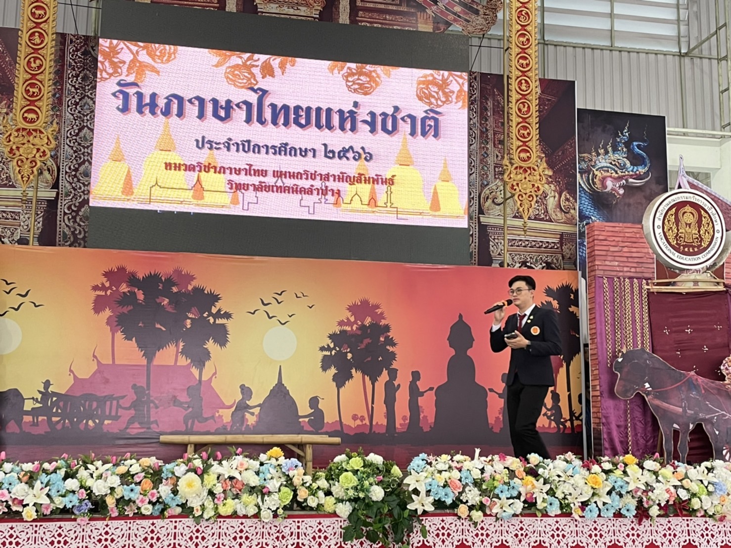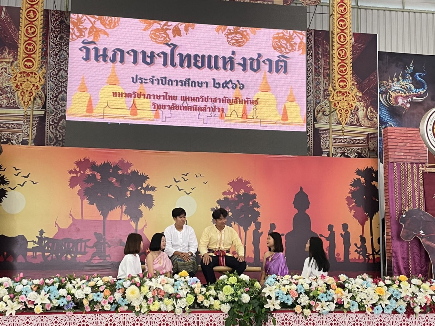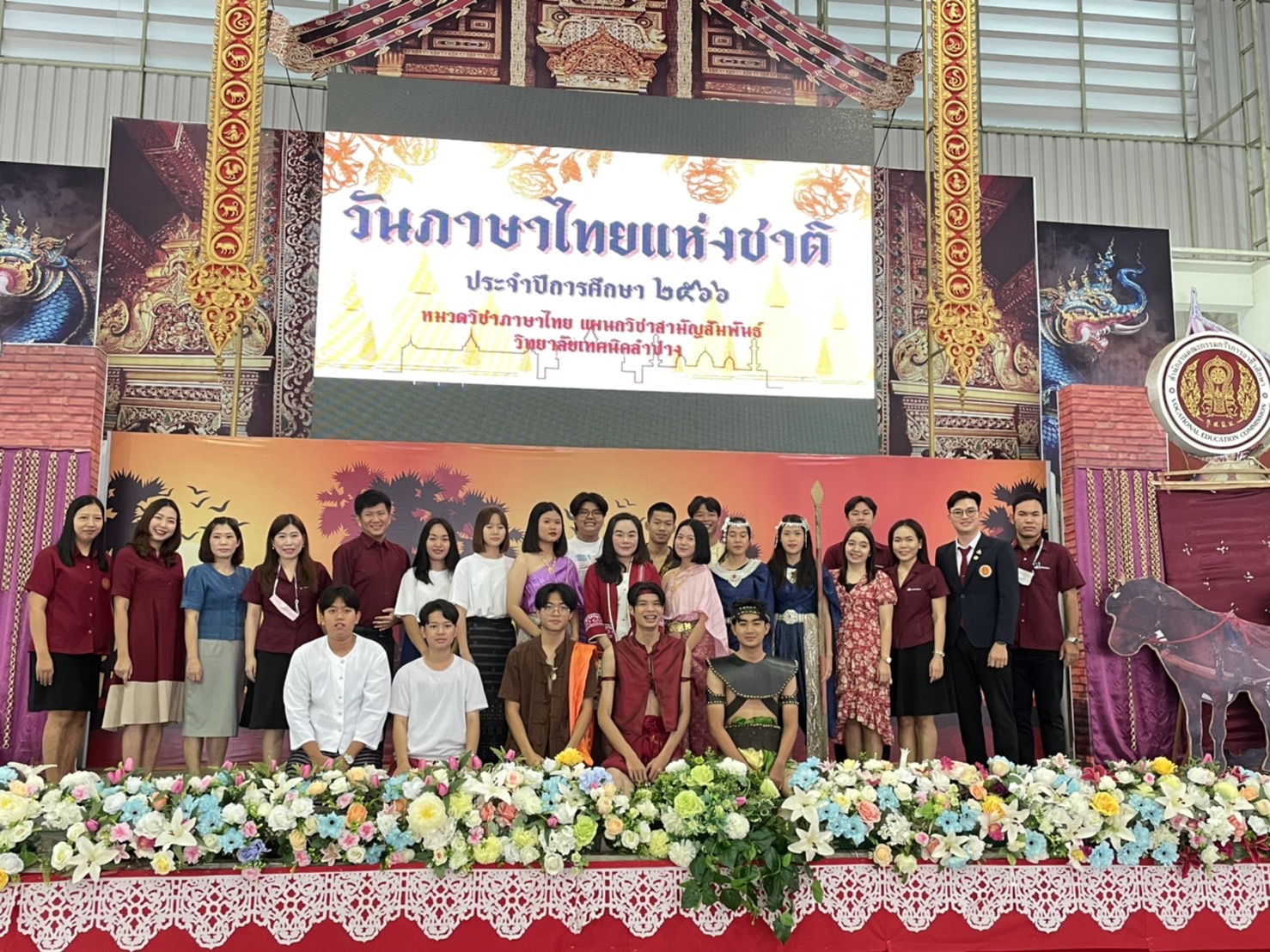 วันพุธที่9 สิงหาคม 2566เวลา 08.00น. หมวดวิชาภาษาไทยแผนกวิชาสามัญสัมพันธ์ วิทยาลัยเทคนิคลำปาง จัดกิจกรรมวันภาษาไทยแห่งชาติ ประจำปีการศึกษา 2566 โดยนายณัฐนนท์ ภู่อริยพงศ์ ผู้อำนวยการวิทยาลัยเทคนิคลำปาง มอบหมายให้นางสาวอรณี จริยา รองผู้อำนวยการฝ่ายวิชาการ เป็นประธานในการเปิดกิจกรรมฯ พร้อมมอบเกียรติบัตรให้กับนักเรียน นักศึกษา ที่ได้รับรางวัลในการร่วมการประกวดคัดลายมือ การเเข่งขันวาดภาพระบายสีตัวละครในวรรณคดีไทยและร่วมรับชมรับฟังการแสดงและการแสดงละครพื้นบ้านและการร้องเพลงในวรรณคดีไทย ในกิจกรรมวันภาษาไทย ของนักเรียนนักศึกษาวิทยาลัยเทคนิคลำปาง วัตถุประสงค์เพื่อ สืบสาน เชิดชู อนุรักษ์ การใช้ภาษาไทยให้ถูกต้อง และเปิดโอกาสให้ นักเรียน นักศึกษา ได้แสดงออกด้านความคิดสร้างสรรค์ รวมถึงการมีส่วนร่วมในการจัดกิจกรรม และเพื่อส่งเสริมให้ นักเรียน นักศึกษา สืบสานมรดกทางภาษาอันเป็นสมบัติของชาติ ณ อาคารอเนกประสงค์ 70 ปี วิทยาลัยเทคนิคลำปาง