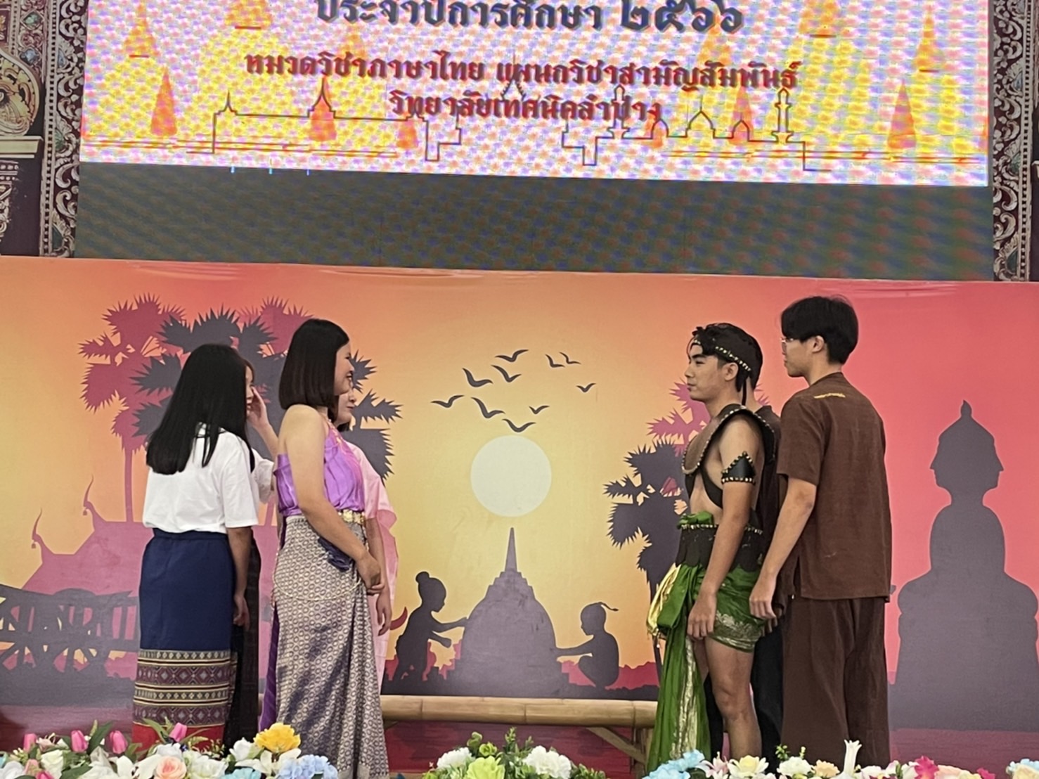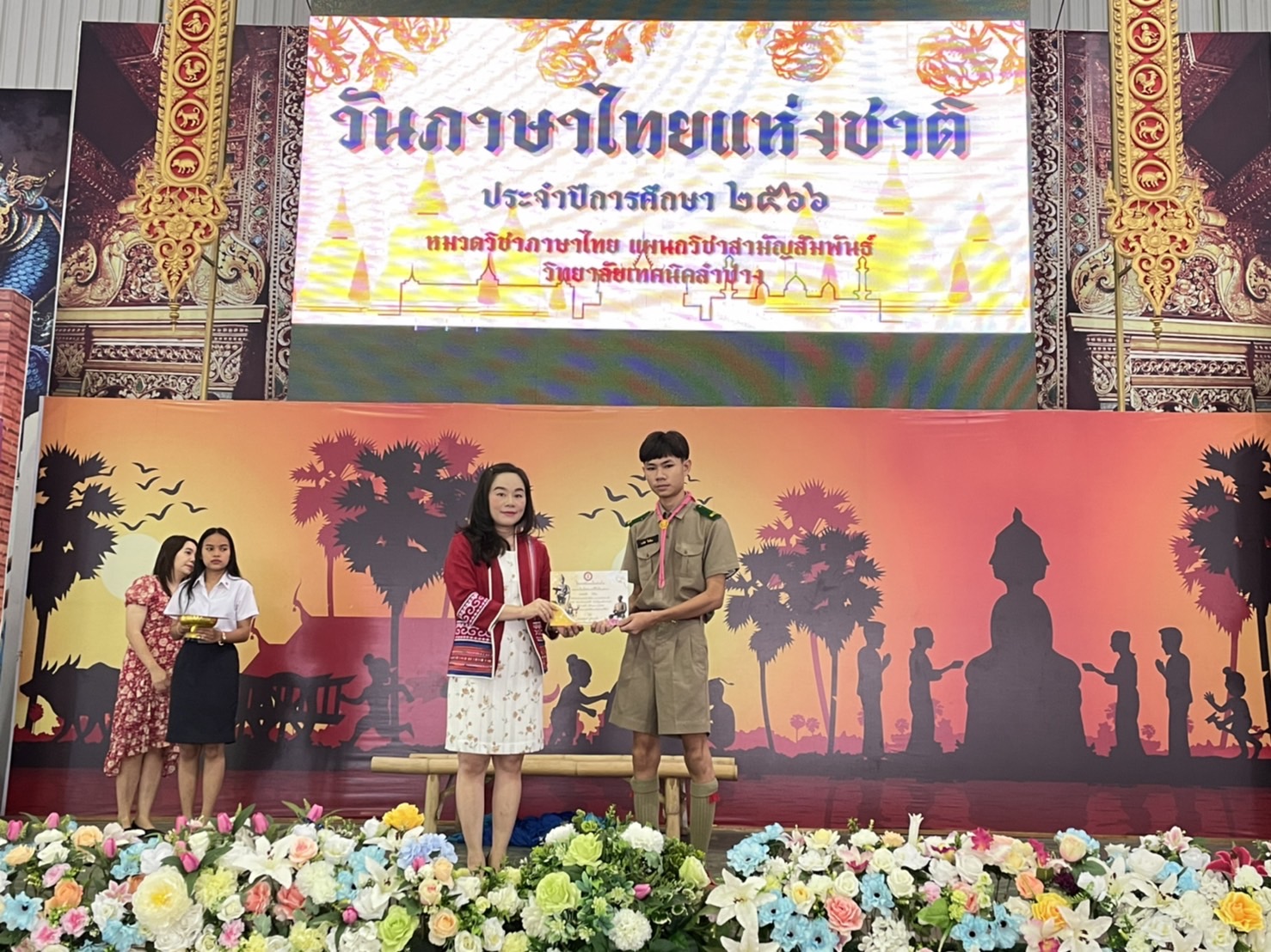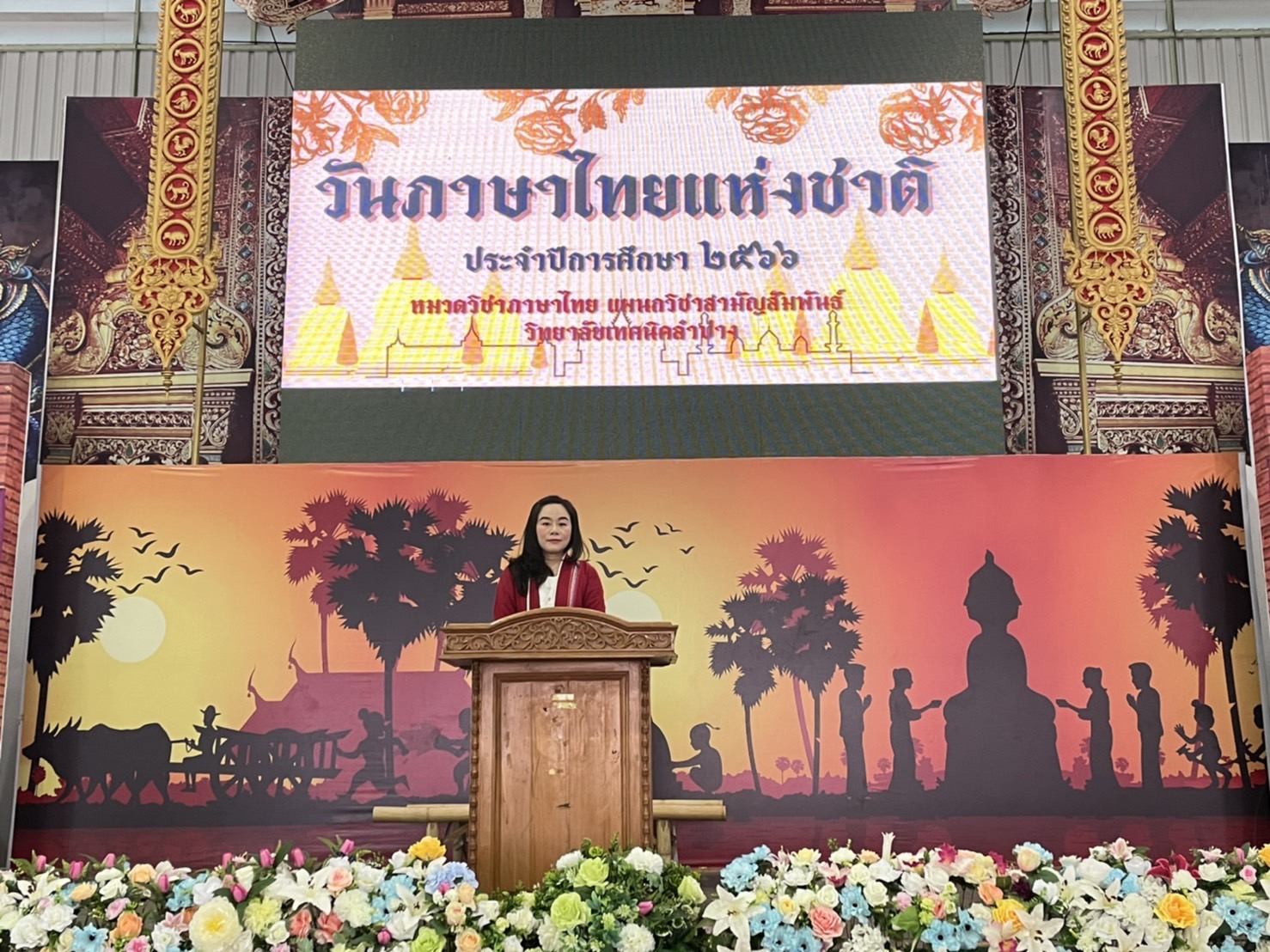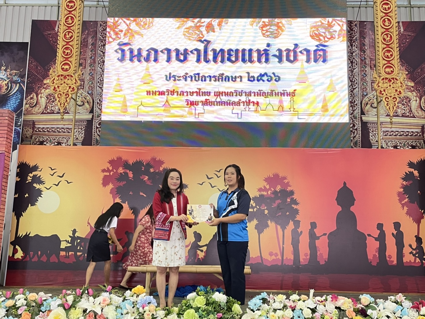 วันพุธที่9 สิงหาคม 2566เวลา 08.00น. หมวดวิชาภาษาไทยแผนกวิชาสามัญสัมพันธ์ วิทยาลัยเทคนิคลำปาง จัดกิจกรรมวันภาษาไทยแห่งชาติ ประจำปีการศึกษา 2566 โดยนายณัฐนนท์ ภู่อริยพงศ์ ผู้อำนวยการวิทยาลัยเทคนิคลำปาง มอบหมายให้นางสาวอรณี จริยา รองผู้อำนวยการฝ่ายวิชาการ เป็นประธานในการเปิดกิจกรรมฯ พร้อมมอบเกียรติบัตรให้กับนักเรียน นักศึกษา ที่ได้รับรางวัลในการร่วมการประกวดคัดลายมือ การเเข่งขันวาดภาพระบายสีตัวละครในวรรณคดีไทยและร่วมรับชมรับฟังการแสดงและการแสดงละครพื้นบ้านและการร้องเพลงในวรรณคดีไทย ในกิจกรรมวันภาษาไทย ของนักเรียนนักศึกษาวิทยาลัยเทคนิคลำปาง วัตถุประสงค์เพื่อ สืบสาน เชิดชู อนุรักษ์ การใช้ภาษาไทยให้ถูกต้อง และเปิดโอกาสให้ นักเรียน นักศึกษา ได้แสดงออกด้านความคิดสร้างสรรค์ รวมถึงการมีส่วนร่วมในการจัดกิจกรรม และเพื่อส่งเสริมให้ นักเรียน นักศึกษา สืบสานมรดกทางภาษาอันเป็นสมบัติของชาติ ณ อาคารอเนกประสงค์ 70 ปี วิทยาลัยเทคนิคลำปาง