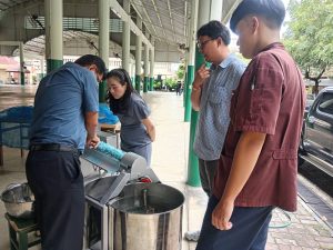 วันอังคารที่ 15 สิงหาคม 2566 งานวิจัยพัฒนานวัตกรรมและสิ่งประดิษฐ์ วิทยาลัยเทคนิคลำปาง นำโดย นางสาวอรณี จริยา รองผู้อำนวยการฝ่ายวิชาการ พร้อมด้วย นายสมศักดิ์ แข็งแรง หัวหน้างานวิจัยพัฒนานวัตกรรมและสิ่งประดิษฐ์ และนักศึกษาแผนกวิชาช่างยนต์ ได้นำผลงานวิชาโครงงาน” เครื่องขัดล้างเมล็ดกัญชงเพื่อลดสารTHCและCBD ” สาธิตและถ่ายทอดเทคโนโลยีและการใช้งานจริงกับเมล็ดกัญชง ให้กับ นายปิติพงษ์ หล้าวงษา ผู้จัดการ บริษัท เฮมพ์ไทย จำกัด ที่ผลิตและจำหน่ายผลิตแปรรูปจากกัญชง ตลอดจนถึงได้แลกเปลี่ยนเรียนรู้และรับโจทย์การสร้างนวัตกรรม เพื่อตอบสนองความต้องการของเกษตรในชุมชน ต่อไป ณ อาคารอเนกประสงค์ 70 ปี วิทยาลัยเทคนิคลำปาง