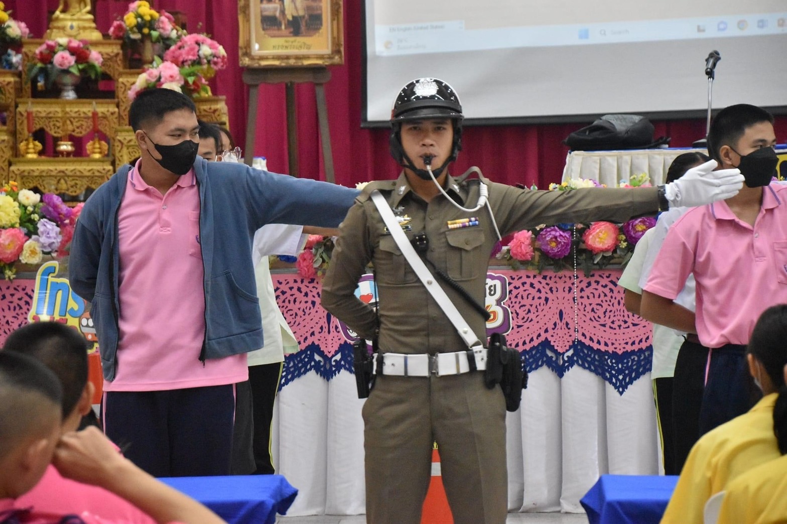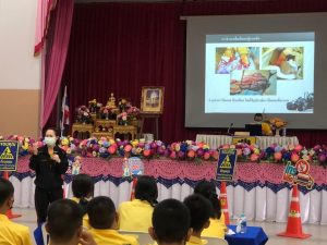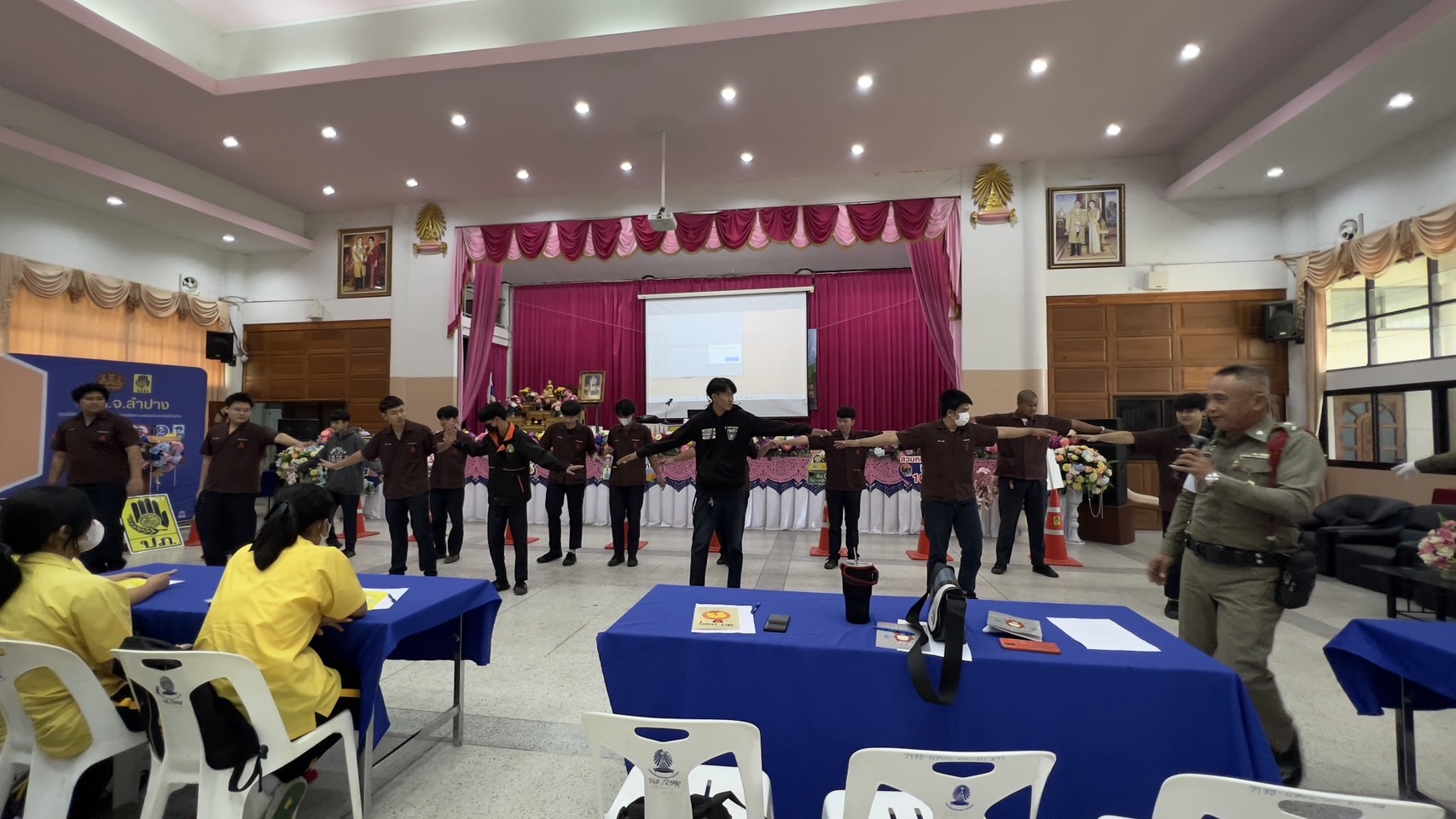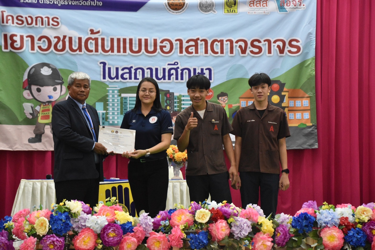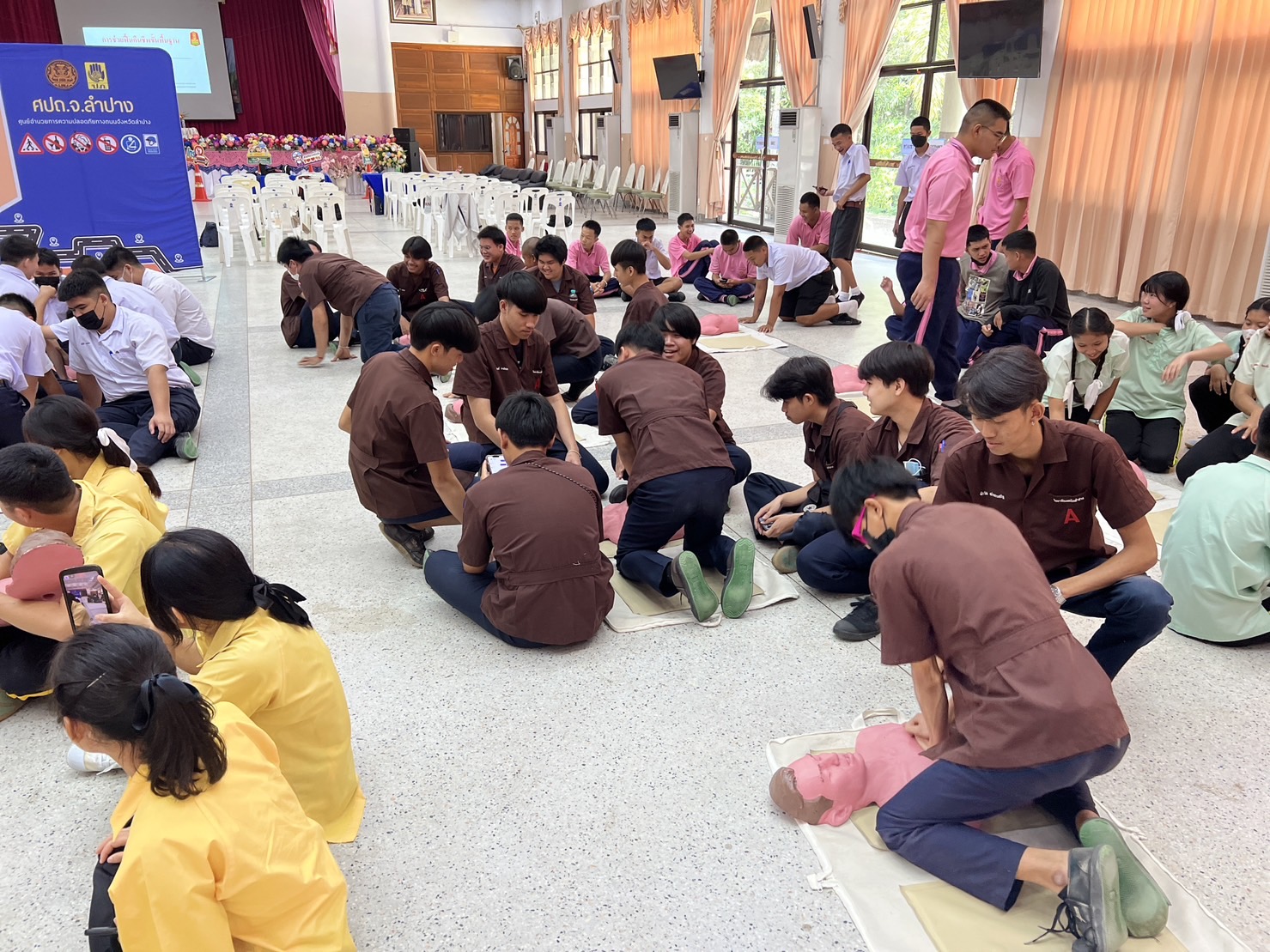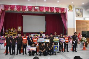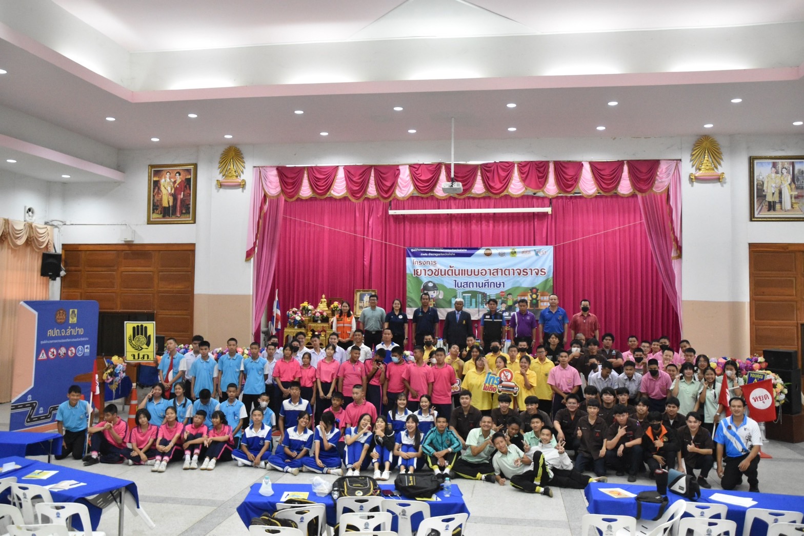วันพุธที่ 16 สิงหาคม 2566 งานกิจกรรมนักเรียนนักศึกษา ฝ่ายพัฒนากิจการนักเรียนนักศึกษา วิทยาลัยเทคนิคลำปาง นำนักเรียนนักศึกษา เข้าร่วมฝึกอบรมโครงการเยาวชนต้นแบบอาสาตาจราจร ในสถานศึกษา โดยมี นายชนาธิป เสมแย้ม รองผู้ว่าราชการจังหวัดลำปาง เป็นประธานในพิธีเปิดฯ ดำเนินการจัดกิจกรรมโดยศูนย์อำนวยการความปลอดภัยทางถนนจังหวัดลำปาง จัดเพื่อสร้างการรับรู้ กระตุ้นจิตสำนักด้านความปลอดภัยโดยเน้นการสวมหมวกนิรภัย 100% เพื่อลดการบาดเจ็บและเสียชีวิตจากอุบัติเหตุทางถนนและดำเนินการป้องกันและลดอุบัติเหตุทางถนนในพื้นที่จังหวัดลำปาง ทั้งนี้ การฝึกอบรมเป็นการบรรยายให้ความรู้ และฝึกปฏิบัติในเรื่อง กฎหมายจราจรทางบก , ท่าสัญญาณจราจร , ขั้นตอนการออกใบอนุญาตขับขี่รถ , การแจ้งเหตุและปฐมพยาบาลเบื้องต้น โดยได้รับการสนับสนุนคณะวิทยากร จากสถานีตำรวจภูธรเมืองลำปาง สำนักงานขนส่งจังหวัดลำปาง และโรงพยาบาลค่ายสุรศักดิ์มนตรี ณ หอประชุมพัฒนวิทย์ โรงเรียนเตรียมอุดมศึกษาพัฒนาการเขลางค์นคร อำเภอเมืองลำปาง จังหวัดลำปาง