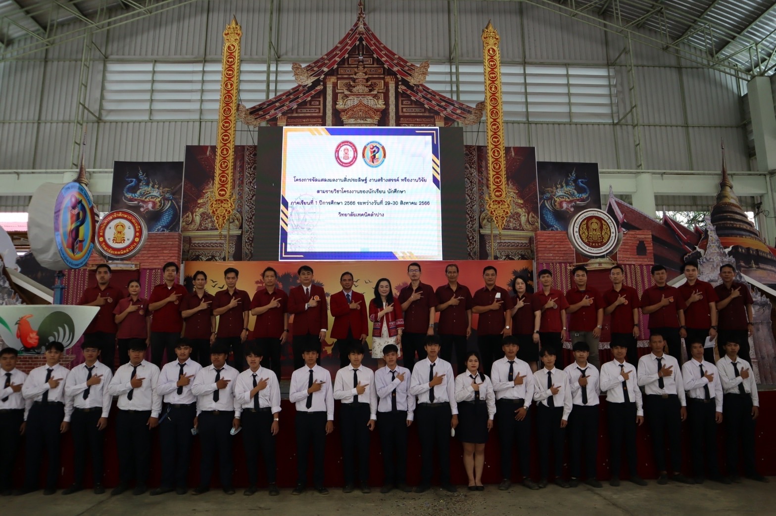 วันพุธที่ 30 สิงหาคม 2566 เวลา 09:00 น. งานวิจัยพัฒนานวัตกรรมและสิ่งประดิษฐ์ ฝ่ายแผนงานและความร่วมมือ วิทยาลัยเทคนิคลำปาง โดยนายณัฐนนท์ ภู่อริยพงศ์ ผู้อำนวยการวิทยาลัยเทคนิคลำปาง มอบหมายให้ ว่าที่ร้อยตรีสามารถ พุแพง รองผู้อำนวยการฝ่ายพัฒนากิจการนักเรียนนักศึกษา เป็นประธานในพิธี เปิดโครงการจัดแสดงผลงานสิ่งประดิษฐ์ สร้างสรรค์ หรืองานวิจัยตามรายวิชาโครงการของนักเรียน นักศึกษา ภาคเรียนที่ 1 ปีการศึกษา 2566 โดยมี นายธนพล ทิพย์กัญญานนท์รองผู้อำนวยการฝ่ายแผนงานและความร่วมมือเป็นผู้กล่าวรายงาน วัตถุประสงค์ เพื่อให้นักเรียน นักศึกษา ได้แลกเปลี่ยนความคิดด้านการจัดการโครงการสิ่งประดิษฐ์ งานสร้างสรรค์ หรืองานวิจัย ตลอดจนถึงเปิดโอกาสให้นักเรียน นักศึกษา ได้นำผลงานที่มีประโยชน์ มีคุณค่า มาเผยแพร่สอดคล้อง กับการประกันคุณภาพการศึกษา ณ อาคารอเนกประสงค์ 70 ปี วิทยาลัยเทคนิคลำปาง