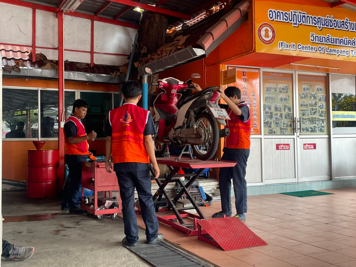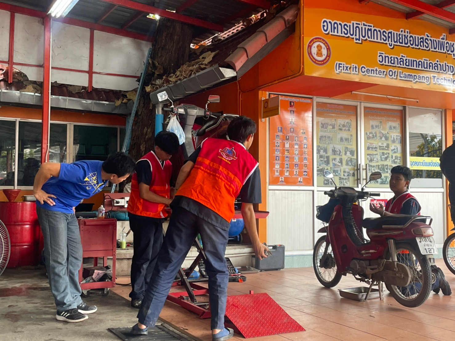 วันเสาร์ที่ 2 สิงหาคม 2566 เวลา 09.00 น. วิทยาลัยเทคนิคลำปาง คณะครู และนักเรียน นักศึกษา ได้ปฏิบัติงานโครงการบูรณาการการพัฒนาทักษะทางวิชาชีพกับการเสริมสร้างคุณลักษณะอันพึงประสงค์ของผู้เรียนอาชีวศึกษา(Fix it -จิตอาสา) ครั้งที่ 3 ปีงบประมาณ 2566 โดยบริการให้กับประชาชนซ่อมบำรุงเครื่องมือทางการเกษตร เปลี่ยนถ่ายน้ำมันเครื่องรถจักรยานยนต์ เครื่องใช้ไฟฟ้าในครัวเรือนและอุปกรณ์การประกอบอาชีพ ในระหว่างวันที่ 2 – 3 กันยายน 2566 ณ ศูนย์ซ่อมสร้างเพื่อชุมชนแบบถาวร(Fix it Center) วิทยาลัยเทคนิคลำปาง อำเภอเมือง จังหวัดลำปาง