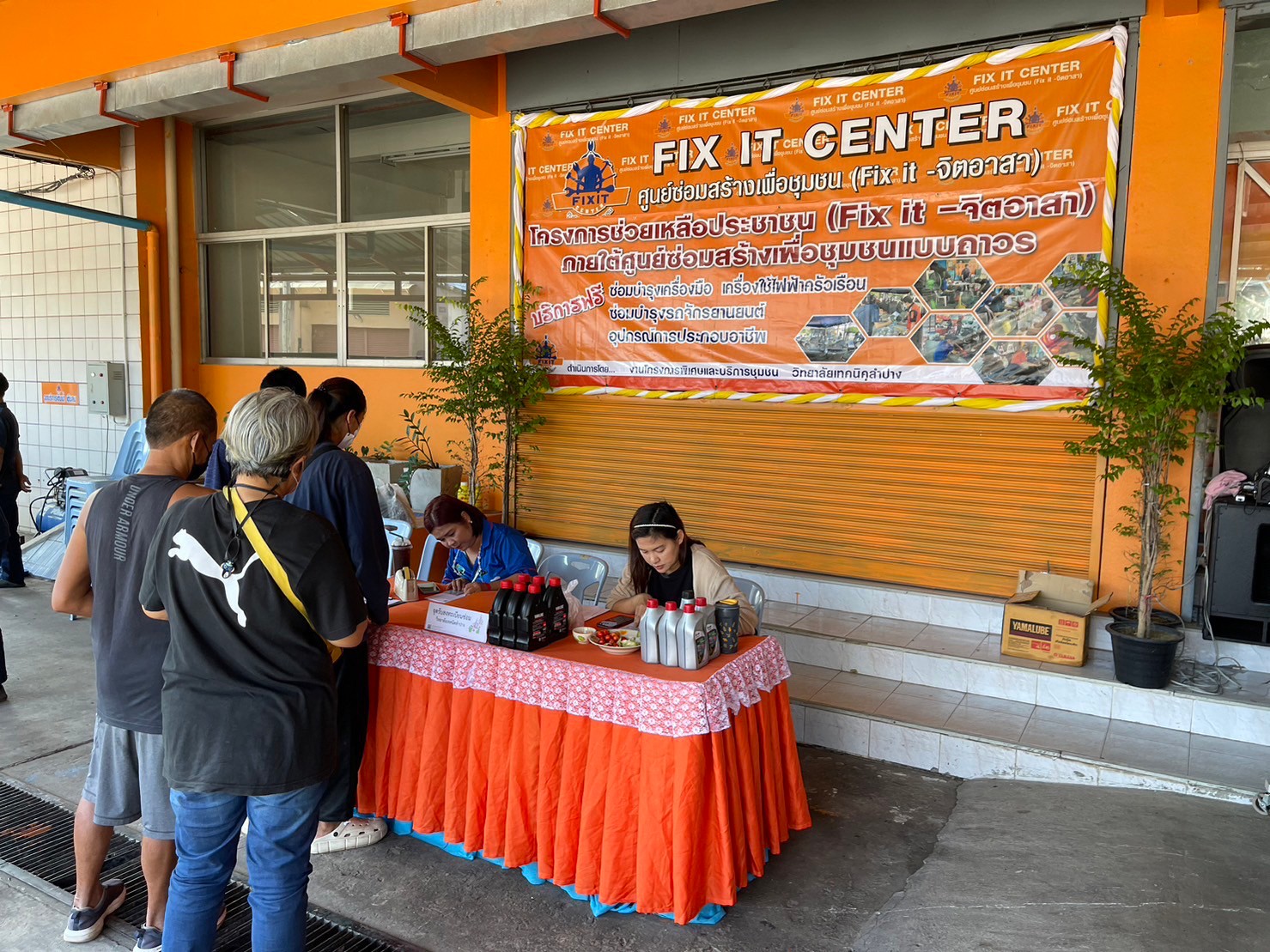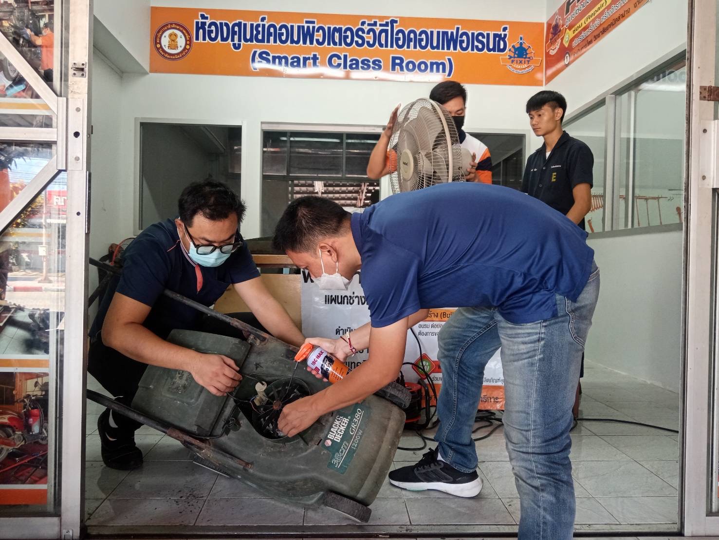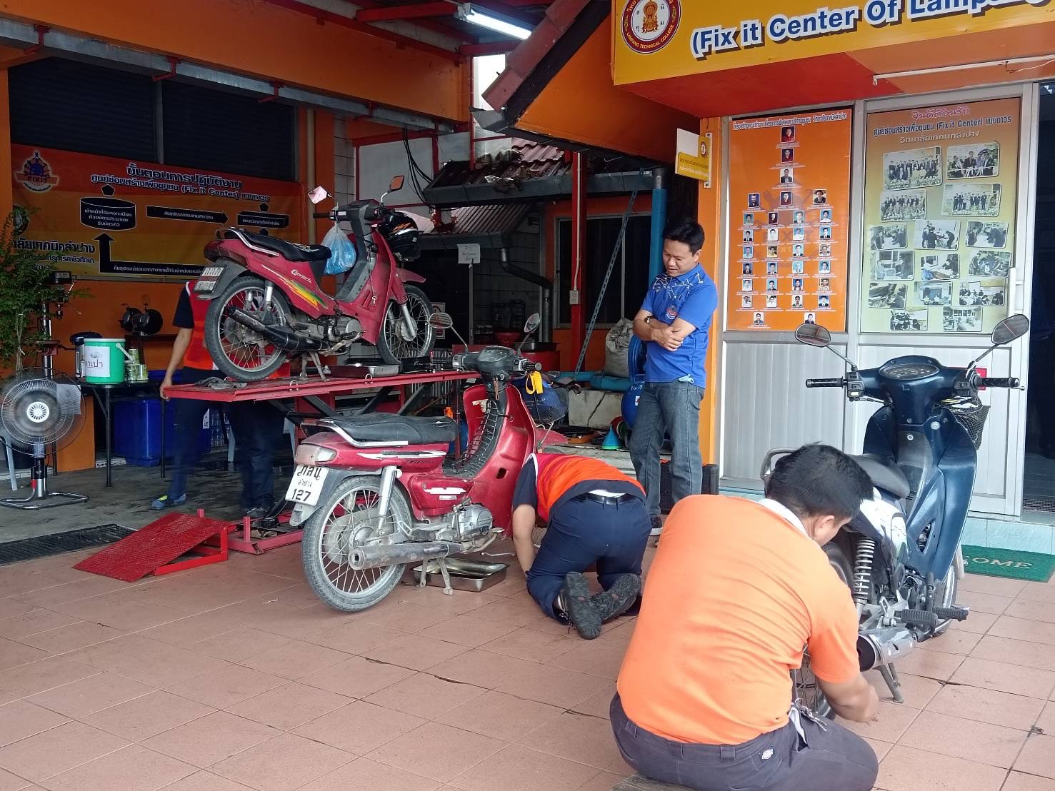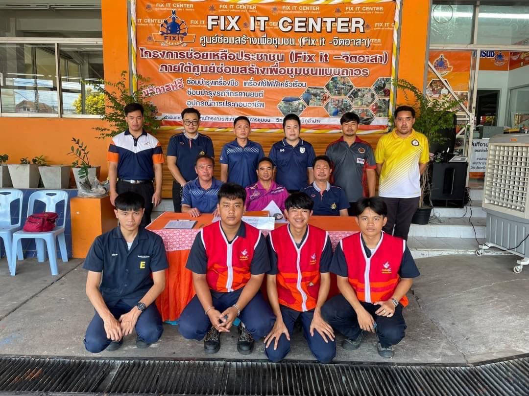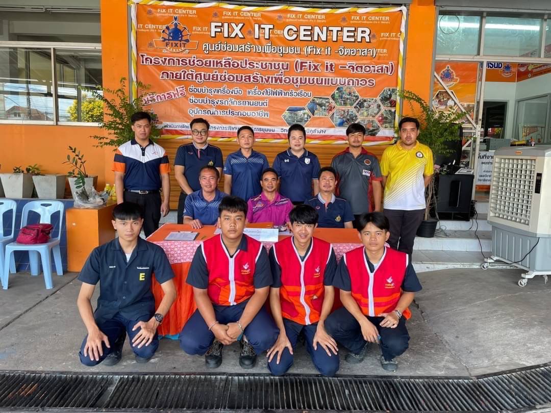วันอาทิตย์ที่ 3 กันยายน 2566 เวลา 10.00 น. วิทยาลัยเทคนิคลำปาง นำโดยว่าที่ร้อยตรีสามารถ พุแพง รองผู้อำนวยการฝ่ายพัฒนากิจการนักเรียนนักศึกษา พร้อมด้วย นายอธิวัฒน์ วงศ์ชมภู หัวหน้าแผนกวิชาสามัญสัมพันธ์ และนายณรงค์ บัวระกต หัวหน้างานโครงการพิเศษและบริการชุมชน ได้มาตรวจเยี่ยมให้กำลังใจคณะครู นักเรียนและ นักศึกษาที่มา ดำเนินโครงการช่วยเหลือประชาชน (Fix it -จิตอาสา) ครั้งที่ 3 ปีงบประมาณ 2566 ภายใต้ศูนย์ซ่อมสร้างเพื่อชุมชนแบบถาวร บริการให้กับประชาชนซ่อมบำรุงเครื่องมือ เปลี่ยนถ่ายน้ำมันเครื่องรถจักรยานยนต์ เครื่องใช้ไฟฟ้าในครัวเรือนและอุปกรณ์การประกอบอาชีพ ณ ศูนย์ซ่อมสร้างเพื่อชุมชนแบบถาวร (Fix it Center) วิทยาลัยเทคนิคลำปาง อำเภอเมือง จังหวัดลำปาง