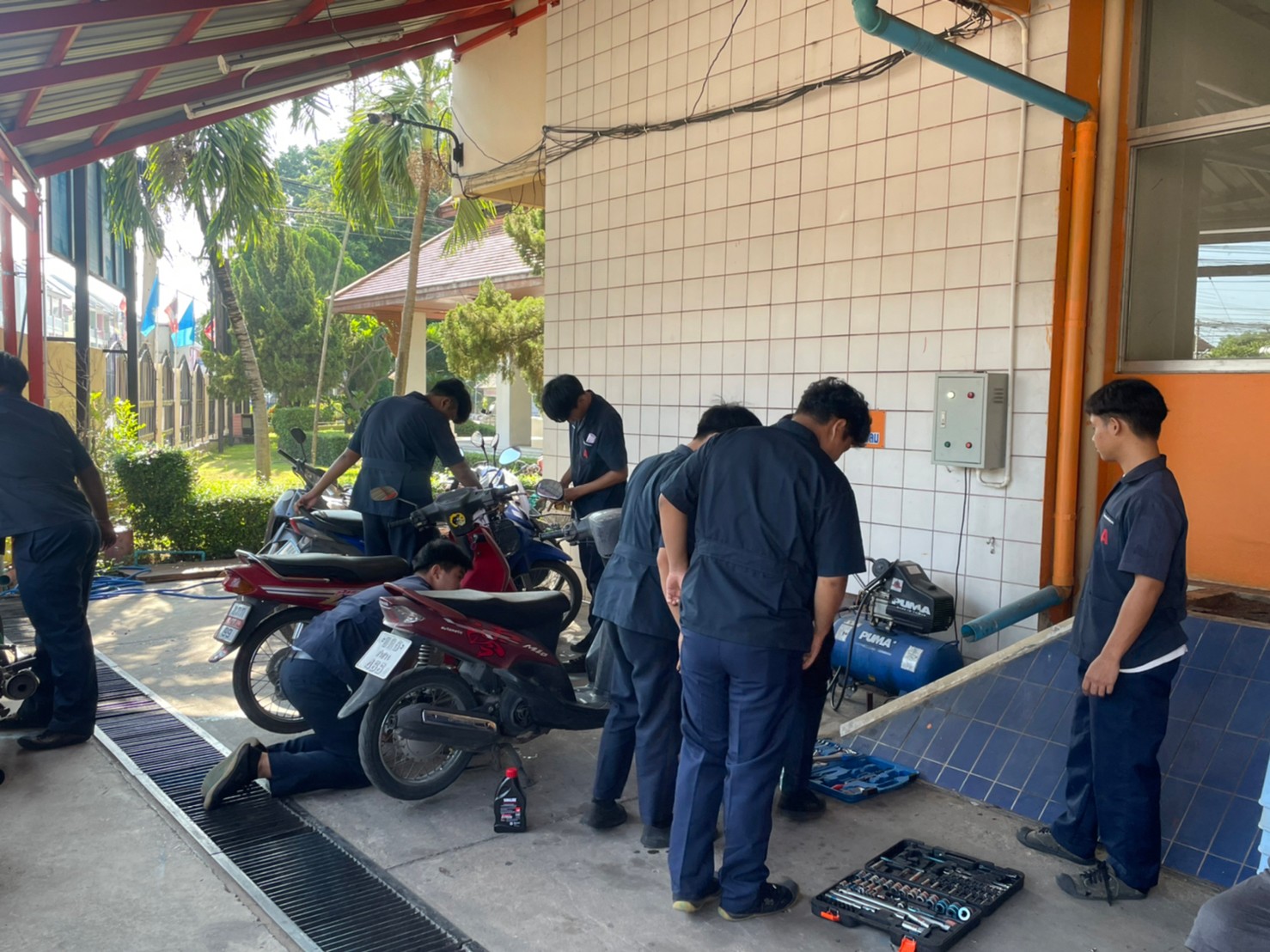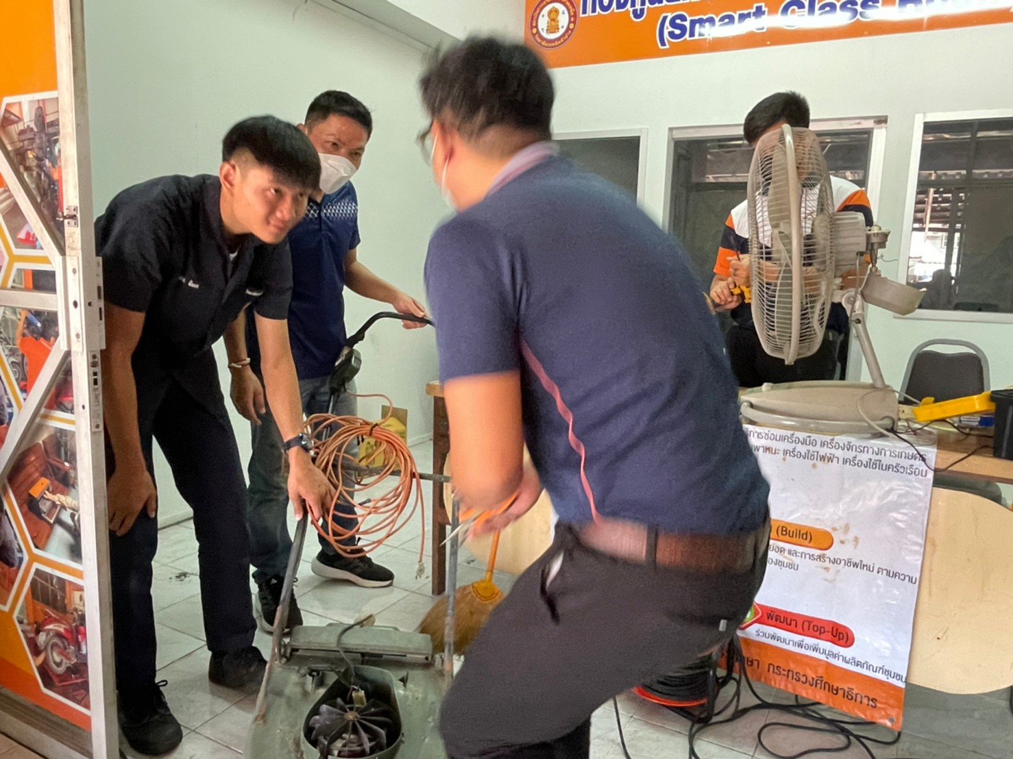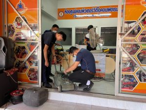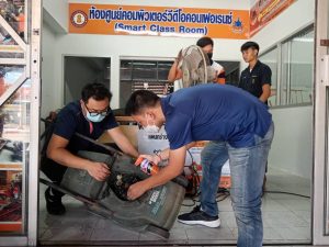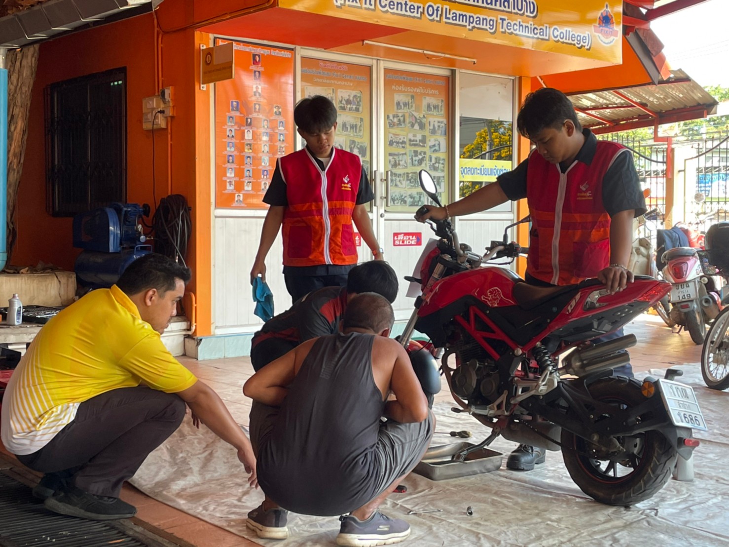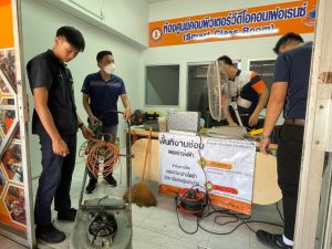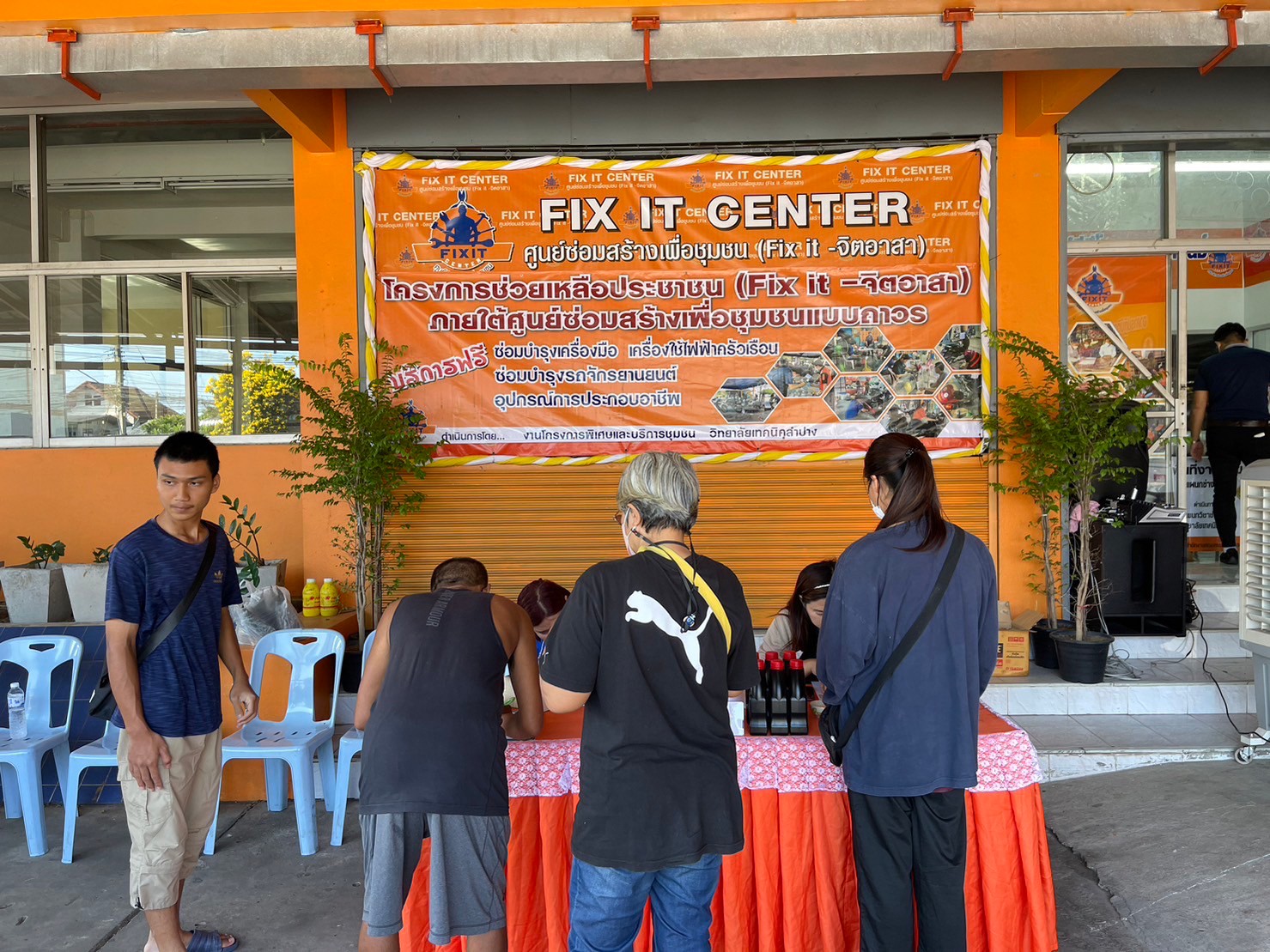 วันอาทิตย์ที่ 3 กันยายน 2566 เวลา 10.00 น. วิทยาลัยเทคนิคลำปาง นำโดยว่าที่ร้อยตรีสามารถ พุแพง รองผู้อำนวยการฝ่ายพัฒนากิจการนักเรียนนักศึกษา พร้อมด้วย นายอธิวัฒน์ วงศ์ชมภู หัวหน้าแผนกวิชาสามัญสัมพันธ์ และนายณรงค์ บัวระกต หัวหน้างานโครงการพิเศษและบริการชุมชน ได้มาตรวจเยี่ยมให้กำลังใจคณะครู นักเรียนและ นักศึกษาที่มา ดำเนินโครงการช่วยเหลือประชาชน (Fix it -จิตอาสา) ครั้งที่ 3 ปีงบประมาณ 2566 ภายใต้ศูนย์ซ่อมสร้างเพื่อชุมชนแบบถาวร บริการให้กับประชาชนซ่อมบำรุงเครื่องมือ เปลี่ยนถ่ายน้ำมันเครื่องรถจักรยานยนต์ เครื่องใช้ไฟฟ้าในครัวเรือนและอุปกรณ์การประกอบอาชีพ ณ ศูนย์ซ่อมสร้างเพื่อชุมชนแบบถาวร (Fix it Center) วิทยาลัยเทคนิคลำปาง อำเภอเมือง จังหวัดลำปาง