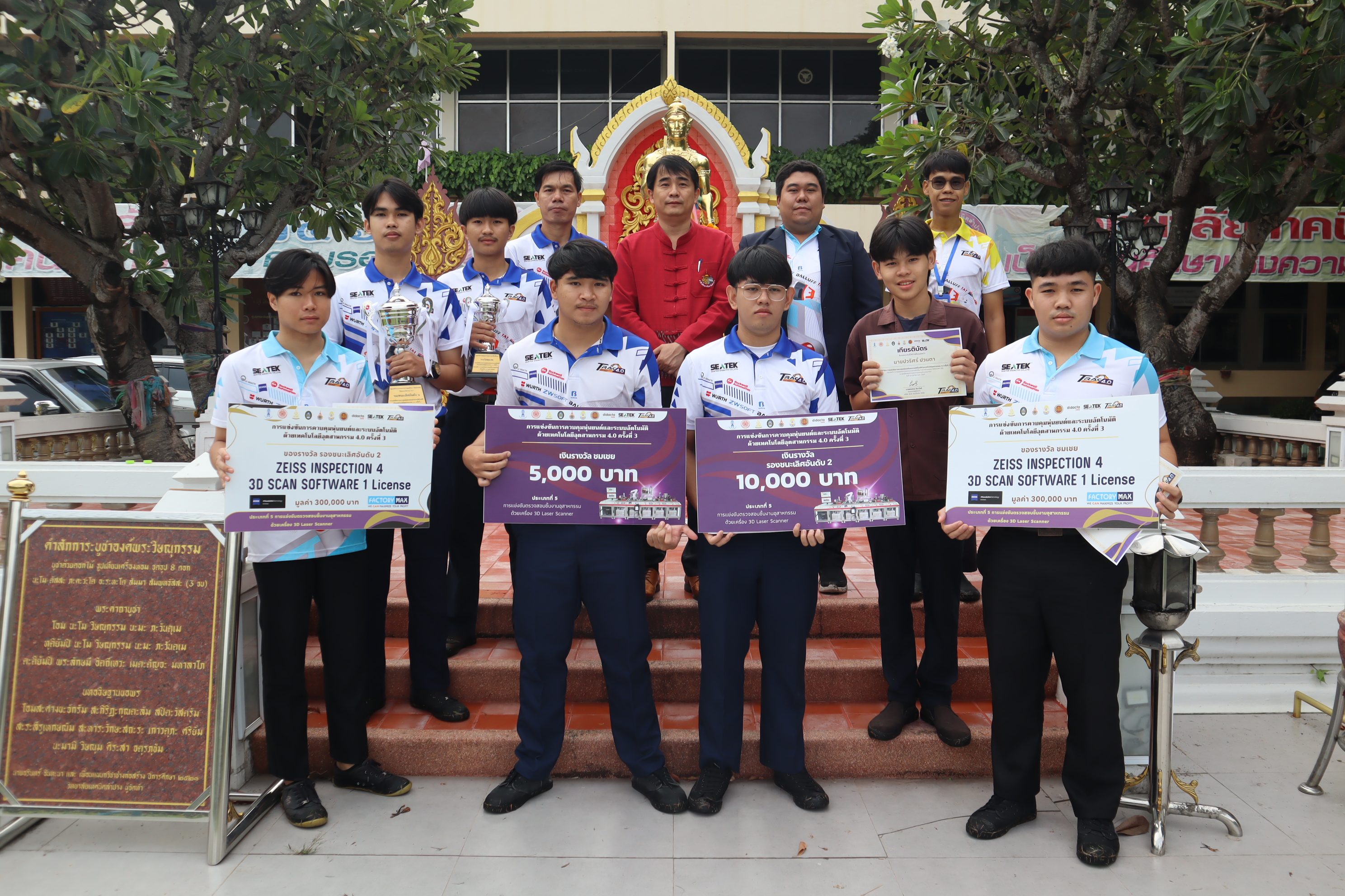 วันพุธ ที่ 13 พฤศจิกายน 2567 เวลา 08.10 น. วิทยาลัยเทคนิคลำปาง โดยนายณัฐนนท์ ภู่อริยพงศ์ ผู้อำนวยการวิทยาลัยเทคนิคลำปาง มอบหมายให้ว่าที่ร้อยตรีสามารถ พุแพง รองผู้อำนวยการฝ่ายพัฒนากิจการนักเรียน และนายธนพล ทิพย์กัญญานนท์ รองผู้อำนวยการฝ่ายแผนงานและความร่วมมือ มอบถ้วยรางวัลและเกียรติบัตร ให้แก่นักเรียน นักศึกษาที่ได้รับรางวัลการแข่งขันการควบคุมหุ่นยนต์และระบบอัตโนมัติด้วยเทคโนโลยีอุตสาหกรรม 4.0 ครั้งที่ 3 ชิงถ้วยพระราชทานสมเด็จพระกนิษฐาธิราชเจ้า กรมสมเด็จพระเทพรัตนราชสุดาฯ สยามบรมราชกุมารี ระหว่างวันที่ 16-18 ตุลาคม 2567 ณ ศูนย์นิทรรศการและการประชุมไบเทคบางนา ประเภทที่ 2 การแข่งขันการเขียนโปรแกรมควบคุมระบบการผลิตอัตโนมัติด้วยแกนไฟฟ้าทั้งระบบ ได้รับรางวัลชมเชย ผู้แข่งขัน ได้แก่