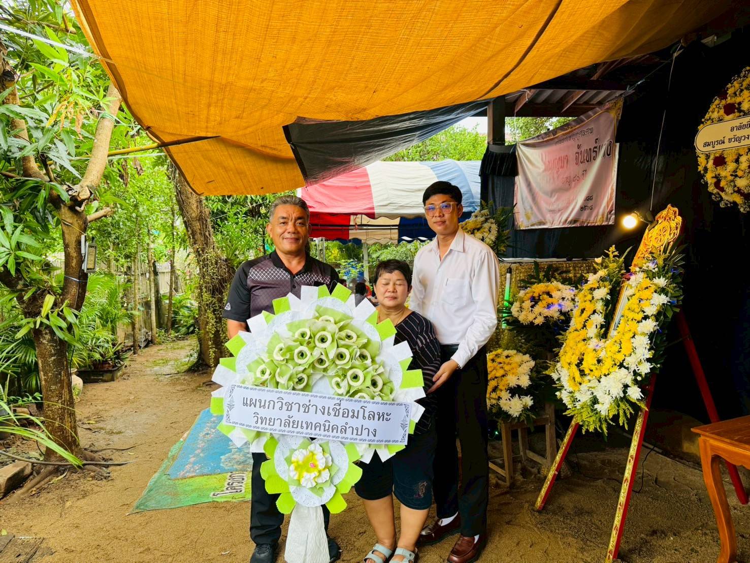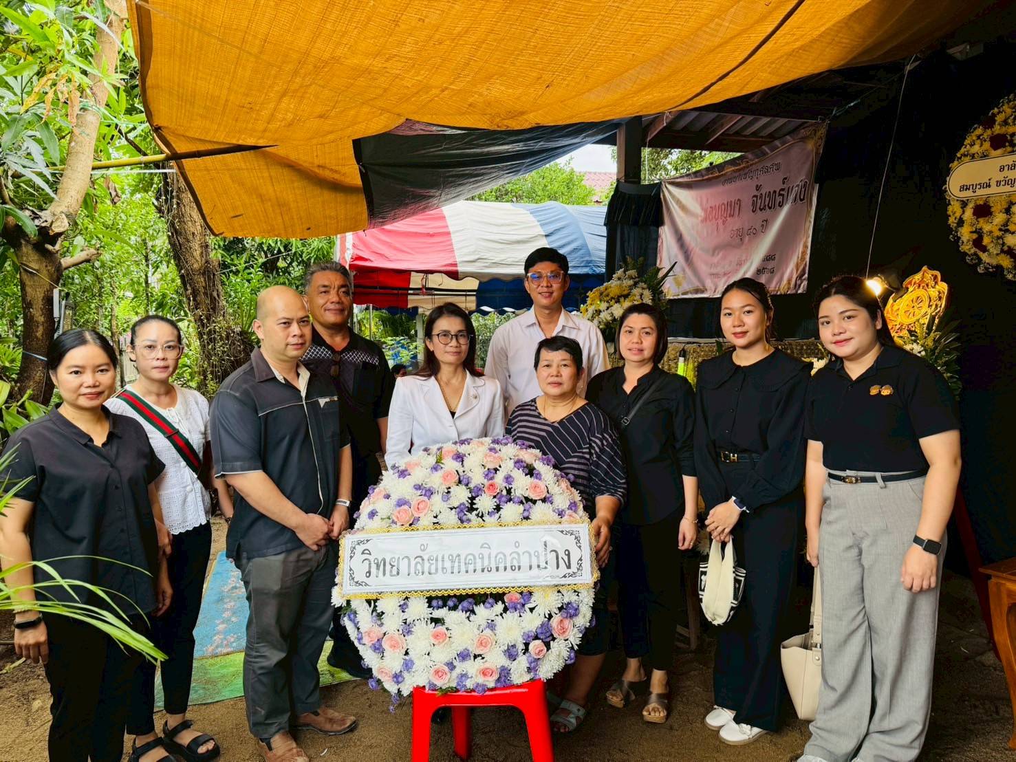 วันอังคาร ที่ 30 กันยายน 2568 นายณัฐนนท์ ภู่อริยพงศ์ ผู้อำนวยการวิทยาลัยเทคนิคลำปาง มอบหมายให้นางสาวพัชรีย์ สาระยิ่ง รองผู้อำนวยการฝ่ายแผนงานและความร่วมมือ พร้อมด้วยคณะครูแผนกวิชาช่างเชื่อม แผนกวิชาช่างก่อสร้าง โยธา และสถาปัตยกรรม และบุคลากรทางการศึกษา วิทยาลัยเทคนิคลำปาง นำพวงหรีดเคารพศพร่วมแสดงความเสียใจ ไว้อาลัย คุณพ่อบุญมา จันทรแสง บิดาของนางรัชนีวรรณ อินต๊ะเครือ เจ้าหน้าที่งานวัดผลและประเมินผล ได้ถึงแก่กรรม เมื่อวันที่ 29 กันยายน 2568 ตั้งบำเพ็ญกุศลและสวดพระอภิธรรมศพ ณ บ้านเลขที่ 42 บ้านท่าช้าง ต.แม่วะ อ.เถิน จ.ลำปาง และมีกำหนดฌาปนกิจศพ วันพฤหัสบดี ที่ 2 ตุลาคม 2568 ณ สุสานบ้านแม่วะหลวง ต.แม่วะ อ.เถิน จ.ลำปาง