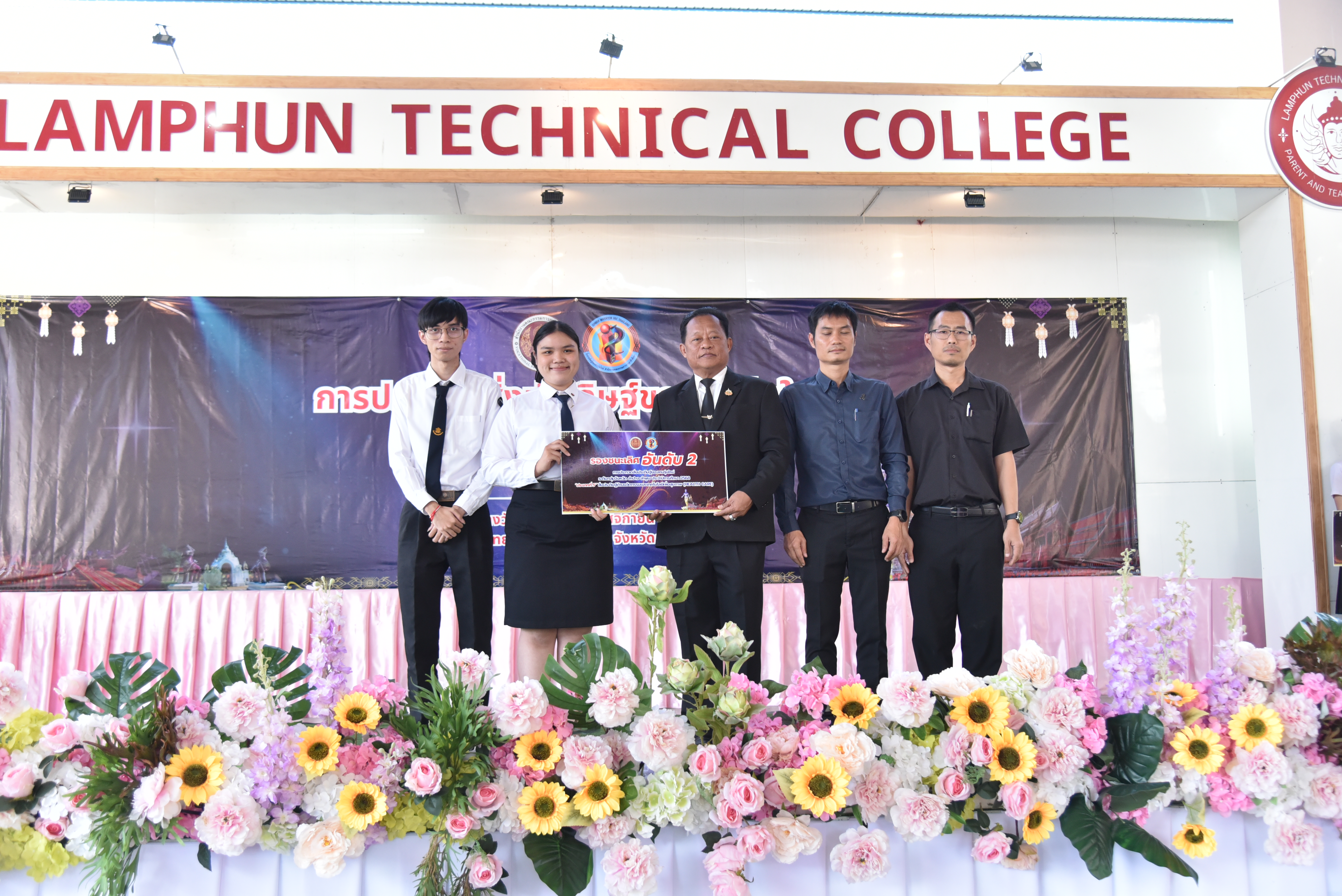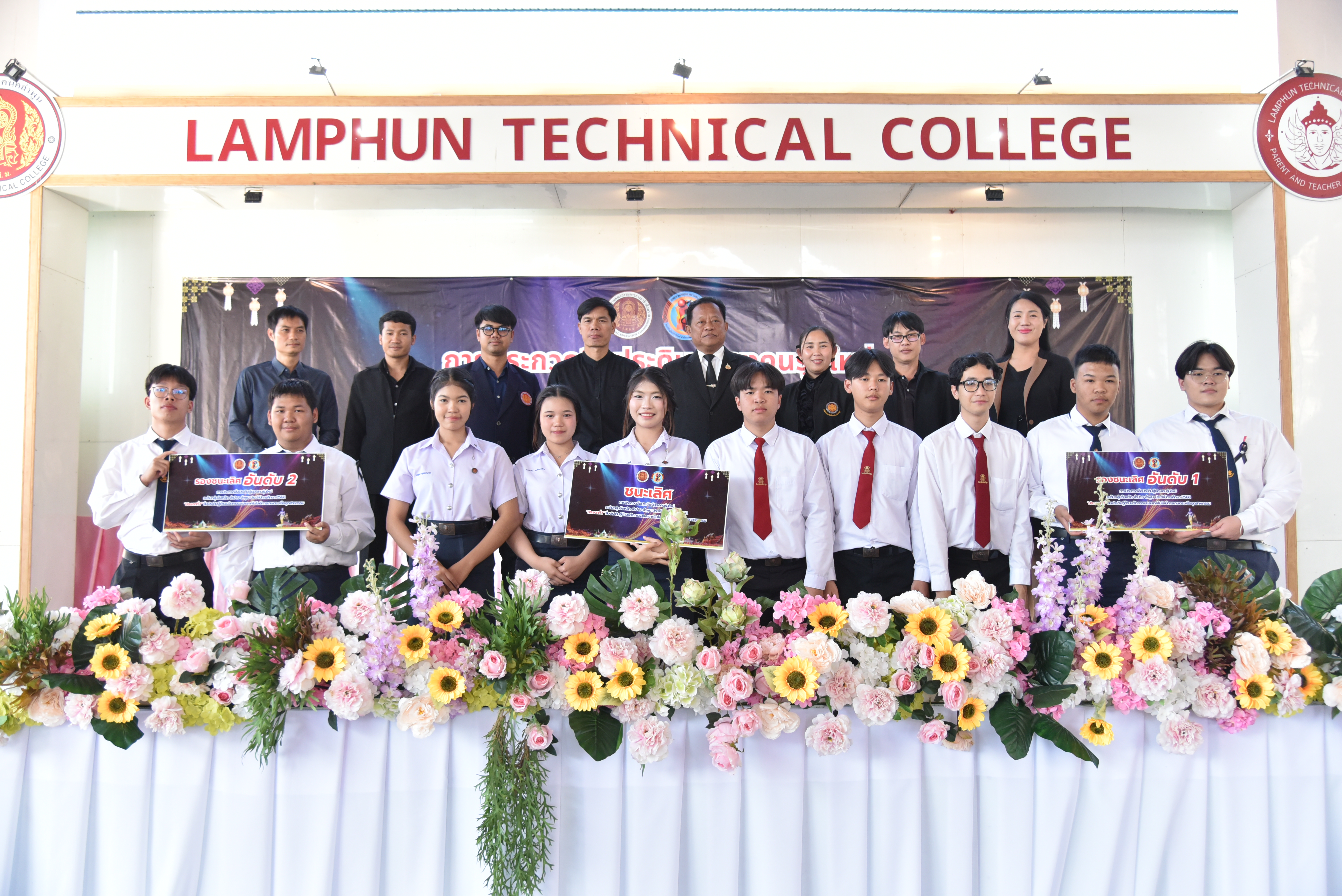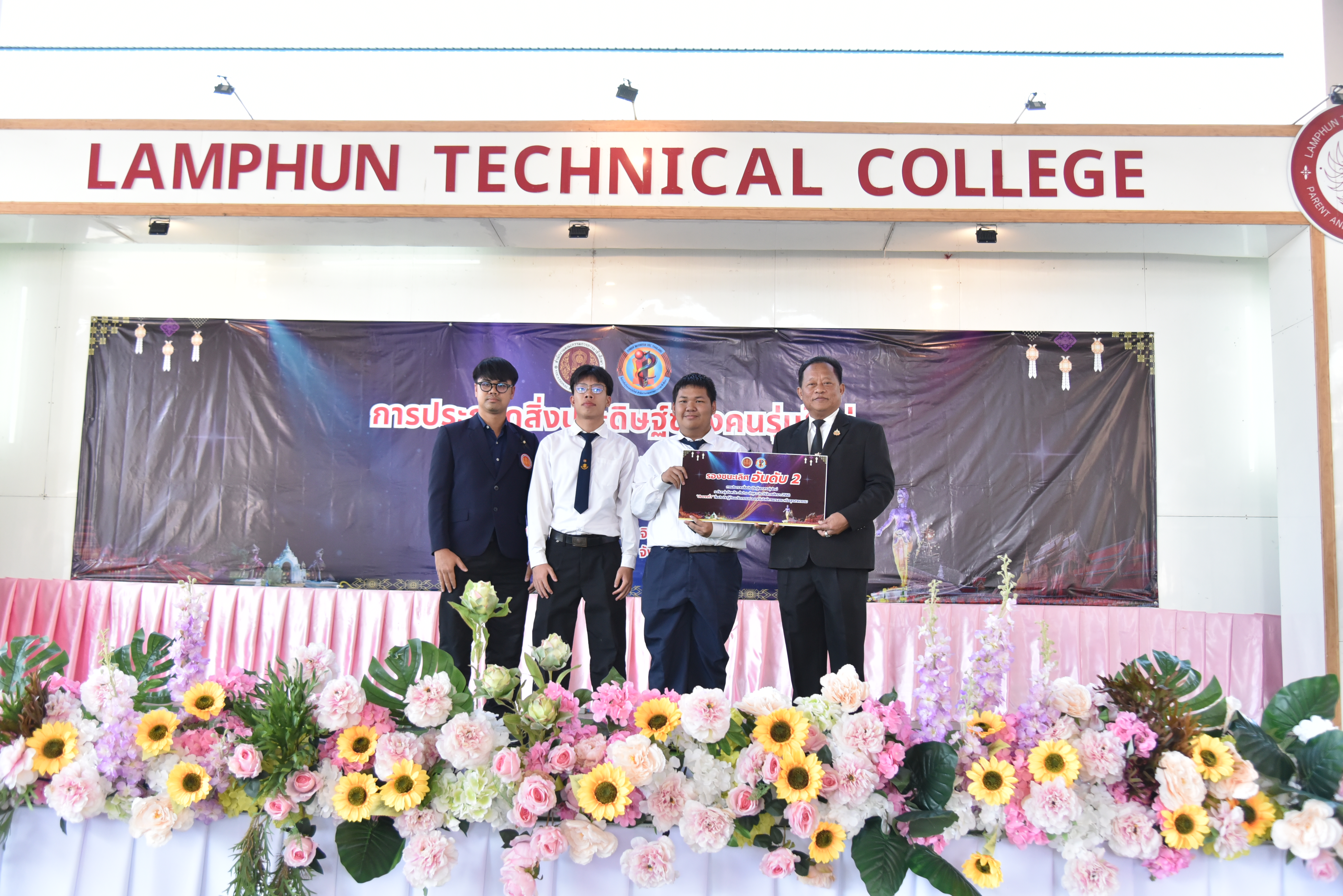 วันพฤหัสบดี ที่ 27 พฤศจิกายน 2568 นายณัฐนนท์ ภู่อริยพงศ์ ผู้อำนวยการวิทยาลัยเทคนิคลำปาง ปฏิบัติหน้าที่ผู้อำนวยการสำนักงานอาชีวศึกษาจังหวัดลำปาง เป็นประธานในพิธีมอบรางวัลการประกวดสิ่งประดิษฐ์ของคนรุ่นใหม่ ระดับกลุ่มจังหวัดลำปาง – ลำพูน ประจำปีการศึกษา 2568 ณ อาคารอเนกประสงค์ วิทยาลัยเทคนิคลำพูน โดยวิทยาลัยเทคนิคลำปาง ได้รับรางวัล ดังนี้