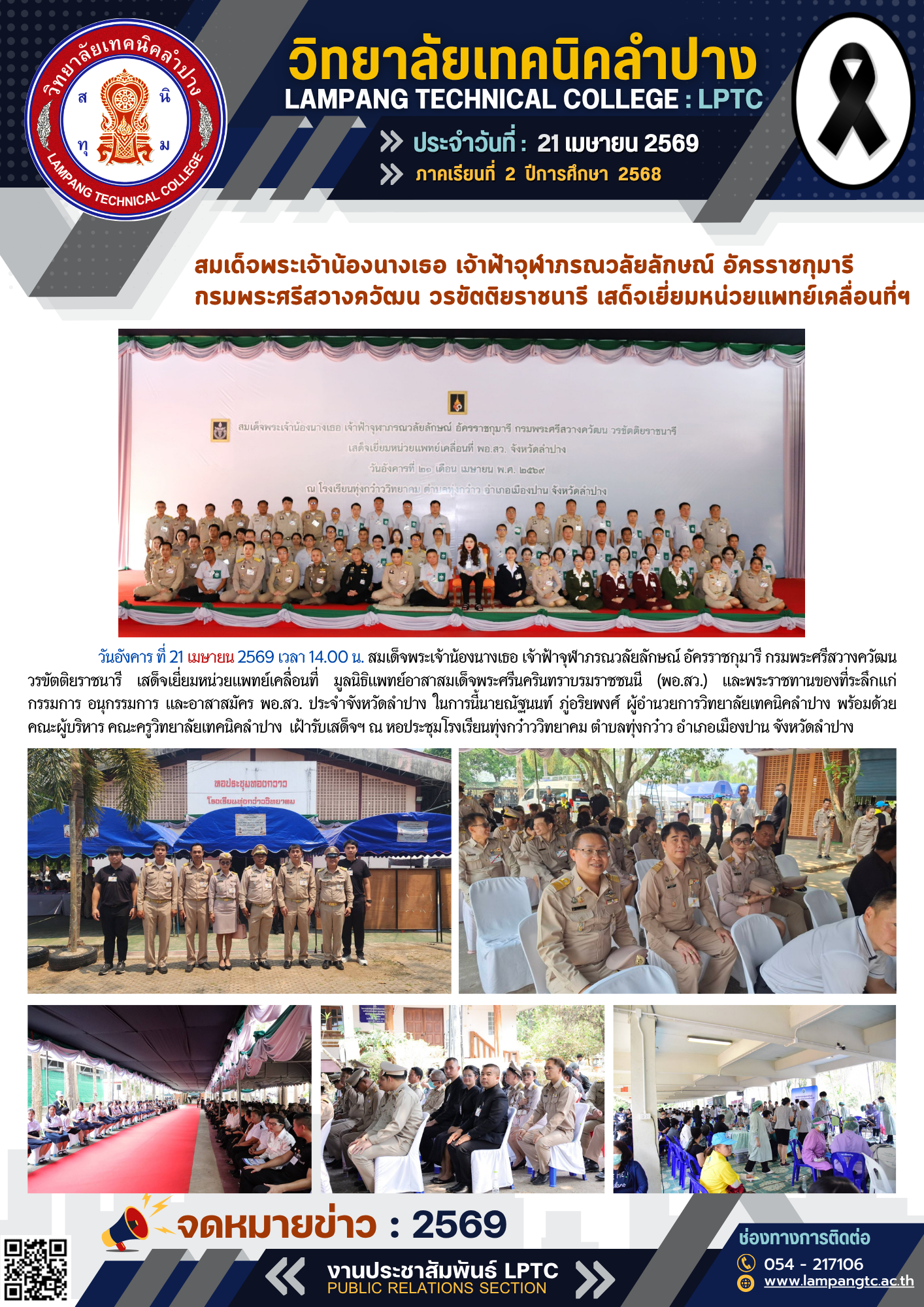 สมเด็จพระเจ้าน้องนางเธอ เจ้าฟ้าจุฬาภรณวลัยลักษณ์ อัครราชกุมารี กรมพระศรีสวางควัฒน วรขัตติยราชนารี เสด็จเยี่ยมหน่วยแพทย์เคลื่อนที่ฯ No ratings yet. 25 เมษายน 2569นางสาวกานต์พลู ธีระเชียจดหมายข่าว กรุณาให้คะแนนความพึงพอใจ ระดับความพึงพอใจ Post Views: 9 FacebookFacebookXXLINELine