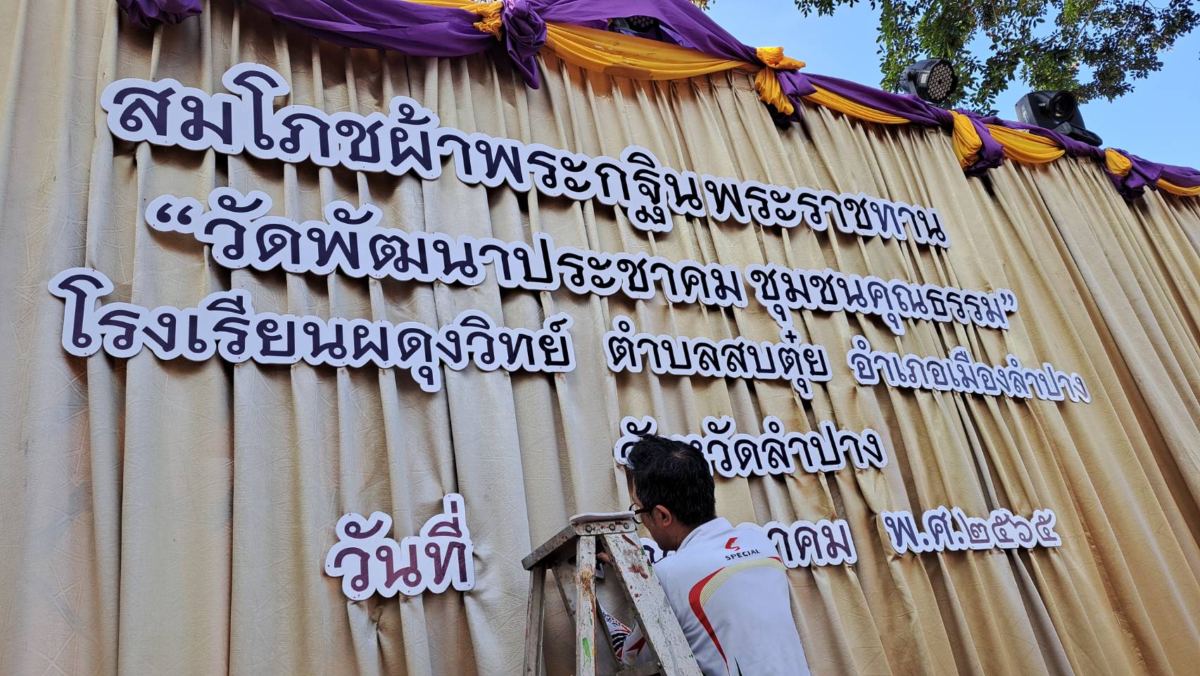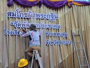 วันที่ 28 ตุลาคม 2665 นายณัฐนนท์ ภู่อริยพงศ์ ผู้อำนวยการวิทยาลัยเทคนิคลำปาง พร้อมด้วยว่าที่ร้อยตรีสามารถ พุแพง รองผู้อำนวยการฝ่ายพัฒนากิจการนักเรียนนักศึกษา นำคณะครู บุคลากร และนักเรียน นักศึกษา แผนกวิชาช่างไฟฟ้า แผนกอิเล็กทรอนิกส์ ร่วมสนับสนุนการจัดกิจกรรม ”วัดพัฒนาประชาคม ชุมชนคุณธรรม” สมโภชพระกฐิน และถวายผ้าพระกฐินพระราชทาน ในโครงการกฐินสร้างปัญญา โดย การช่วยจัดเตรียมเวทีสถานที่ เครื่องเสียง รวมถึงระบบไฟฟ้าและแสงสว่างภายในงาน ณ โรงเรียนผดุงวิทย์ (วัดศรีบุญเรือง) จังหวัดลำปาง