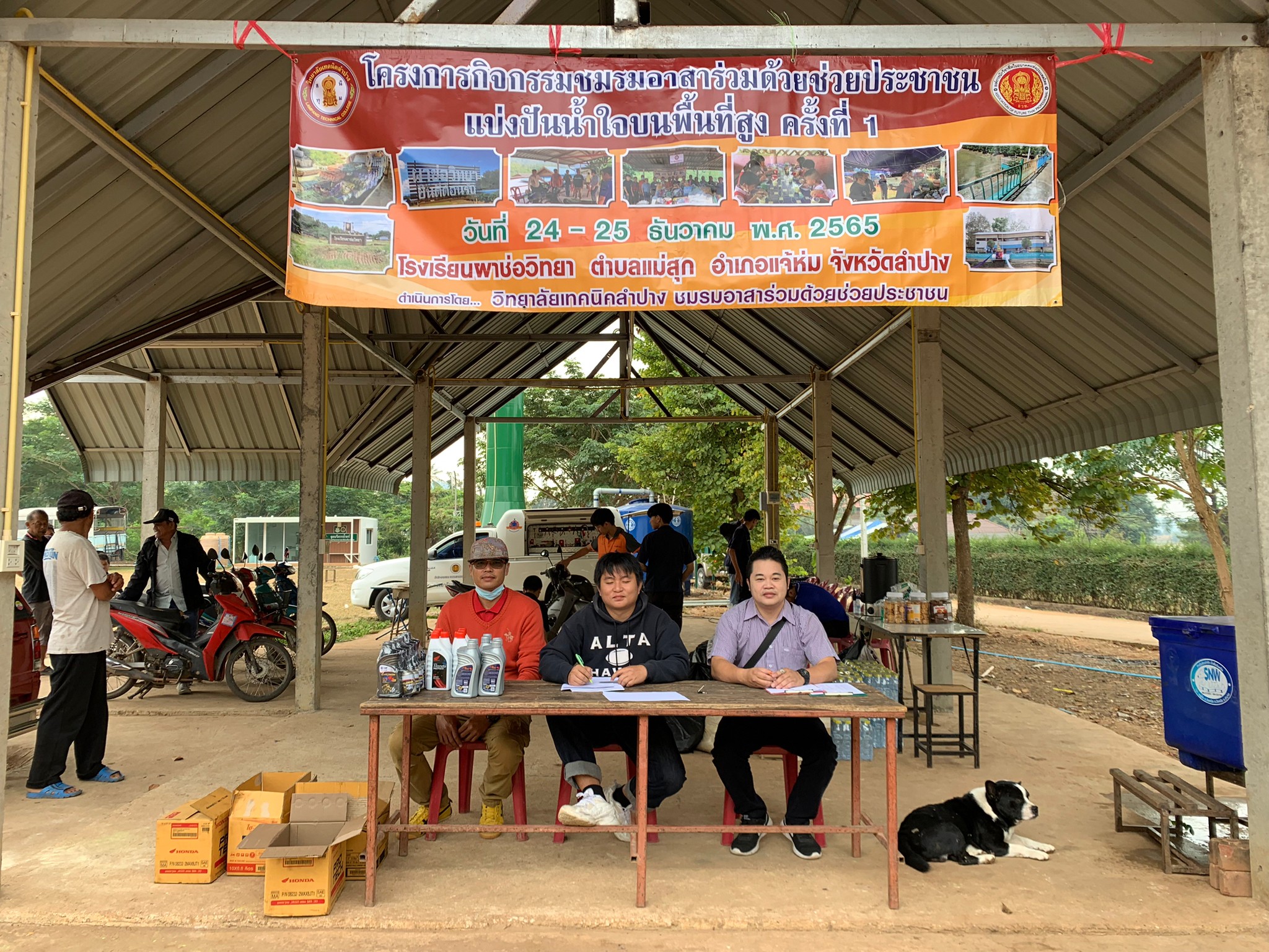 ระหว่างวันที่ 24 – 25 ธันวาคม 2565 วิทยาลัยเทคนิคลำปาง โดยชมรมอาสาร่วมด้วยช่วยประชาชน ได้จัดกิจกรรมชมรมอาสา ร่วมด้วยช่วยประชาชน แบ่งปันน้ำใจบนพื้นที่สูง ครั้งที่ 1 โดยมีวัตุประสงค์ช่วยเหลือเด็กๆ นักเรียน ที่ต้องใช้ชีวิตอย่าง ลำบาก และยากจนขาดอุปกรณ์การเรียน และพัฒนาสิ่งแวดล้อมภายในโรงเรียน เช่น เปลี่ยนถ่ายน้ำมันเครื่องรถจักรยานยนต์ ทาสีป้ายและเสาธง ซึ่งเป็นการสร้างจิตอาสารู้จักเสียสละเพื่อสังคม และสร้างคุณงามความดีให้แก่ตนเอง ณ โรงเรียนผาช่อวิทยา ตำบลแม่สุก อำเภอแจ้ห่ม จังหวัด ลำปาง