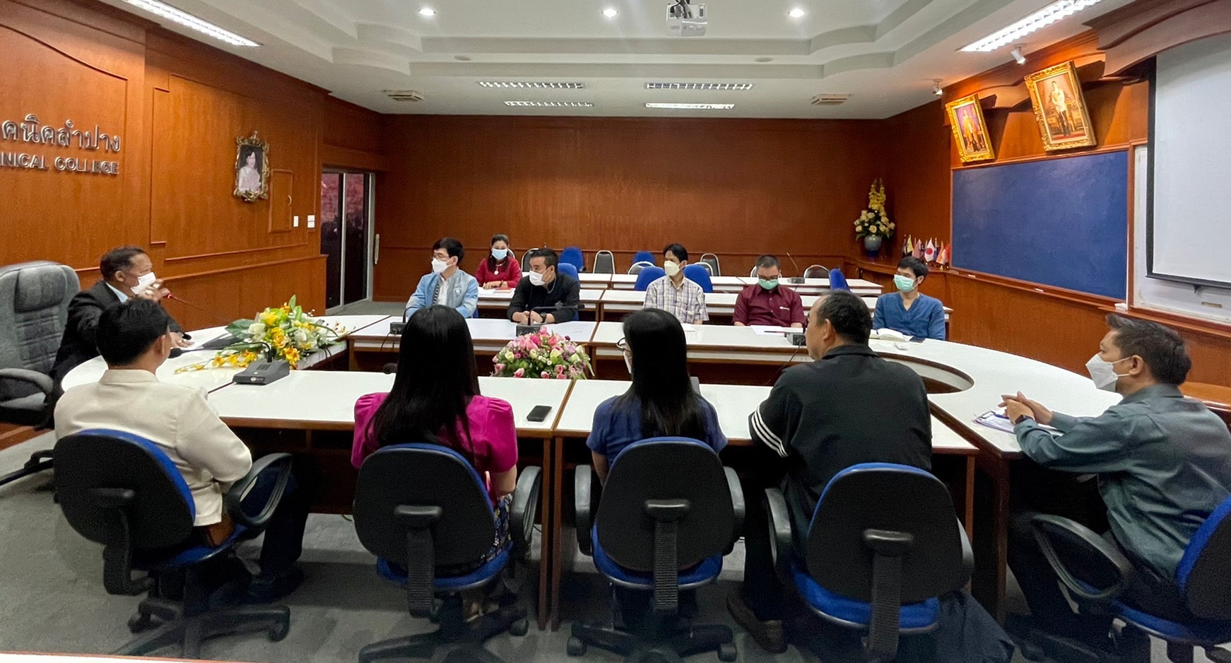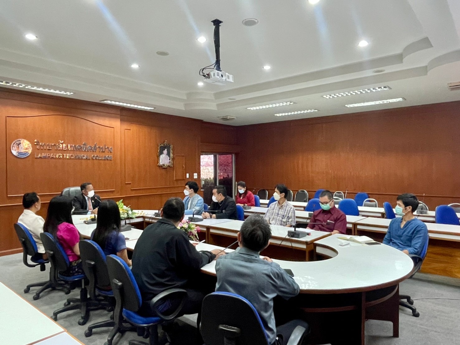 วันศุกร์ที่ 27 มกราคม 2566 เวลา 10.00 น. นายณัฐนนท์ ภู่อริยพงศ์ ผู้อำนวยการวิทยาลัยเทคนิคลำปาง พร้อมด้วย ว่าที่ร้อยตรีสามารถ พุแพง รองผู้อำนวยการฝ่ายพัฒนากิจการนักเรียนนักศึกษา นางสาวพัชรีย์ สาระยิ่ง รองผู้อำนวยการฝ่ายแผนงานและความร่วมมือ นางสาวอรณี จริยา รองผู้อำนวยการฝ่ายวิชาการ และคณะกรรมการบริหาร สถาศึกษา เข้าร่วมประชุมหารือกับ คุณสกล สุพรรณบรรจง ประธานกรรมการหอการค้าจังหวัดลำปาง และคุณพีระรักษ์ พิชญกุล รองประธานกรรมการหอการค้าจังหวัดลำปาง เรื่องโครงการพัฒนาศูนย์ การเรียนรู้เทคโนโลยีและนวัตกรรมดิจิทัล ระดับอาชีวศึกษาฯ AI Center ณ ห้องประชุมอาคาร 1 ชั้น 2 วิทยาลัยเทคนิคลำปาง