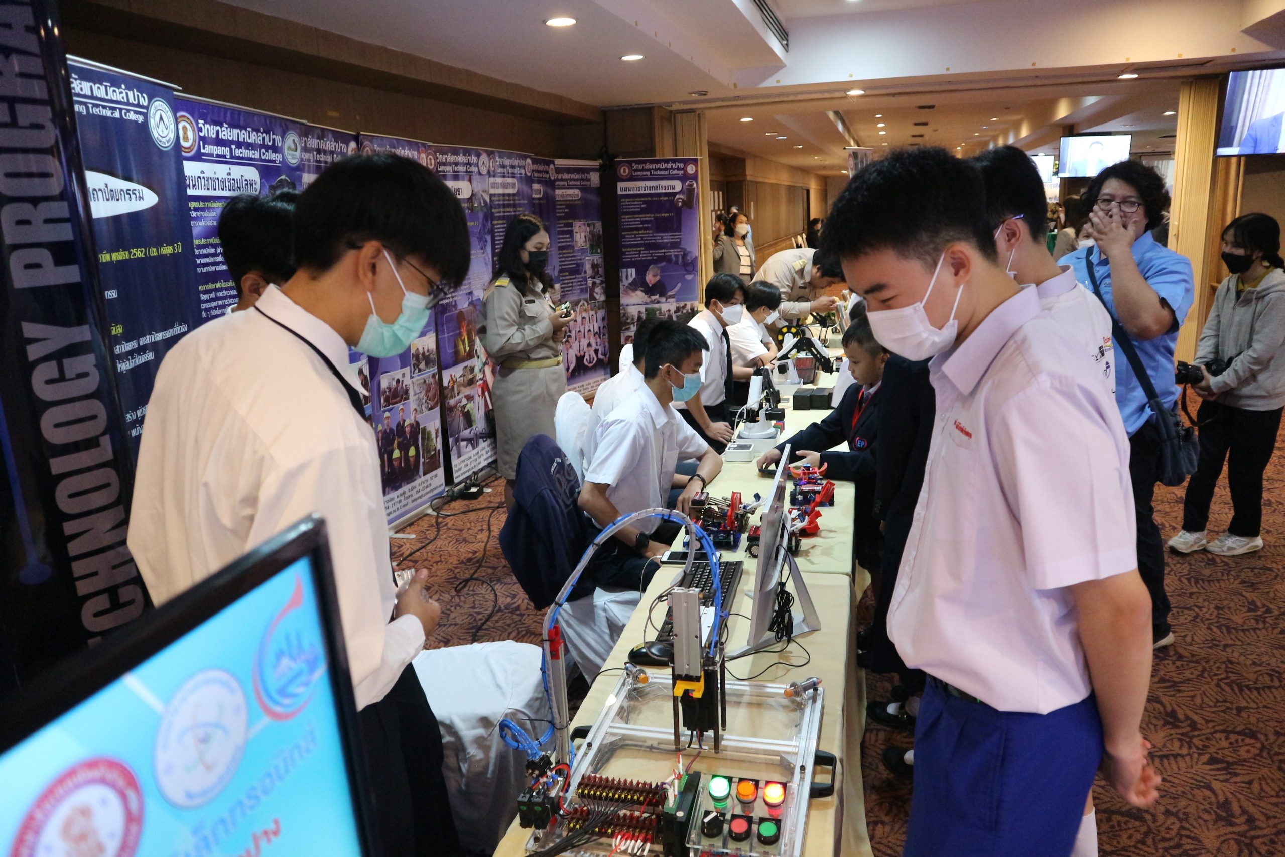 ระหว่างวันที่ 6 – 7 กุมภาพันธ์ เวลา 08.30 น. วิทยาลัยเทคนิคลำปาง โดยนายณัฐนนท์ ภู่อริยพงศ์ ผู้อำนวยการวิทยาลัยเทคนิคลำปาง พร้อมด้วย นายธนพลทิพย์ กัญญานนท์ รองผู้อำนวยการฝ่ายบริหารทรัพยากร นางสาวอรณี จริยา รองผู้อำนวยการฝ่ายวิชาการ คณะครูบุคลากร และนักเรียน นักศึกษา ร่วมจัดนิทรรศการการประชุมเชิงปฏิบัติการเพื่อการออกแบบกลไกการบริหารและการจัดการการศึกษา ระดับพื้นที่ของกระทรวงศึกษาธิการ ในพื้นที่ภาคเหนือ(จังหวัดลำปาง) โดยได้รับเกียรติจาก ดร.อรรถพล สังขวาสี ปลัดกระทรวงศึกษาธิการ เป็นประธานในพิธีเปิดการประชุมและบรรยายพิเศษฯ ณ ห้องประชุมเวียงแก้ว ชั้น 2 โรงแรมลำปางเวียงทอง อำเภอเมือง จังหวัดลำปาง