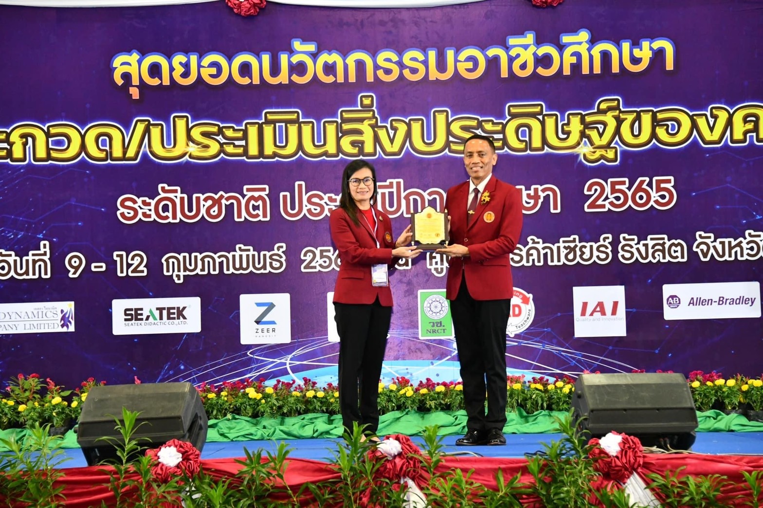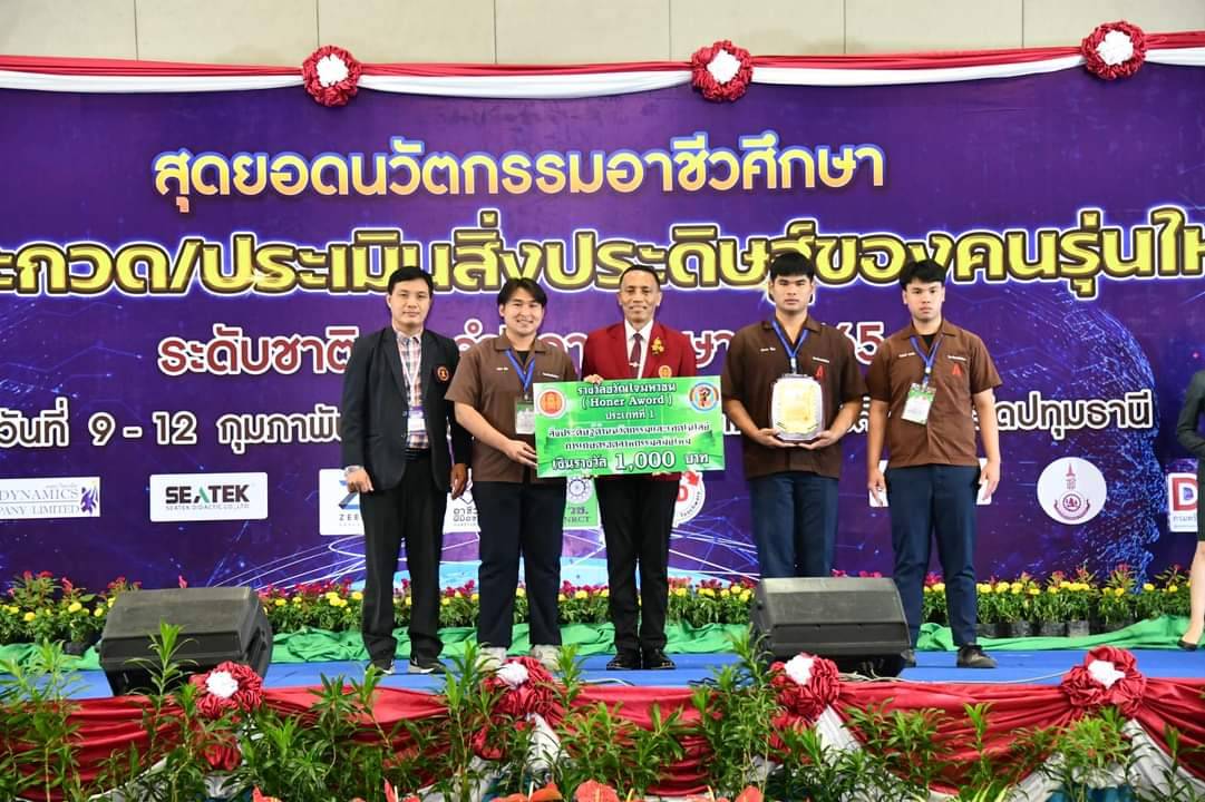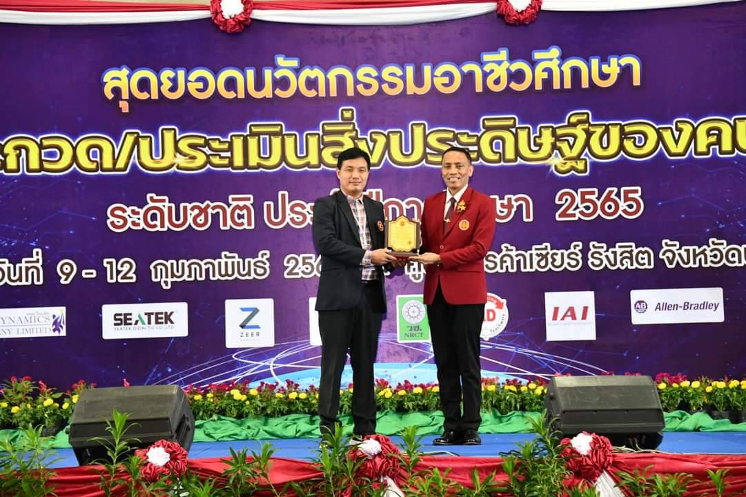 วันศุกร์ที่ 12 กุมภาพันธ์ 2566 งานวิจัยพัฒนานวัตกรรมสิ่งประดิษฐ์วิทยาลัยเทคนิคลำปาง นำโดยนางสาวพัชรีย์ สาระยิ่ง รองผู้อำนวยการฝ่ายแผนงานและความร่วมมือ พร้อมด้วย นายสมศักดิ์ แข็งแรง ครูผู้ควบคุมทีม และคณะนักประดิษฐ์ นำผลงานวิจัยพัฒนานวัตกรรมและสิ่งประดิษฐ์เข้าร่วมการประกวด ได้แก่ เครื่องผสมเกสรดอกดาวเรือง ได้รับรางวัล Honor Awards ในงาน” สุดยอดนวัตกรรมอาชีวศึกษา” การประกวด/ประเมินสิ่งประดิษฐ์ของคนรุ่นใหม่ ระดับชาติประจำปีการศึกษา 2565 พร้อมทั้งร่วมพิธีปิดงาน ฯโดยมี เรืออากาศโท สมพร ปานดำ รองเลขาธิการคณะกรรมการอาชีวศึกษาซึ่งได้รับมอบหมายจาก ว่าที่ร้อยตรีธนุ วงษ์จินดา เลขาธิการคณะกรรมการอาชีวศึกษาเป็นประธานในพิธีฯ ณ ห้อง Diamond Hall ศูนย์การค้าเชียร์รังสิต จังหวัดปทุมธานี