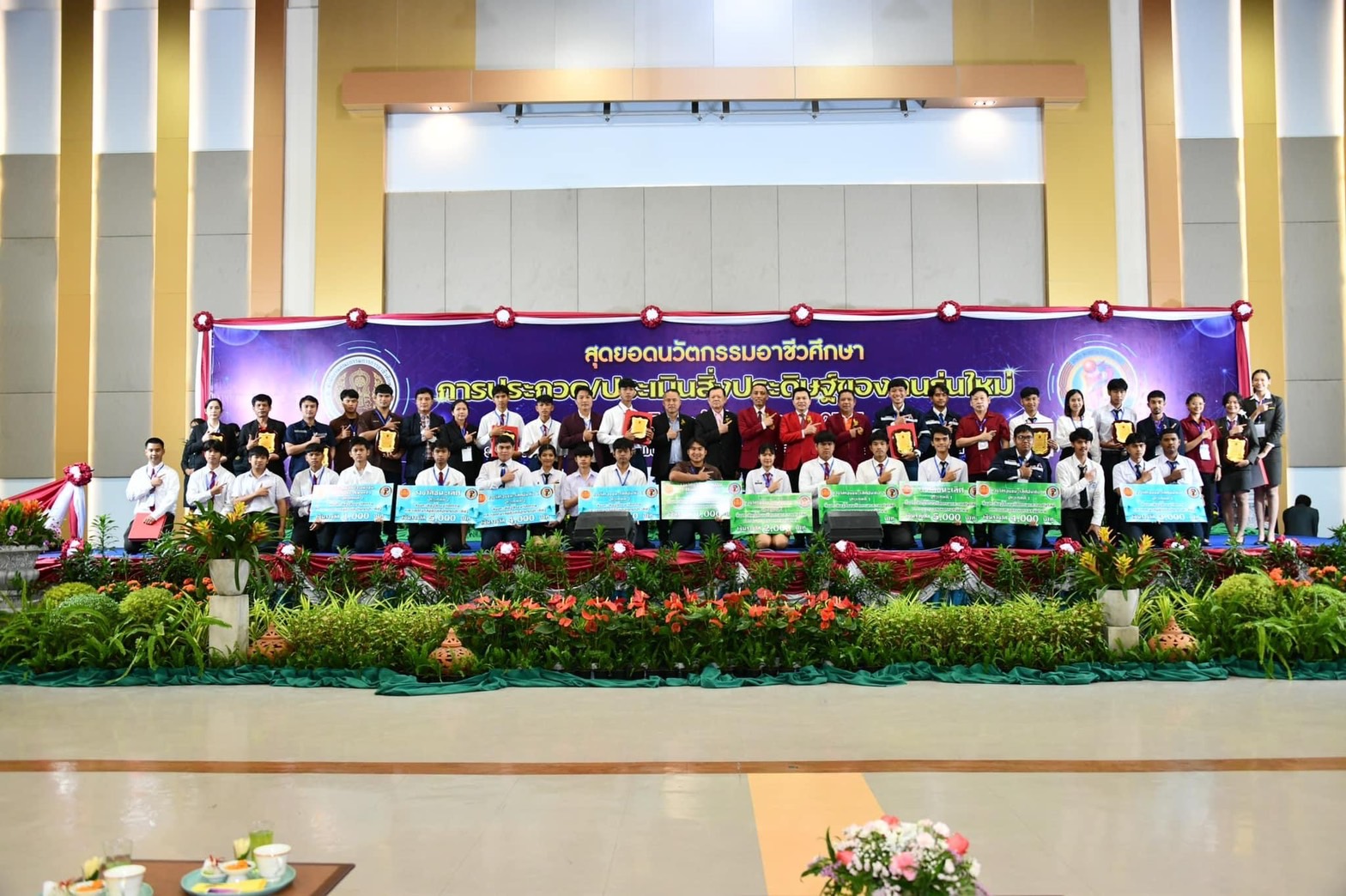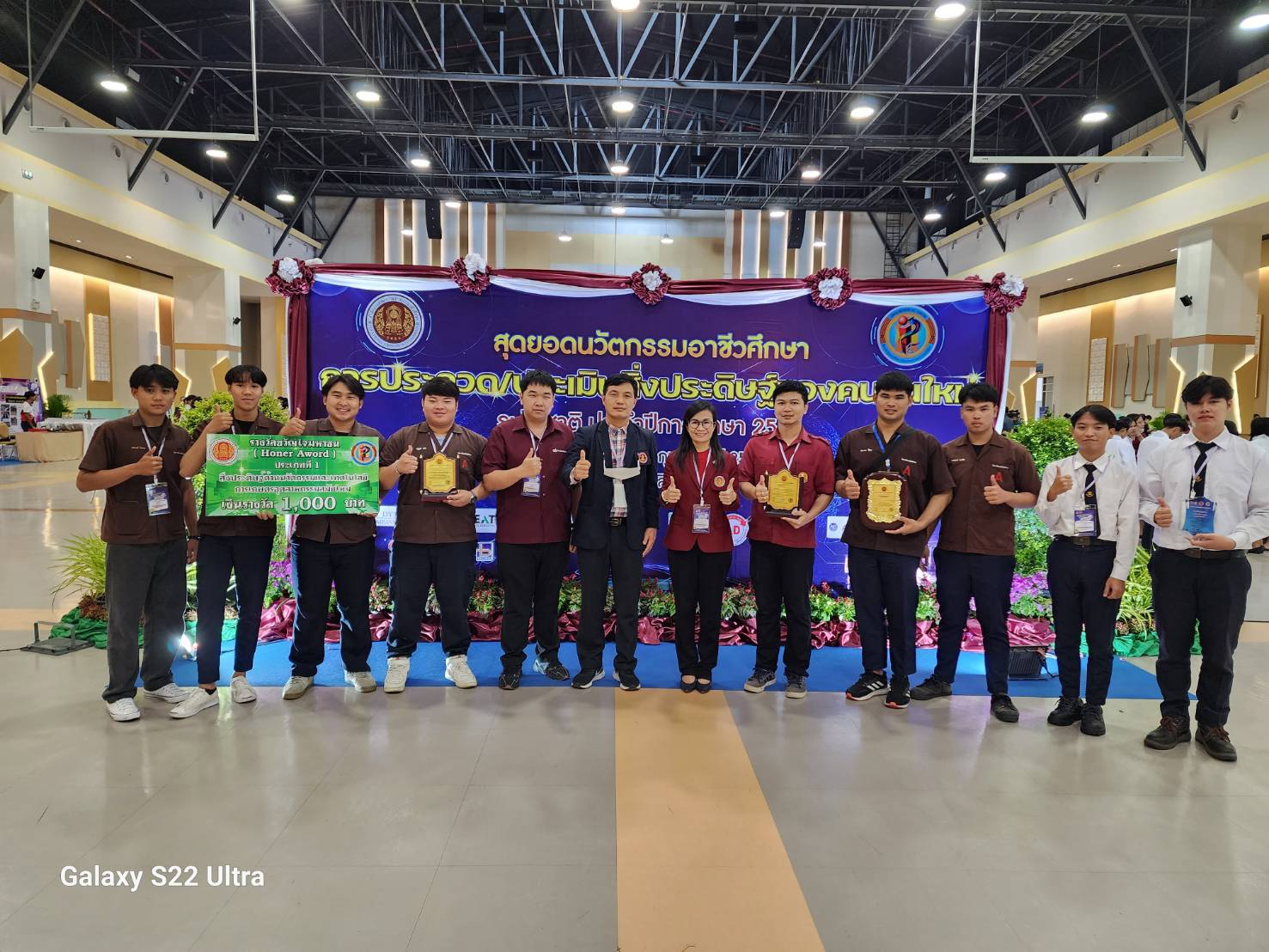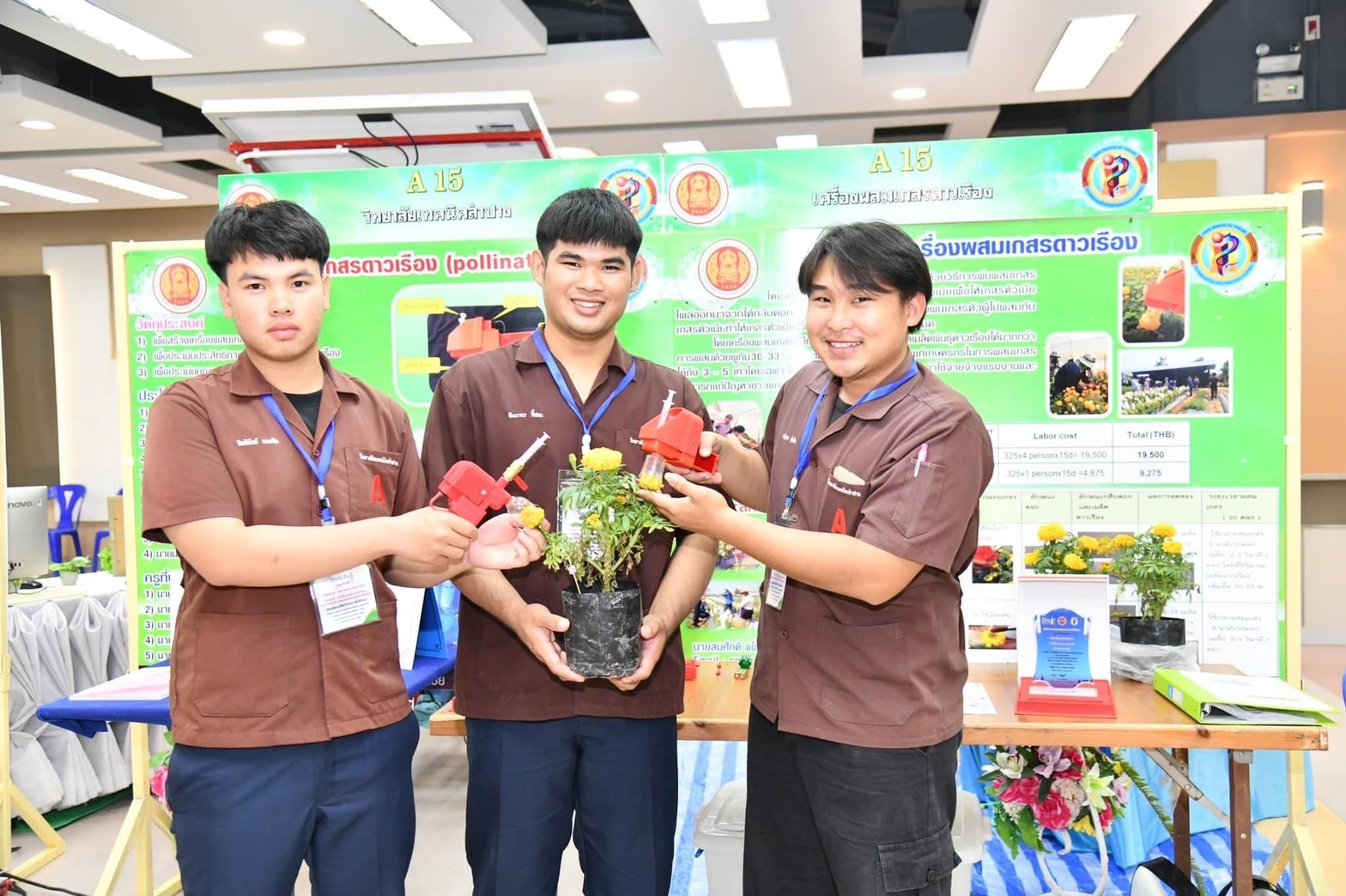 วันศุกร์ที่ 12 กุมภาพันธ์ 2566 งานวิจัยพัฒนานวัตกรรมสิ่งประดิษฐ์วิทยาลัยเทคนิคลำปาง นำโดยนางสาวพัชรีย์ สาระยิ่ง รองผู้อำนวยการฝ่ายแผนงานและความร่วมมือ พร้อมด้วย นายสมศักดิ์ แข็งแรง ครูผู้ควบคุมทีม และคณะนักประดิษฐ์ นำผลงานวิจัยพัฒนานวัตกรรมและสิ่งประดิษฐ์เข้าร่วมการประกวด ได้แก่ เครื่องผสมเกสรดอกดาวเรือง ได้รับรางวัล Honor Awards ในงาน” สุดยอดนวัตกรรมอาชีวศึกษา” การประกวด/ประเมินสิ่งประดิษฐ์ของคนรุ่นใหม่ ระดับชาติประจำปีการศึกษา 2565 พร้อมทั้งร่วมพิธีปิดงาน ฯโดยมี เรืออากาศโท สมพร ปานดำ รองเลขาธิการคณะกรรมการอาชีวศึกษาซึ่งได้รับมอบหมายจาก ว่าที่ร้อยตรีธนุ วงษ์จินดา เลขาธิการคณะกรรมการอาชีวศึกษาเป็นประธานในพิธีฯ ณ ห้อง Diamond Hall ศูนย์การค้าเชียร์รังสิต จังหวัดปทุมธานี