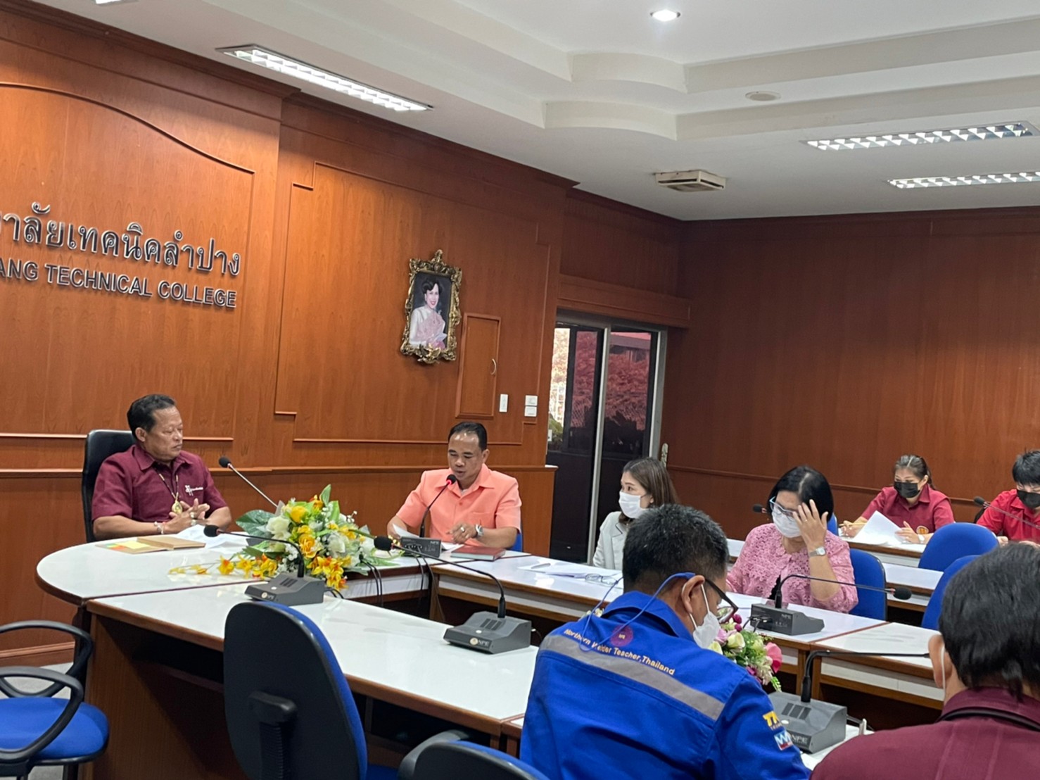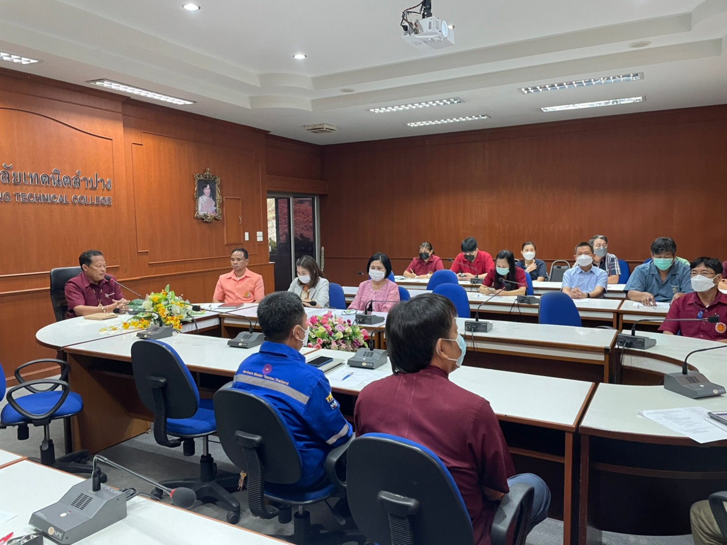 วันพุธที่ 22 กุมภาพันธ์ 2566 เวลา 08.30 น. งานแนะเเนวอาชีพและจัดหางาน วิทยาลัยเทคนิคลำปาง ฝ่ายพัฒากิจการนักเรียนนักศึกษา โดยนายณัฐนนท์ ภู่อริยพงศ์ ผู้อำนวยการวิทยาลัยเทคนิคลำปาง พร้อมด้วยว่าที่ร.ต.สามารถ พุแพง รองผู้อำนวยการฝ่ายกิจการนักเรียนนักศึกษา หัวหน้าแผนกทุกวิชา และผู้เกี่ยวข้อง ร่วมประชุมเพื่อปรึกษาหารือข้อตกลงในการจัดกิจกรรมการรับประกาศนียบัตรวิชาชีพ(ปวช.) และประกาศนียบัตรวิชาชีพชั้นสูง(ปวส.) ของผู้สำเร็จการศึกษา ประจำปีการศึกษา 2565 ในวันเสาร์ที่ 25 มีนาคม 2566 ณ อาคารอเนกประสงค์ 70 ปี และการซ้อมย่อยระหว่างวันที่ 21-22 มีนาคม 2566 และซ้อมใหญ่ ในวันพฤหัสบดีที่ 23 มีนาคม 2566 ณ ห้องประชุม อาคารอำนวยการ วิทยาลัยเทคนิคลำปาง