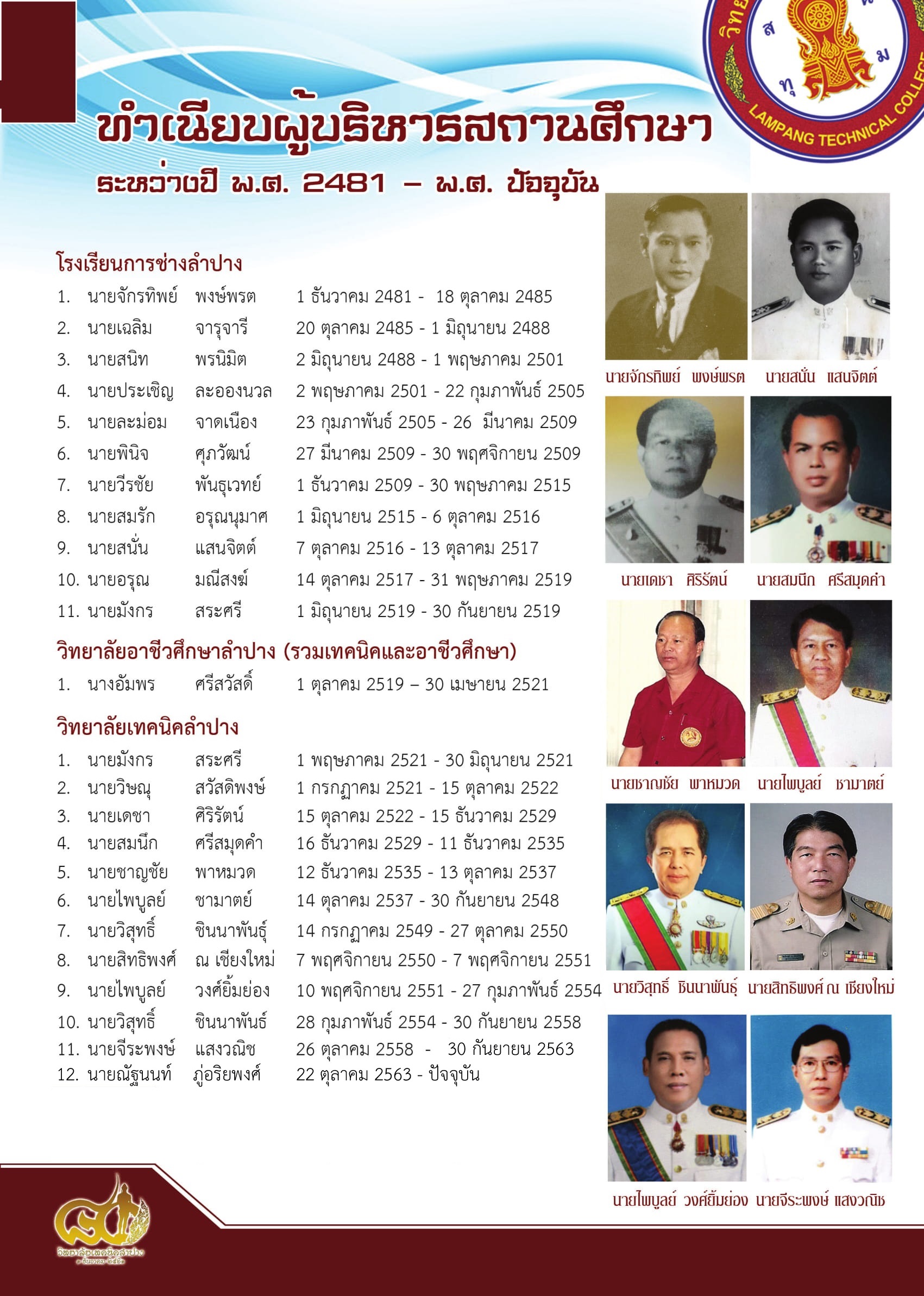 ทำเนียบผู้บริหาร No ratings yet. ทำเนียบผู้บริหาร วิทยาลัยเทคนิคลำปาง กรุณาให้คะแนนความพึงพอใจ ระดับความพึงพอใจ FacebookFacebookXXLINELine